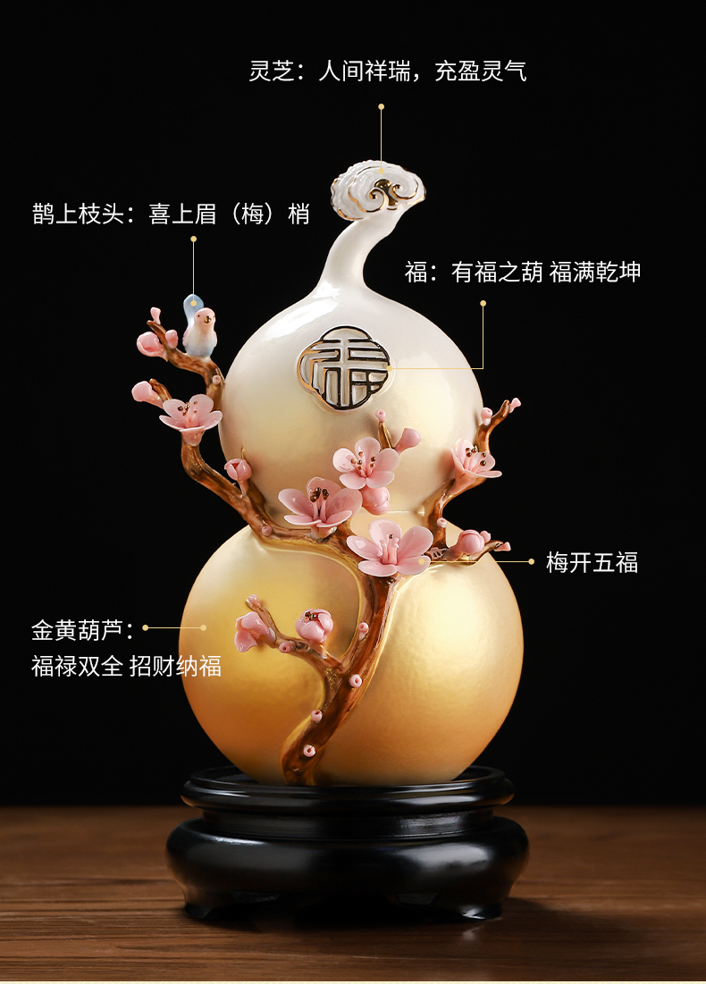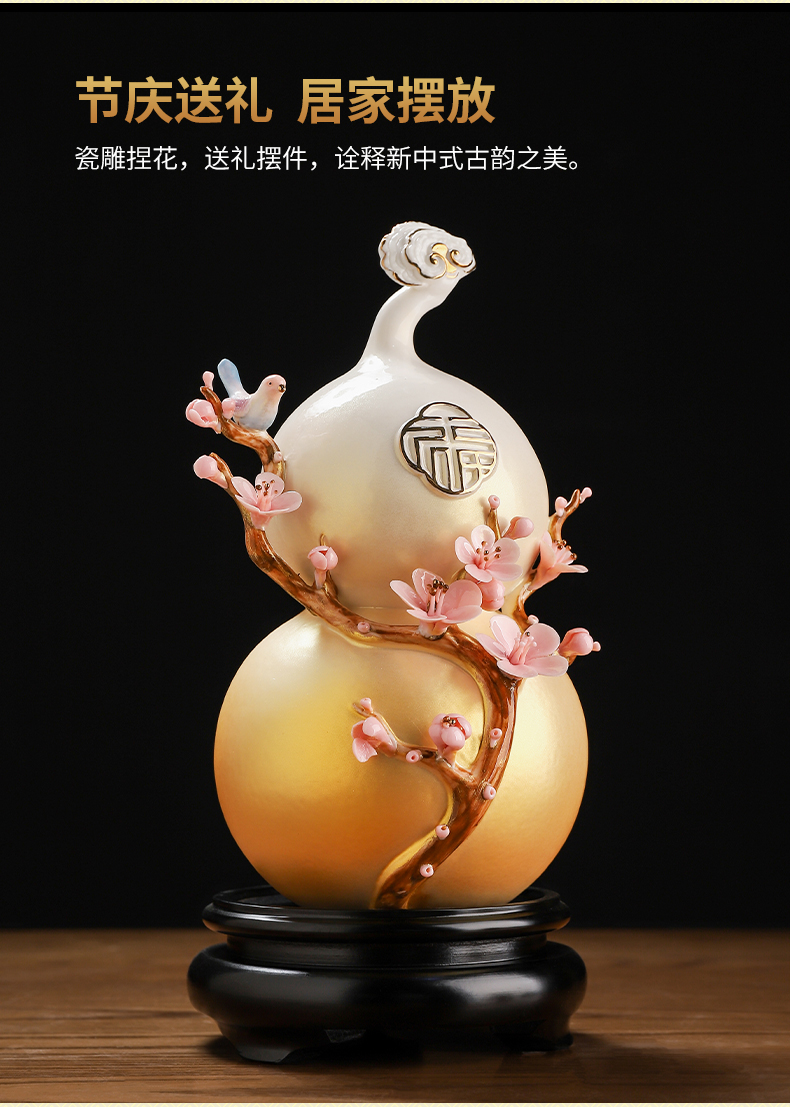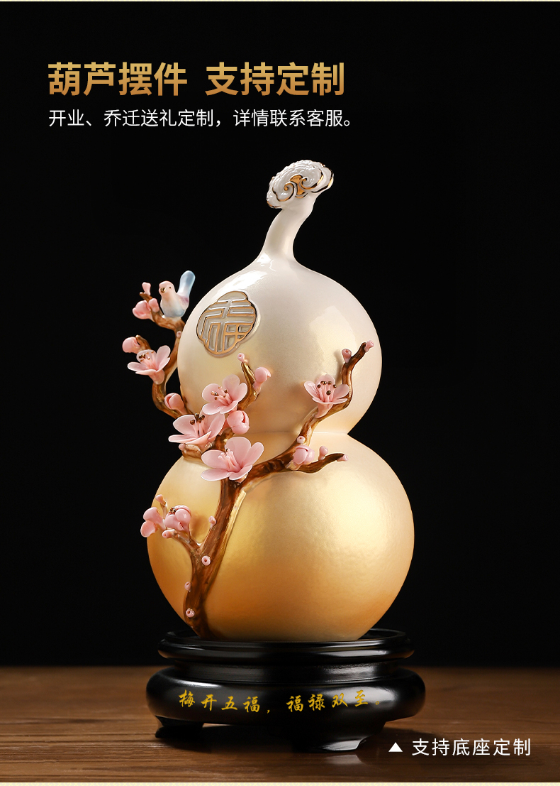 东方泥土梅开五福陶瓷葫芦中式家居客厅装饰摆件开业乔迁新居礼品