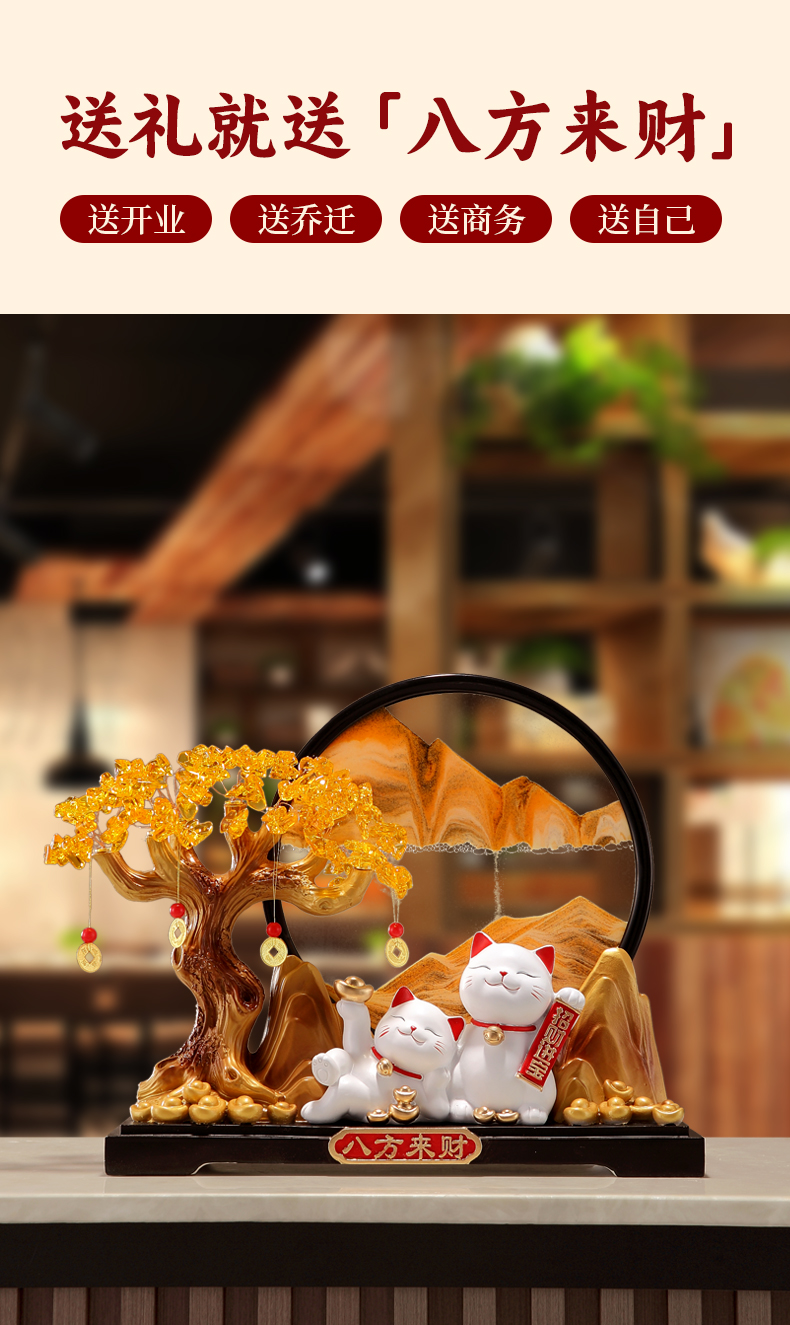 八方来财发财树招财猫摆件客厅店铺收银台高档装饰品乔迁开业礼物