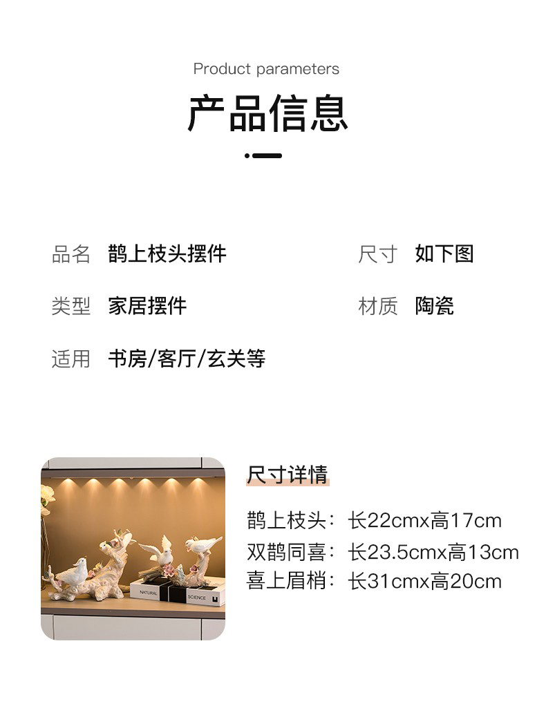 现代简约陶瓷小鸟摆件家居客厅酒柜软装饰品欧式房间桌面玄关摆件