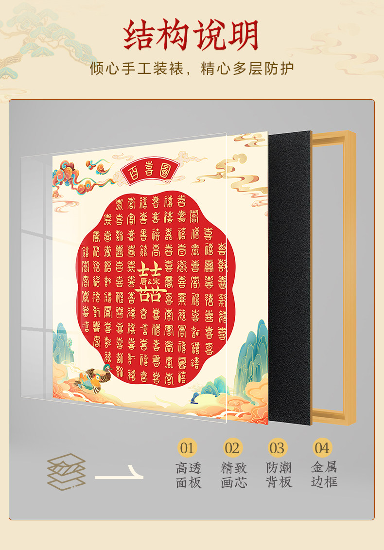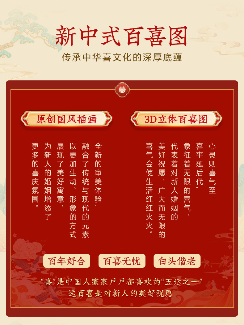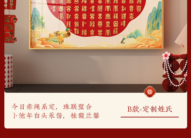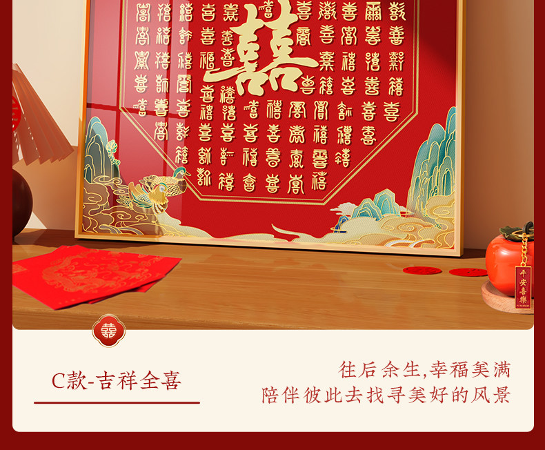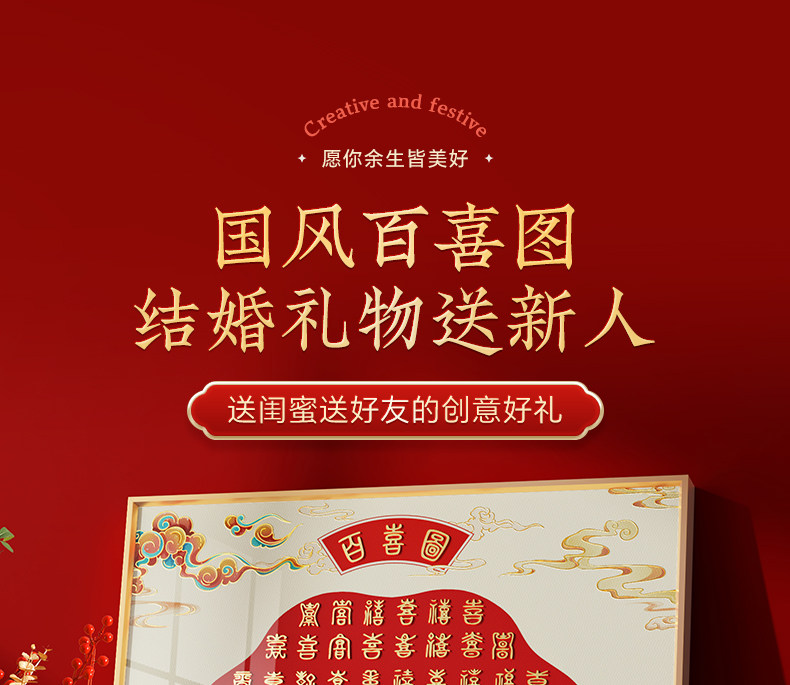 百喜图结婚礼物手工diy新婚喜字手写成品高级送新人中式订婚摆件