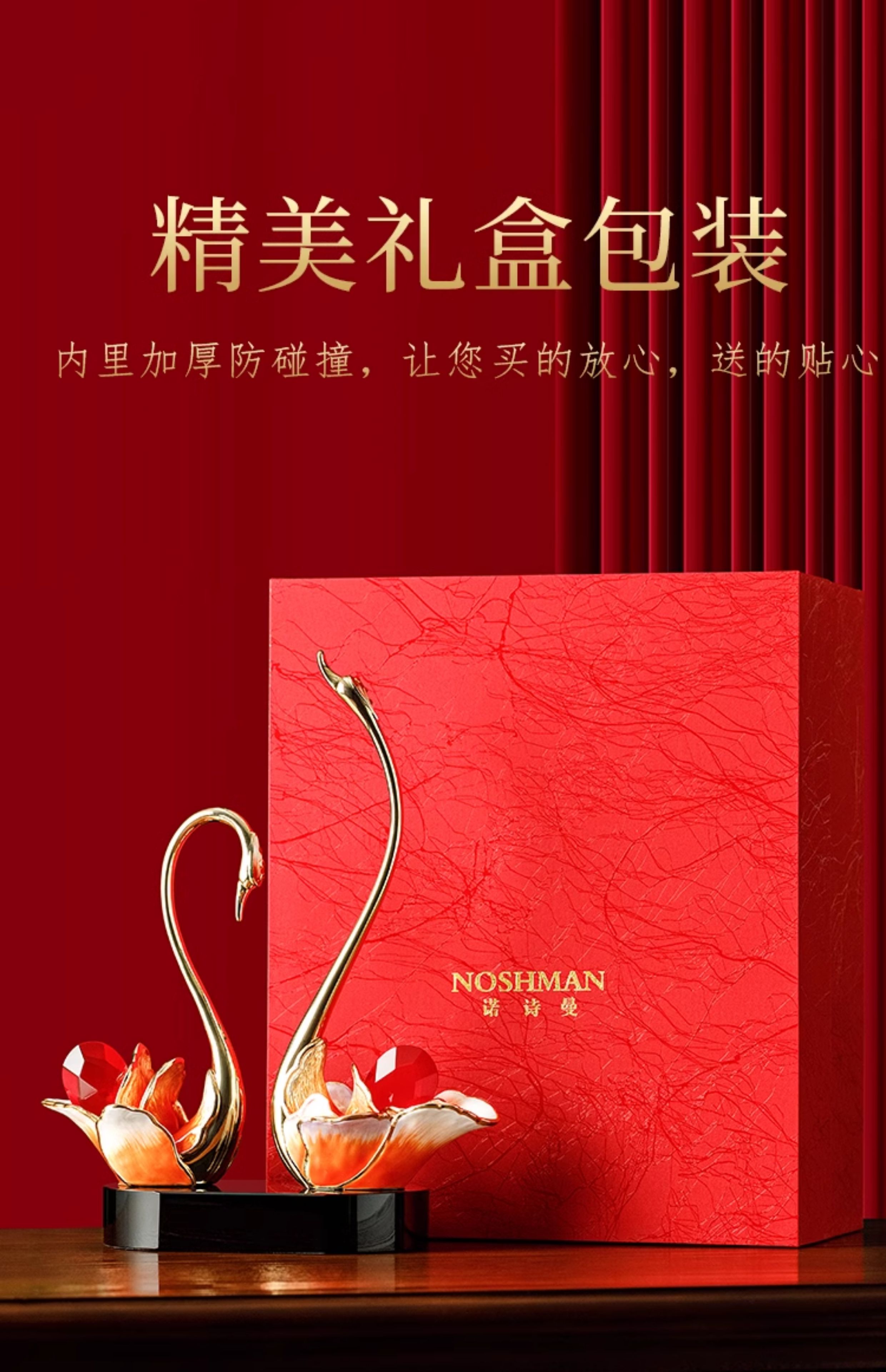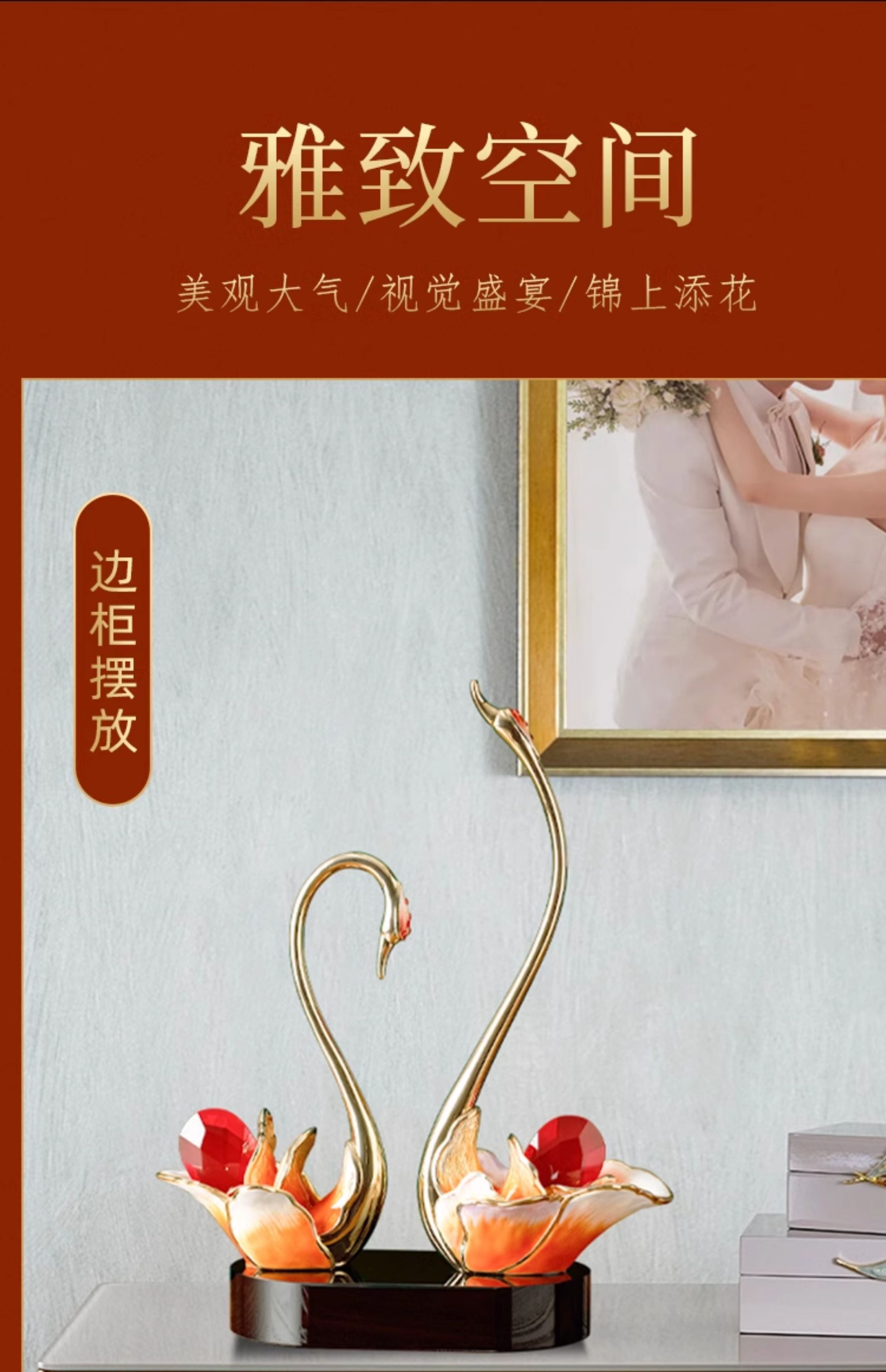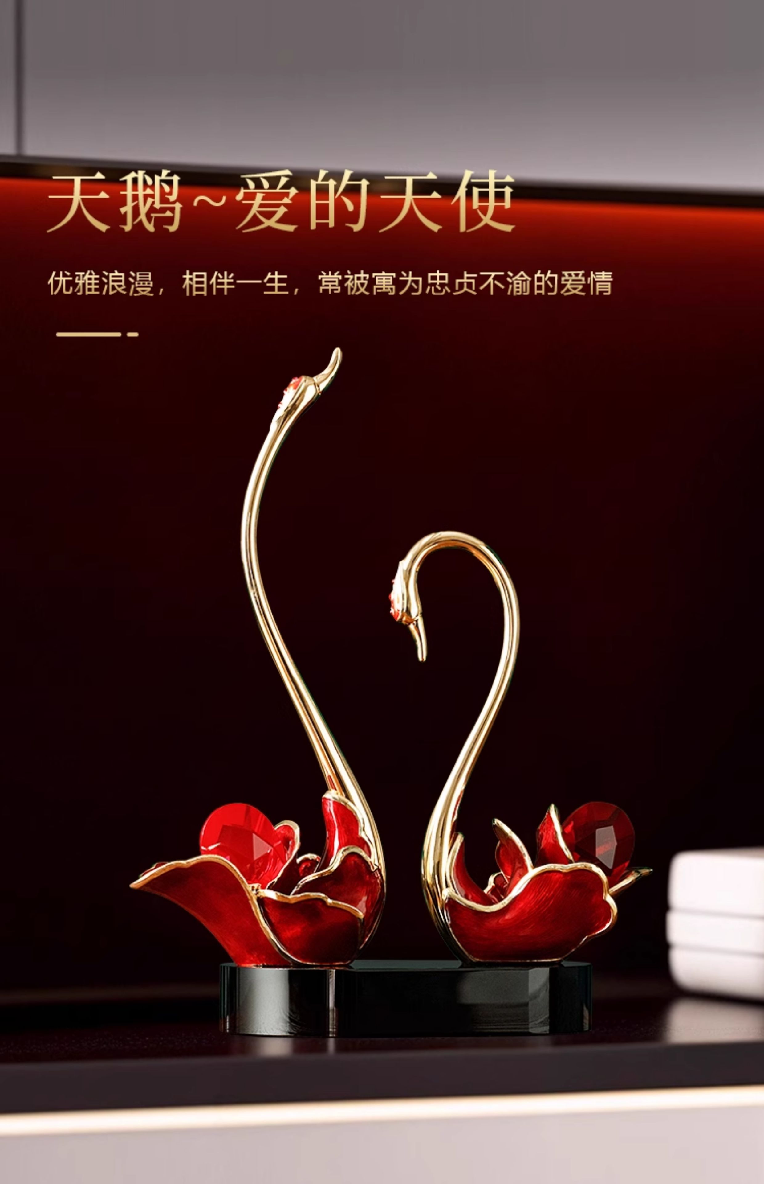 珐琅彩百年好合天鹅摆件一对高档结婚礼物送新人闺蜜婚房装饰布置