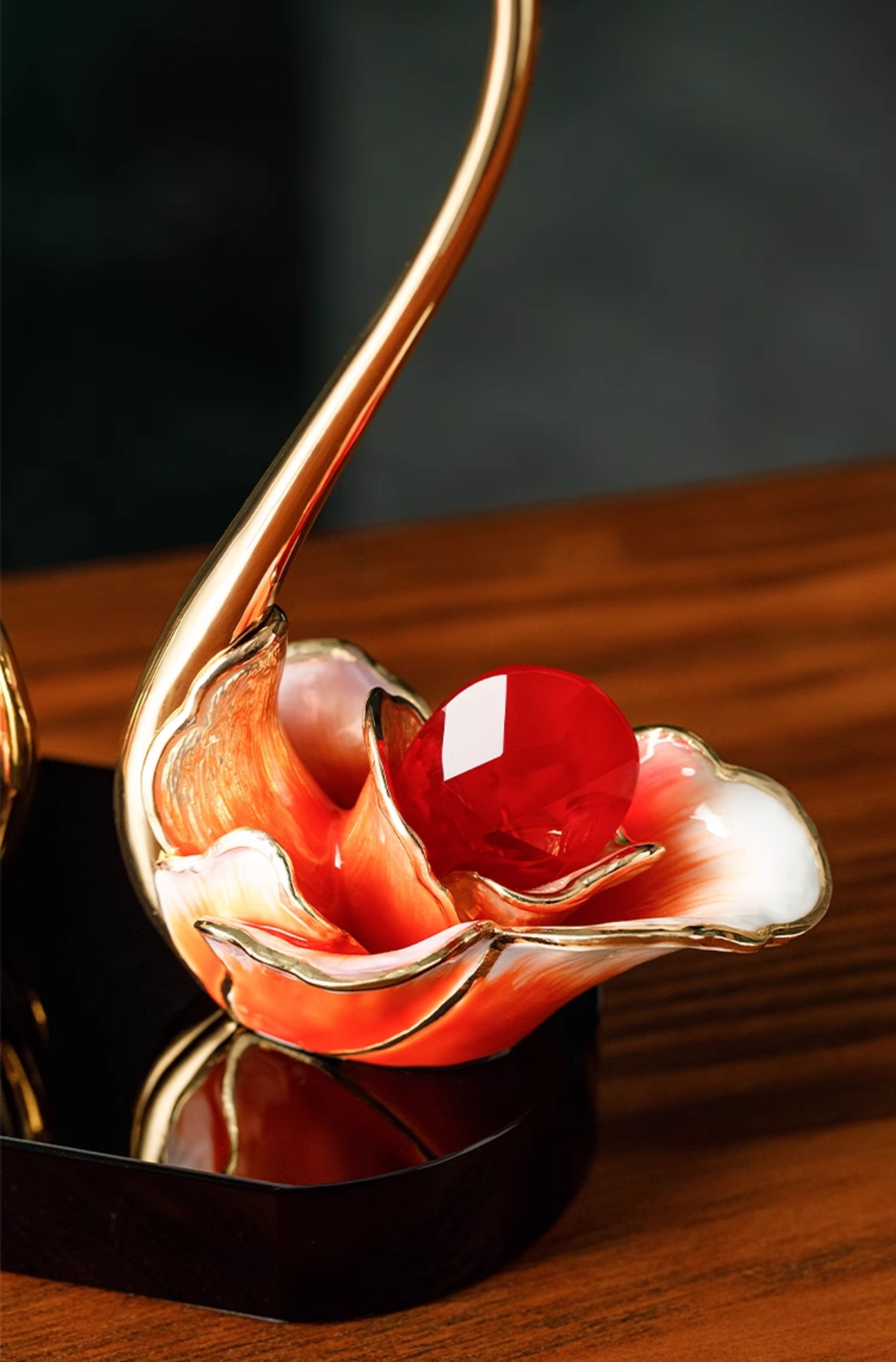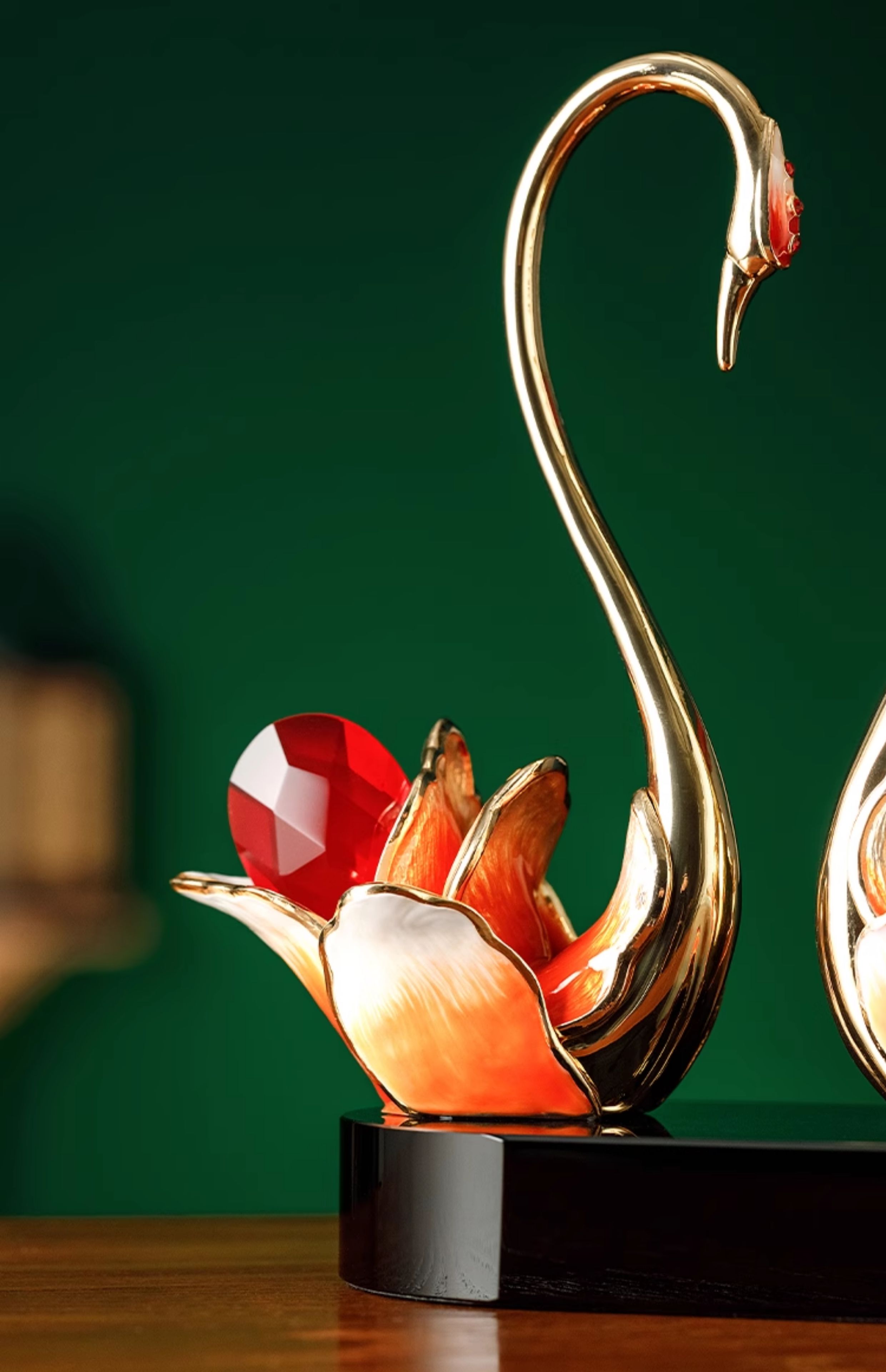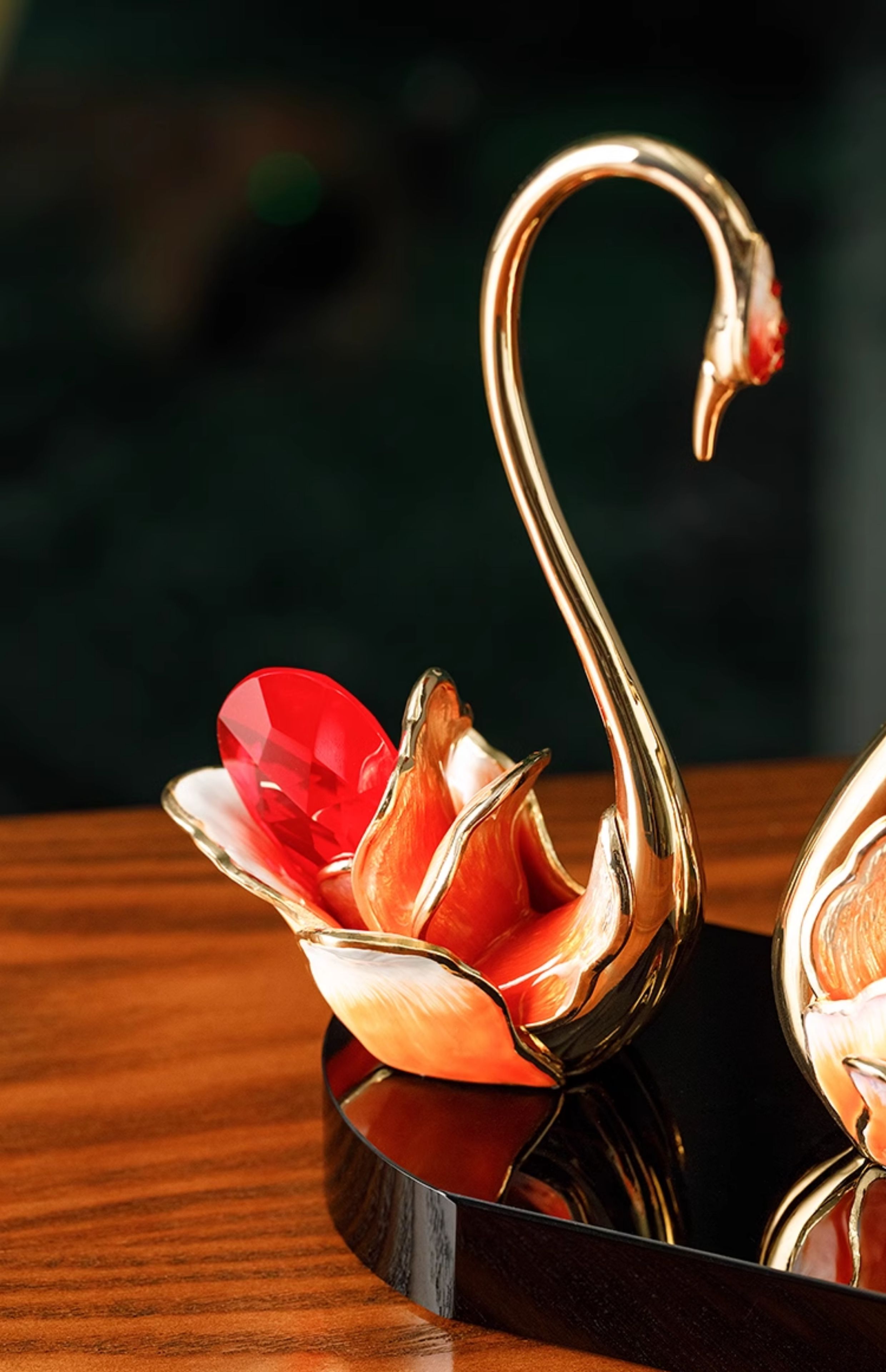 珐琅彩百年好合天鹅摆件一对高档结婚礼物送新人闺蜜婚房装饰布置