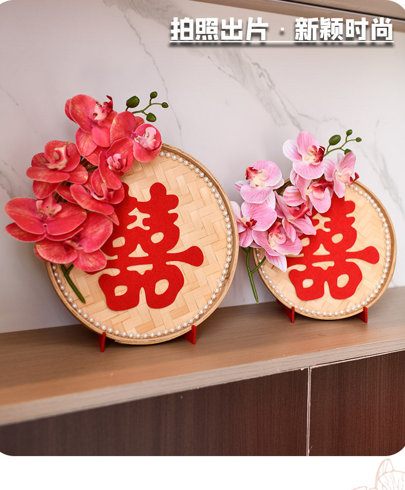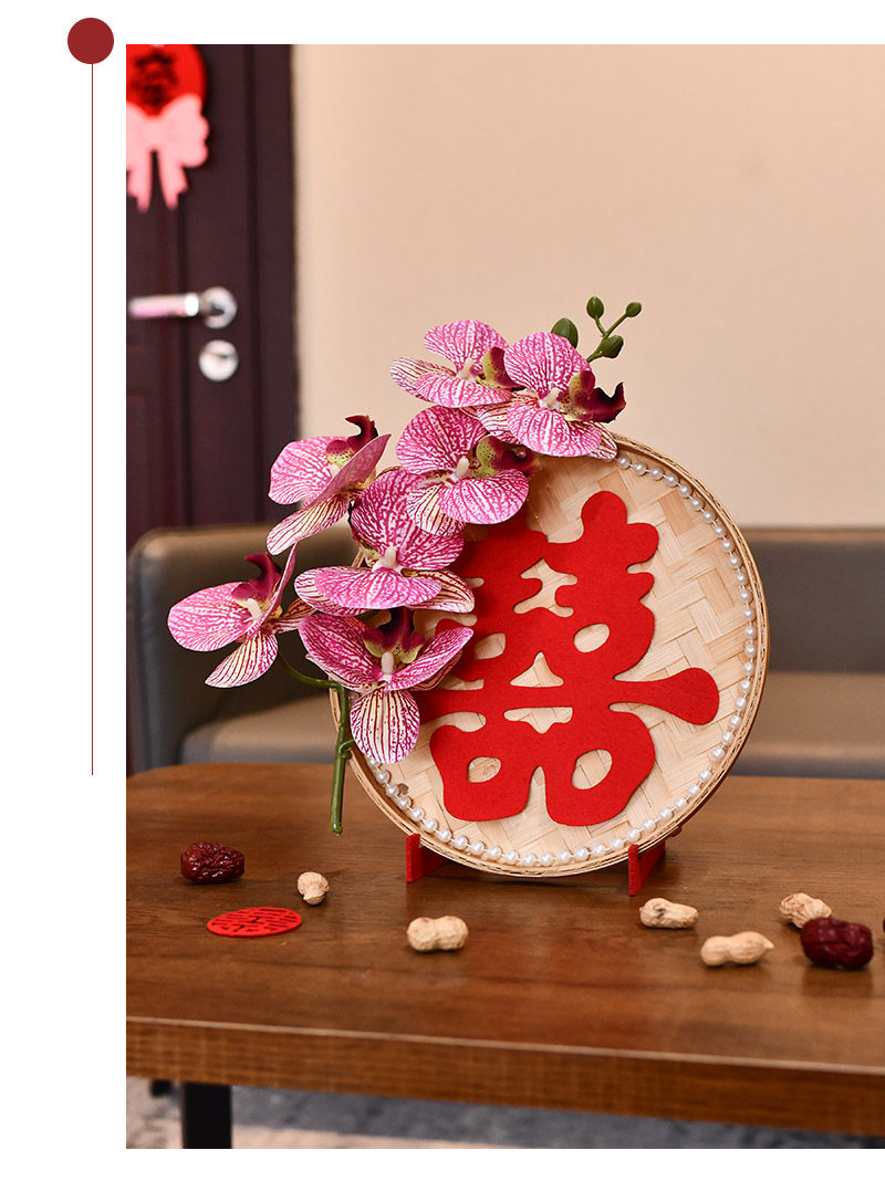 立体簸箕喜字蝴蝶兰摆件结婚用品大全婚房客厅布置订婚摆台装饰