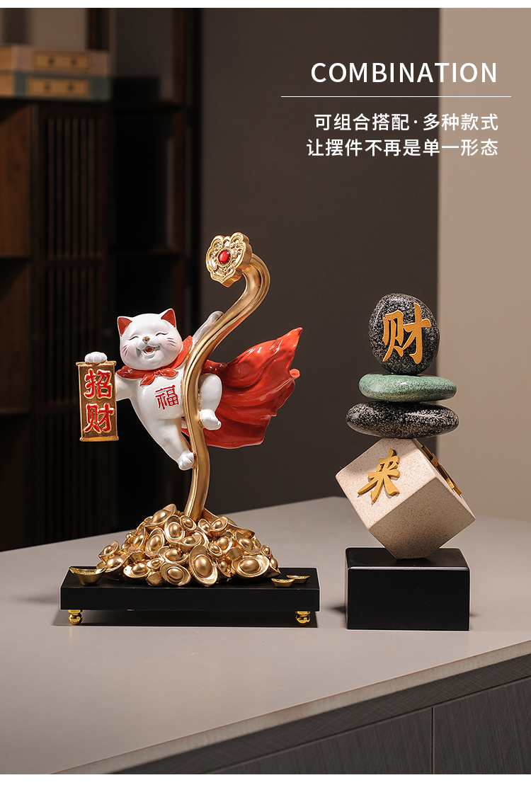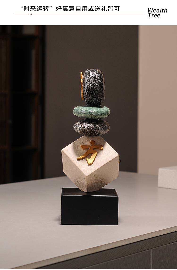 时来运转八方来财桌面摆件办公室高级感酒柜装饰品送乔迁开业礼物