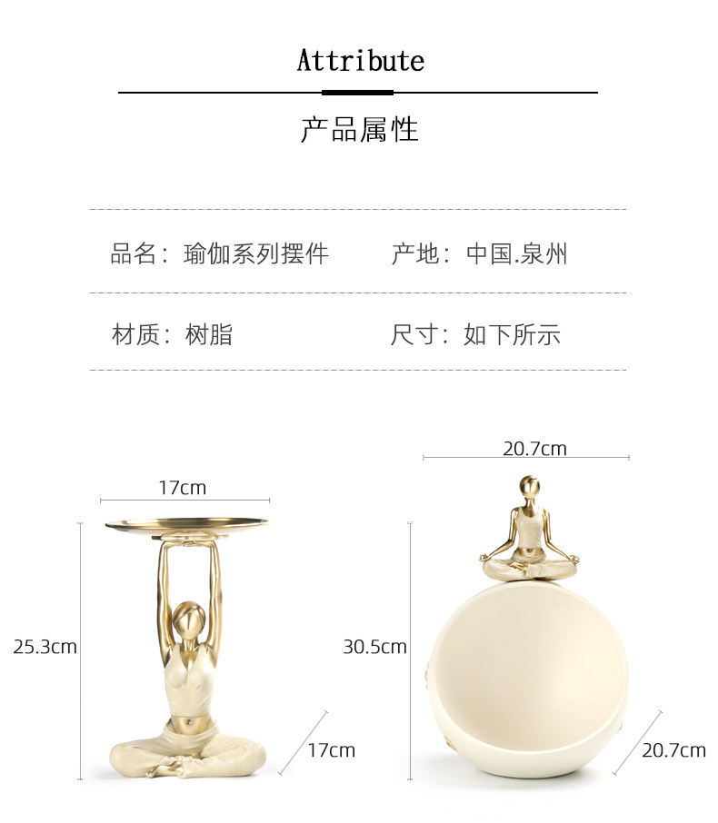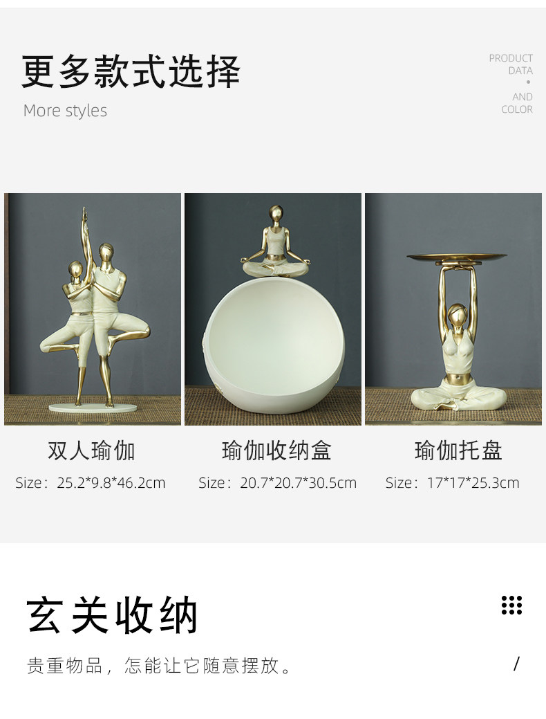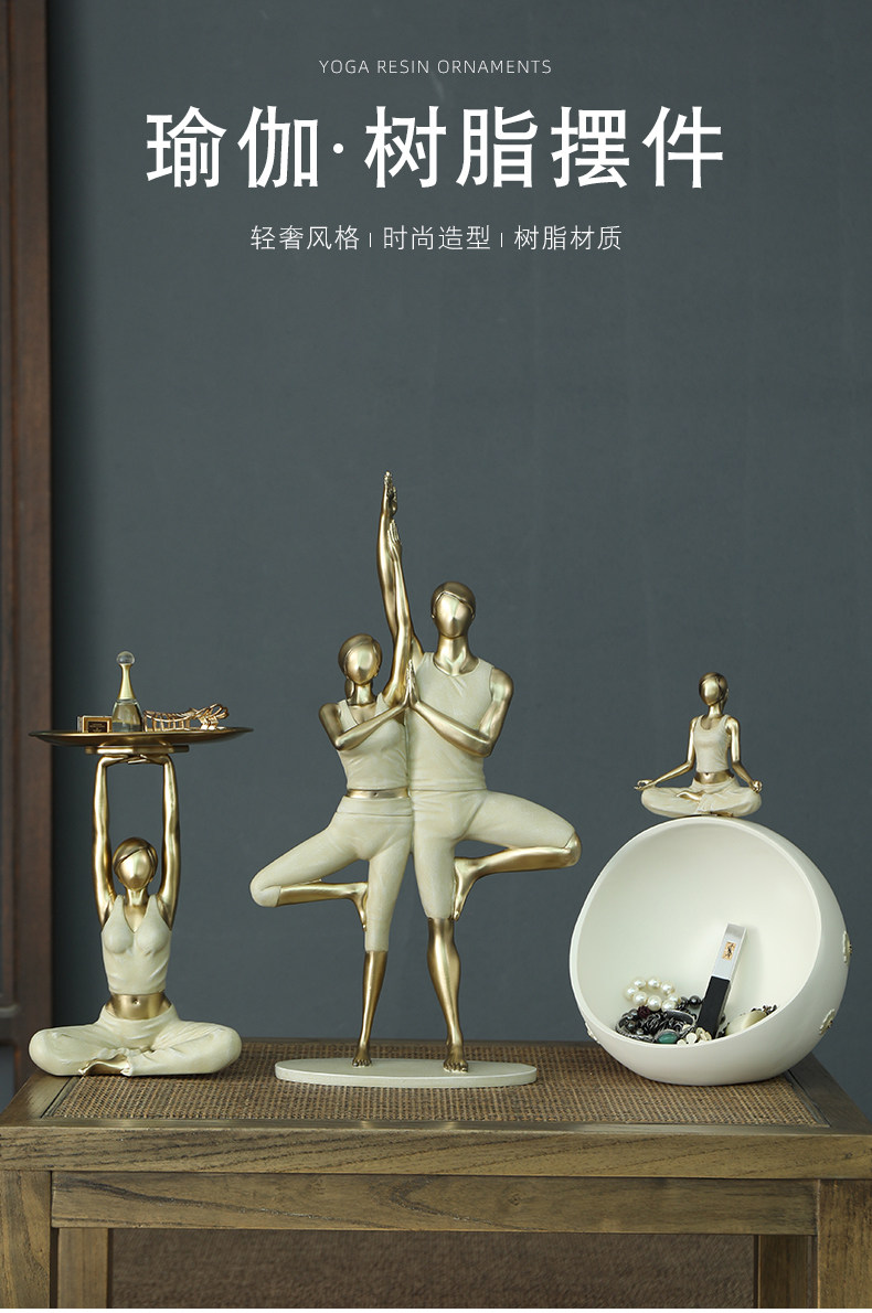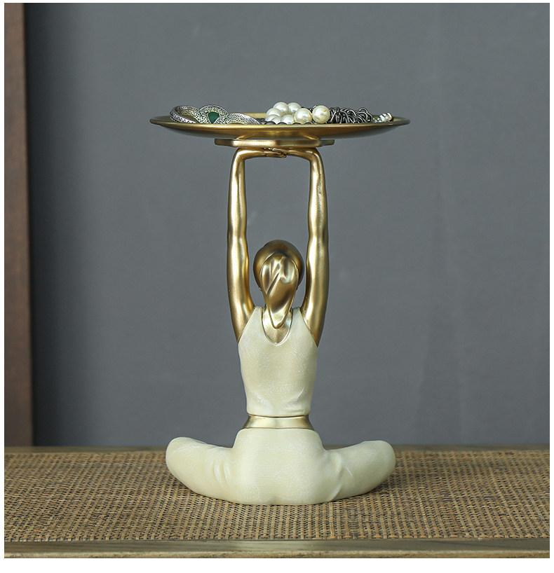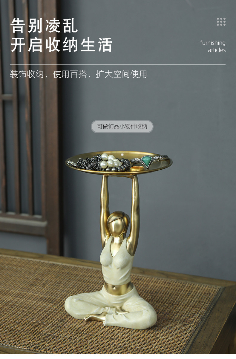 瑜伽收纳托盘人物家居摆件桌面客厅卧室轻奢高端创意招财装饰礼品