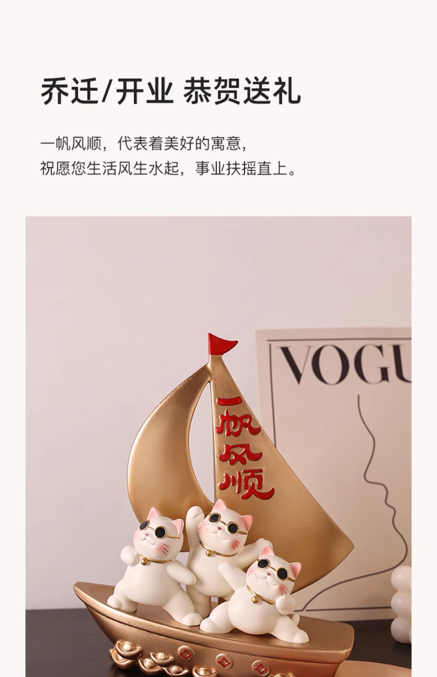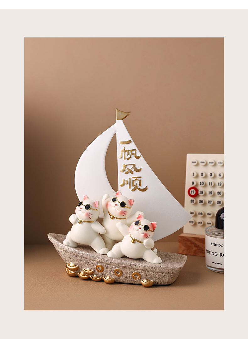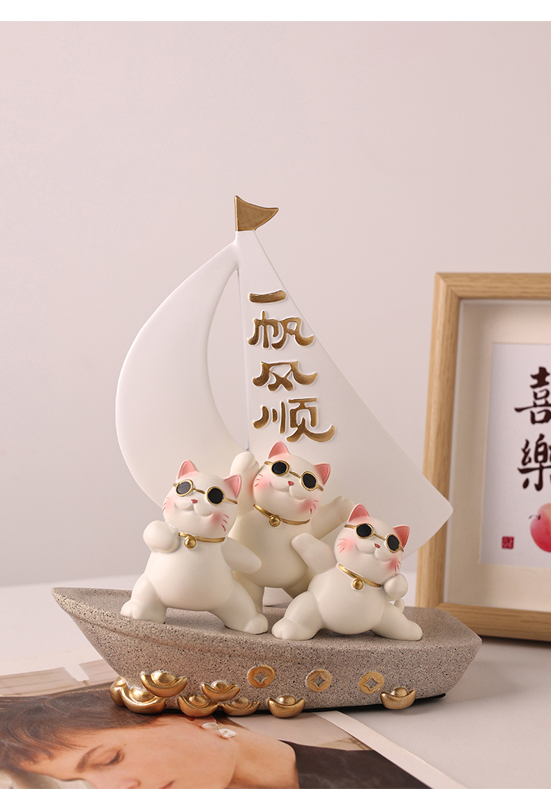 贝汉美一帆风顺招财猫摆件家居客厅玄关电视柜装饰品乔迁新居礼品