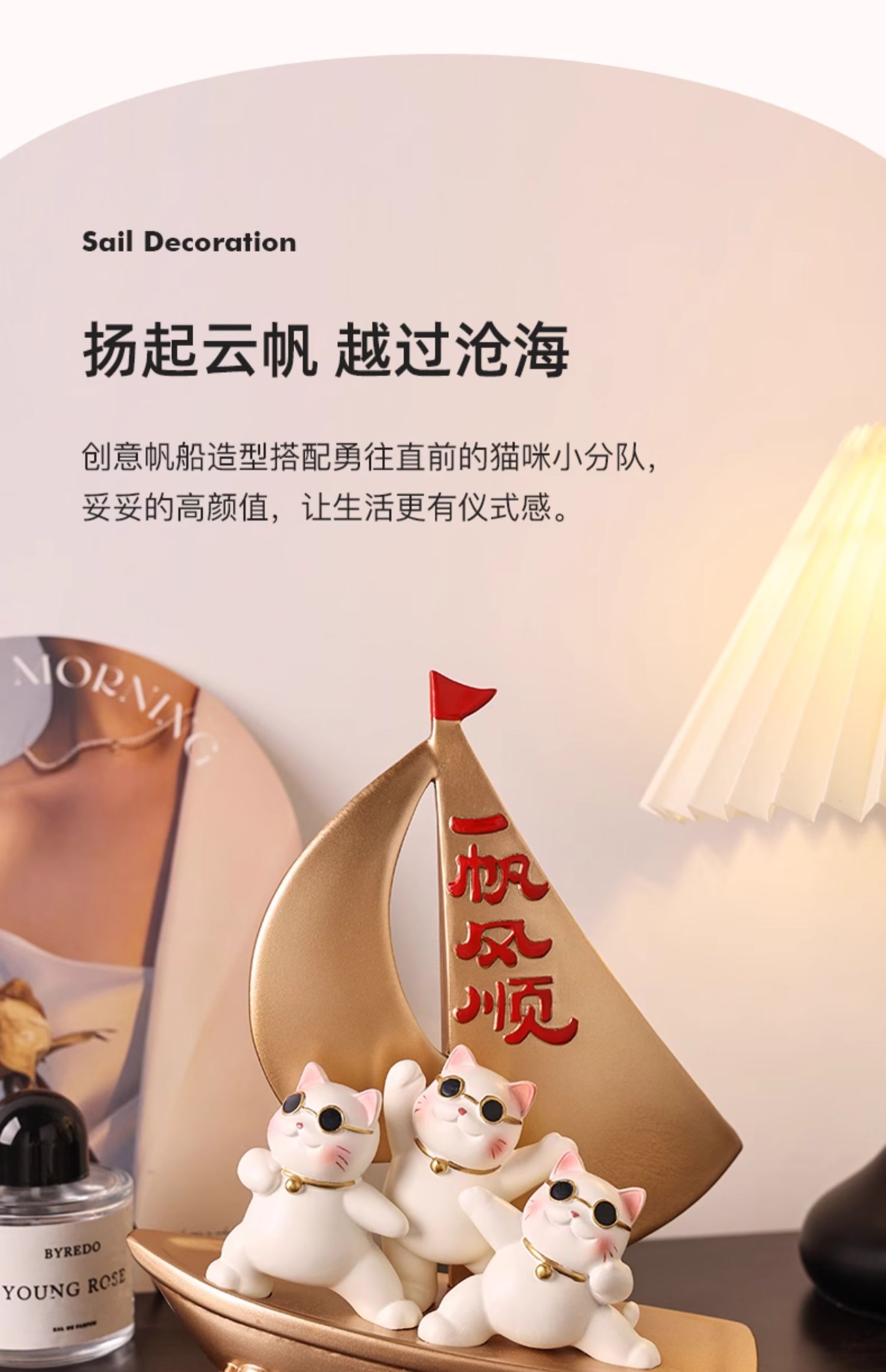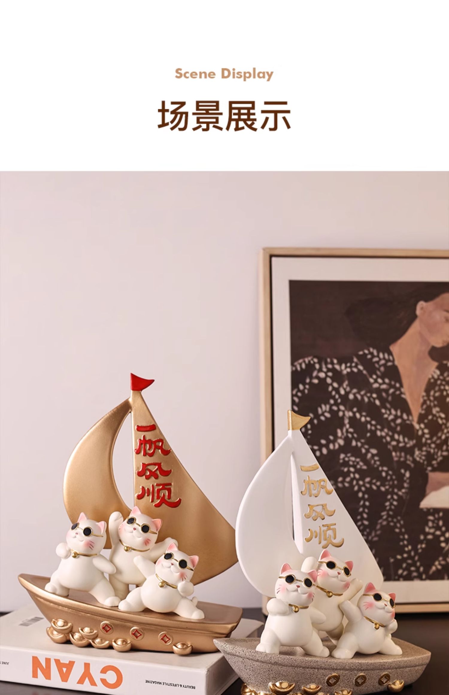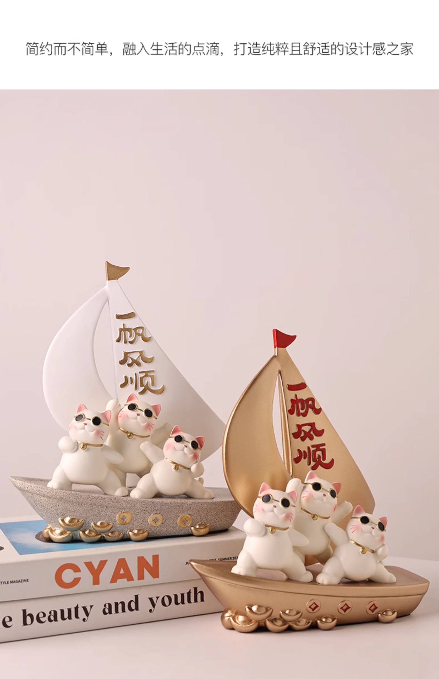 贝汉美一帆风顺招财猫摆件家居客厅玄关电视柜装饰品乔迁新居礼品