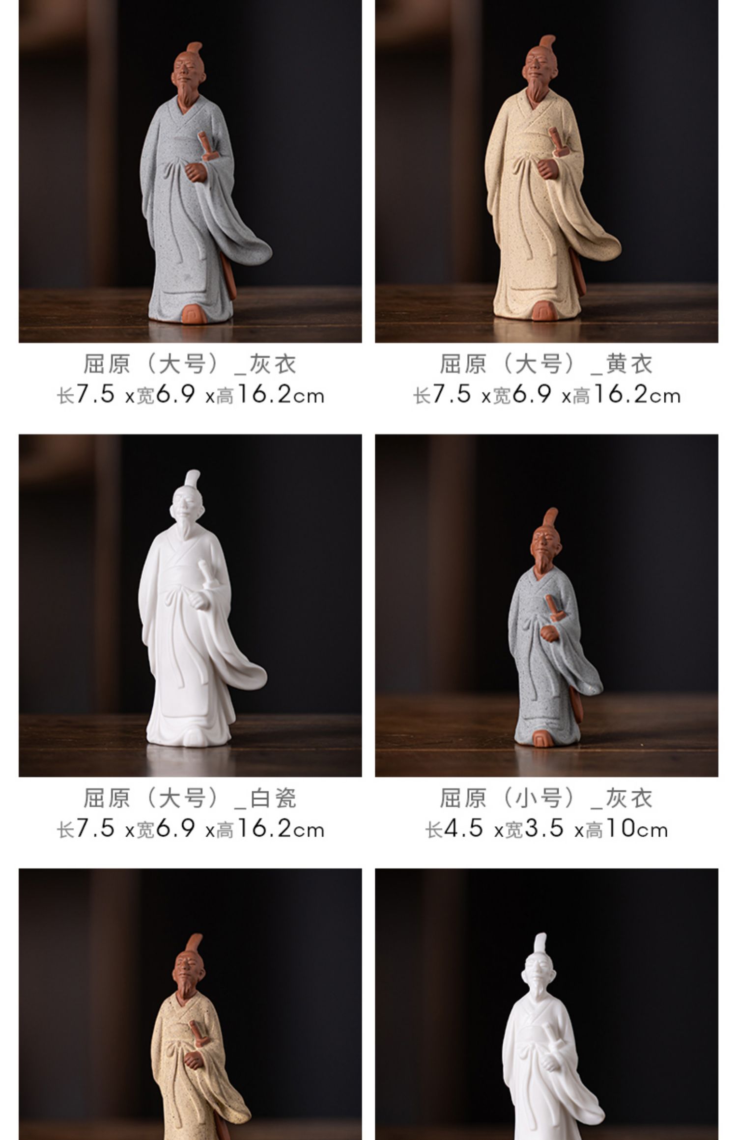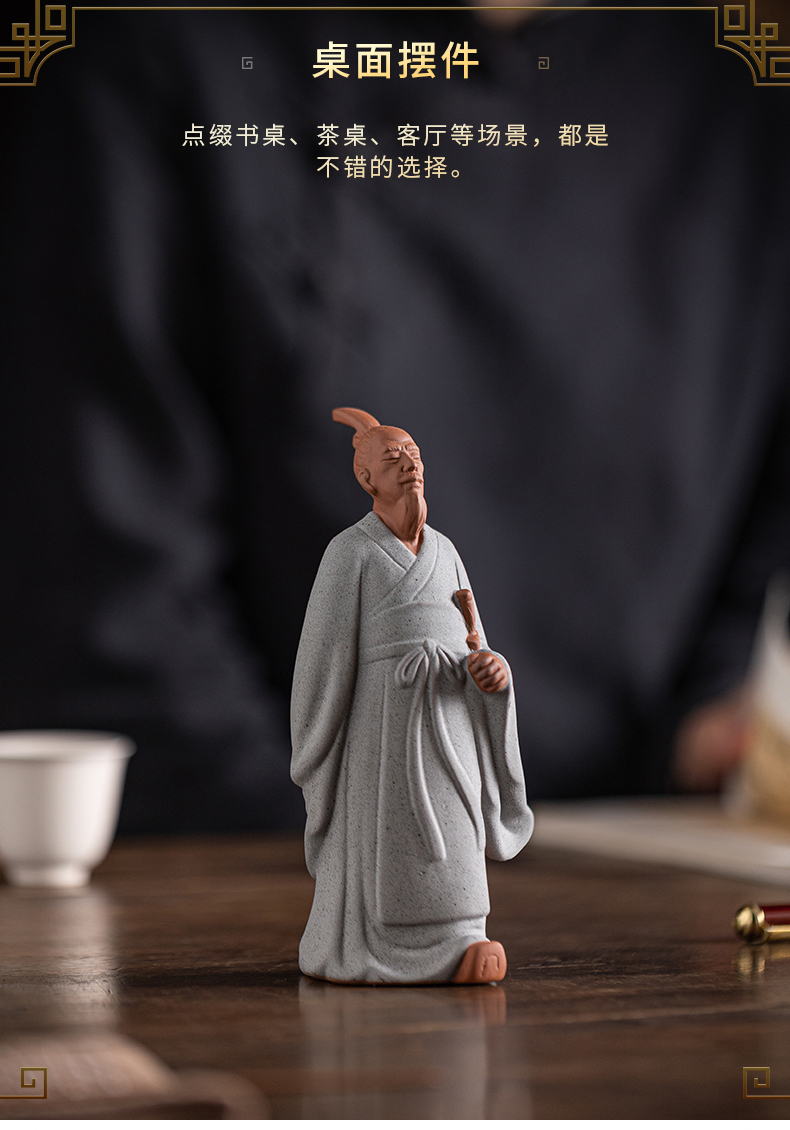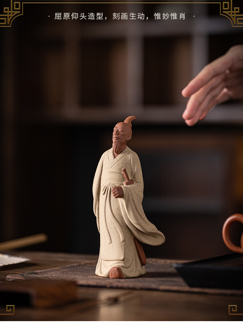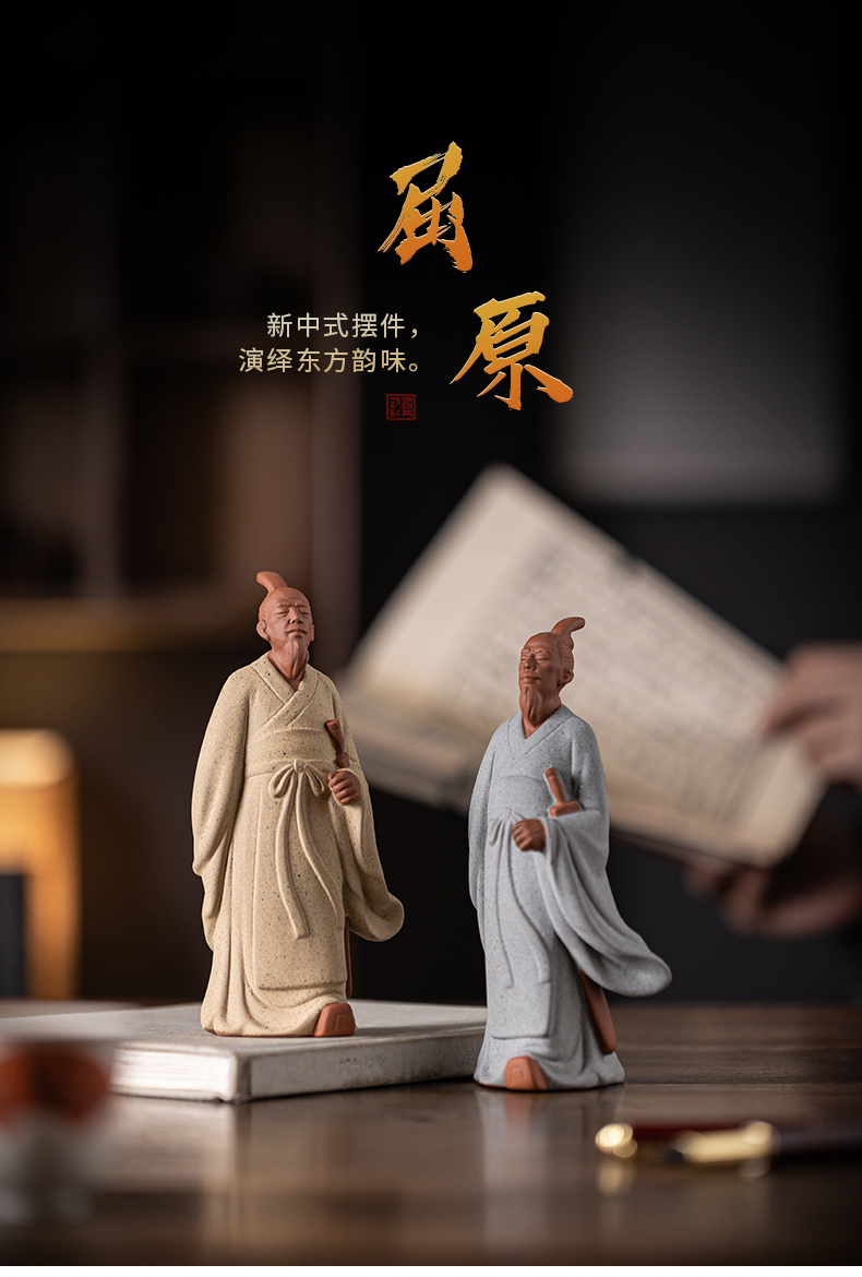 中式历史人物屈原陶瓷摆件书房茶室办公桌面装饰居室植物盆景摆景
