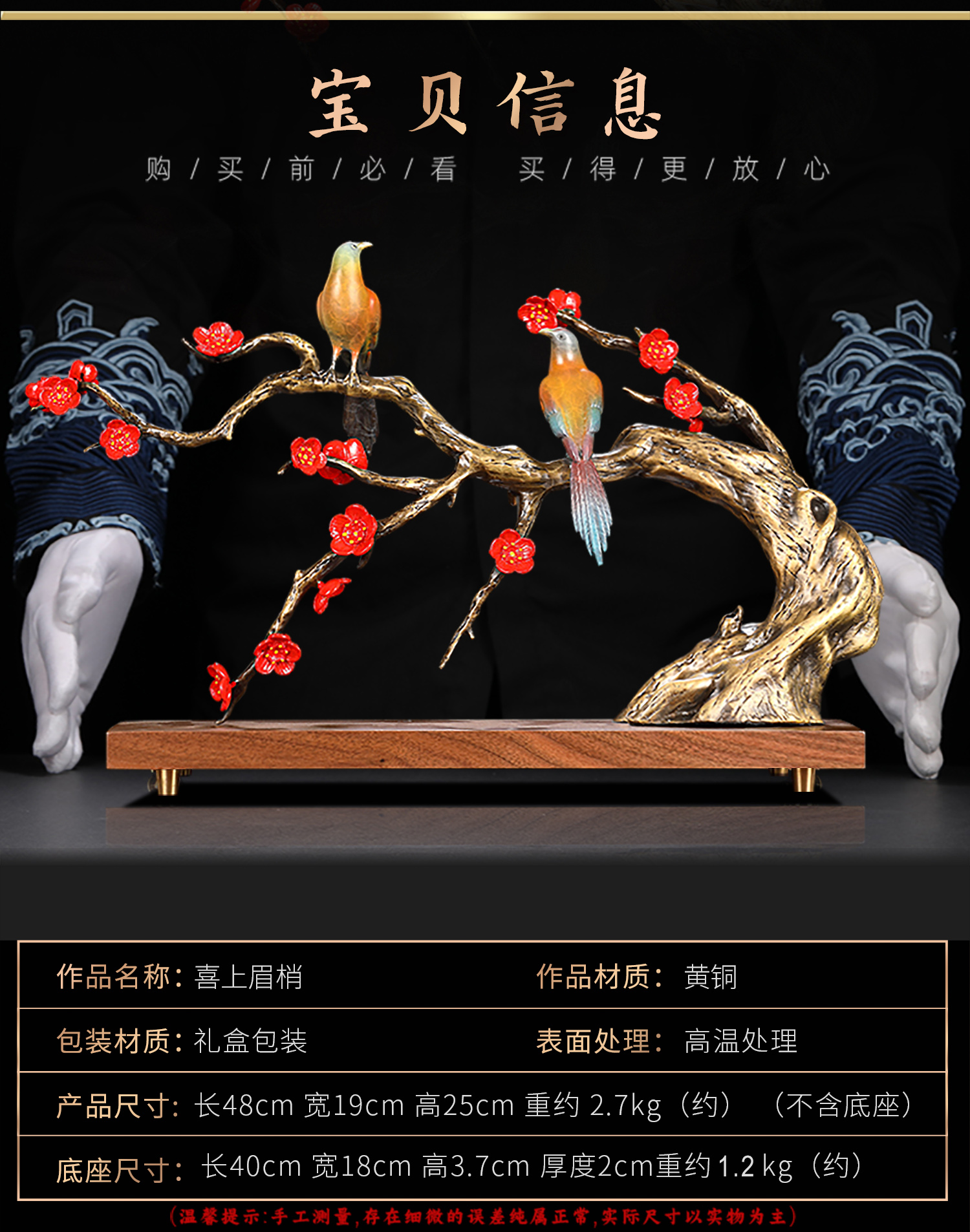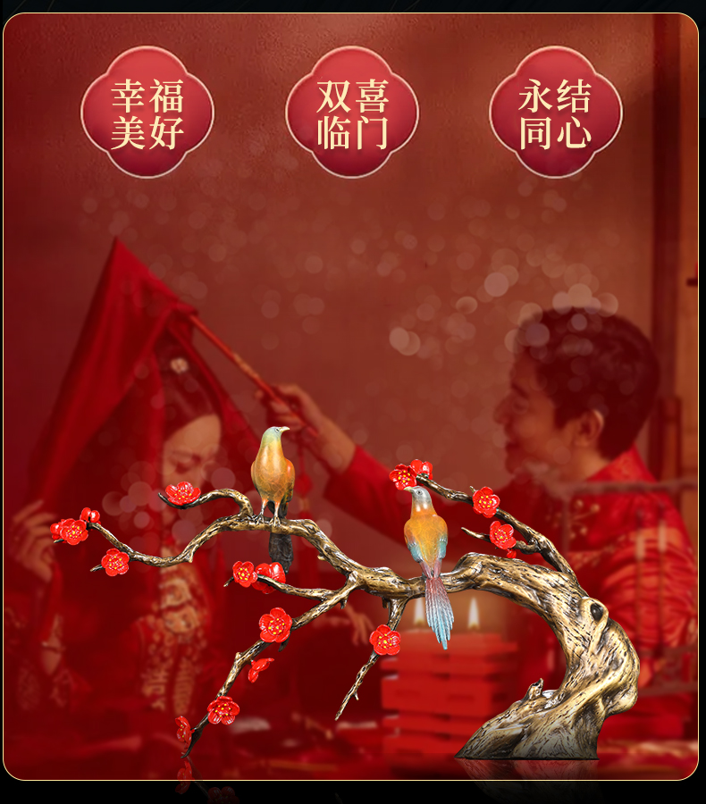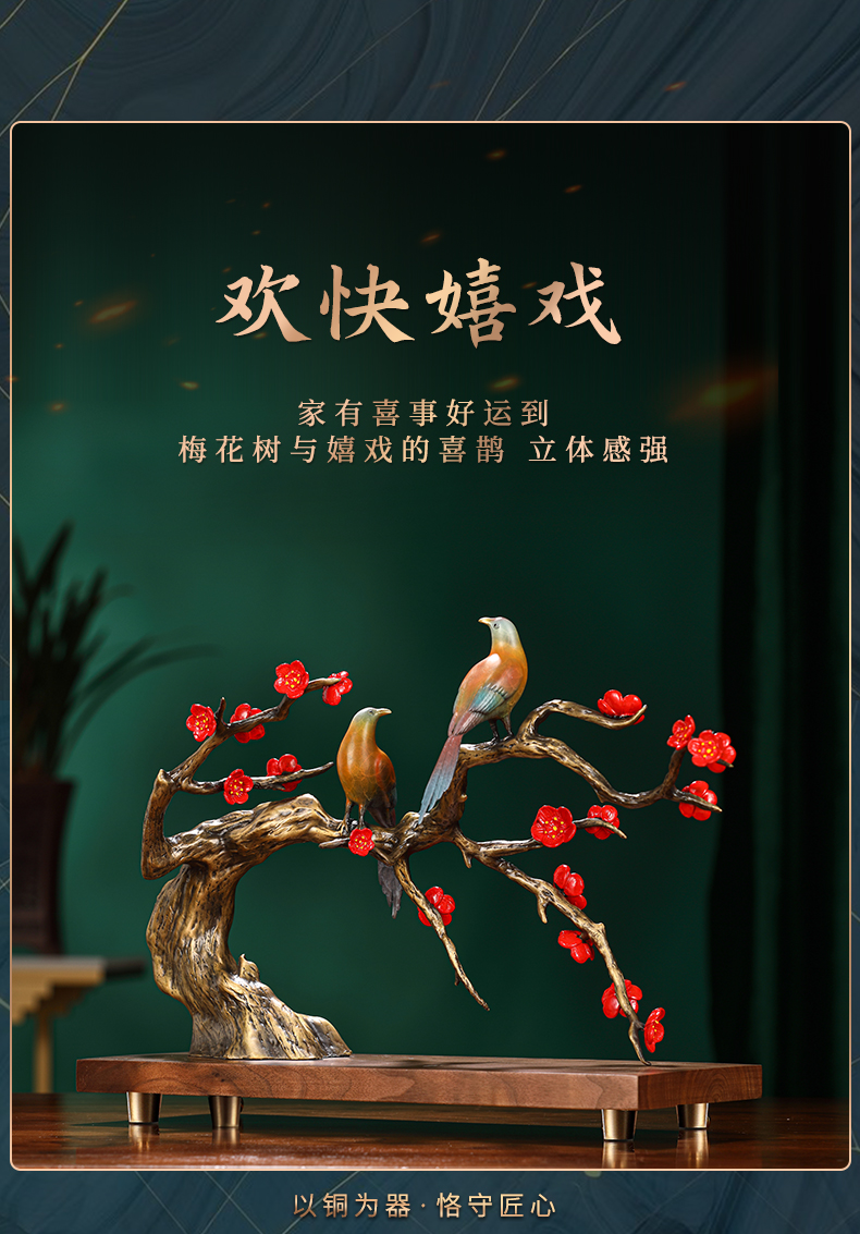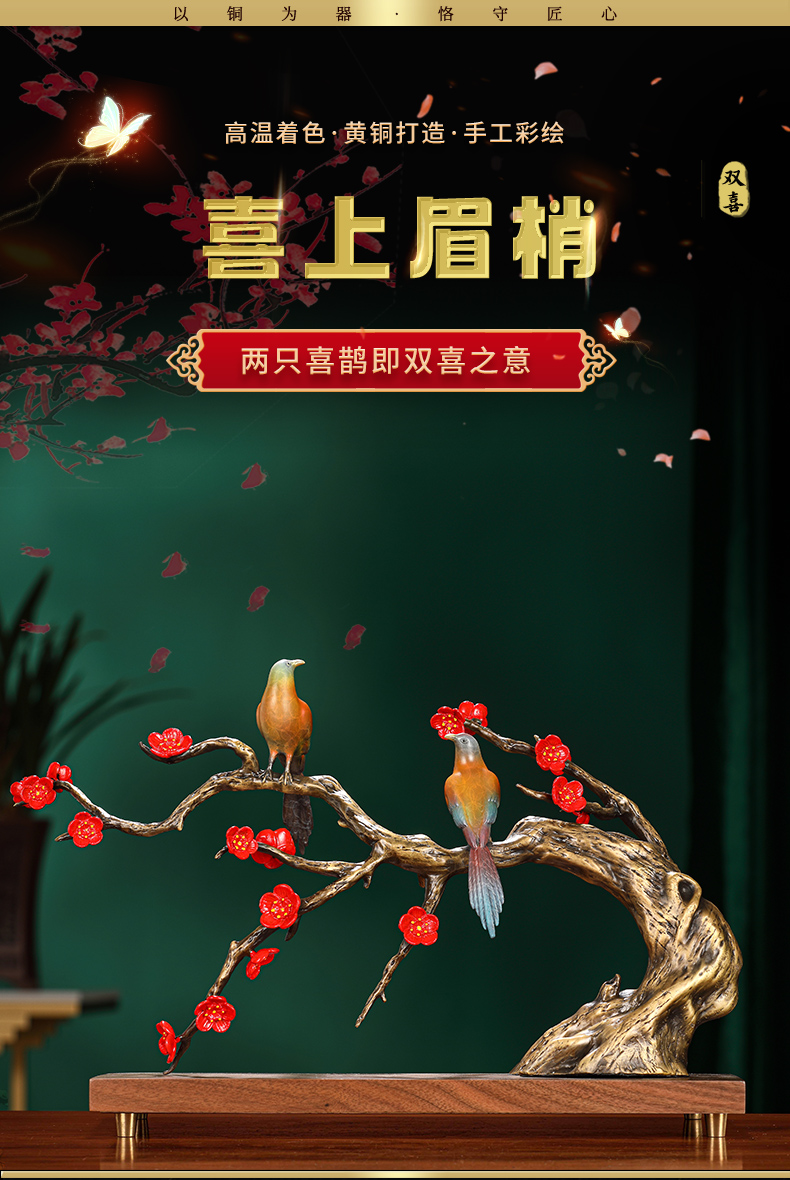 大铜世家喜上眉梢黄铜工艺品摆件中式婚房客厅装饰结婚礼物送新人