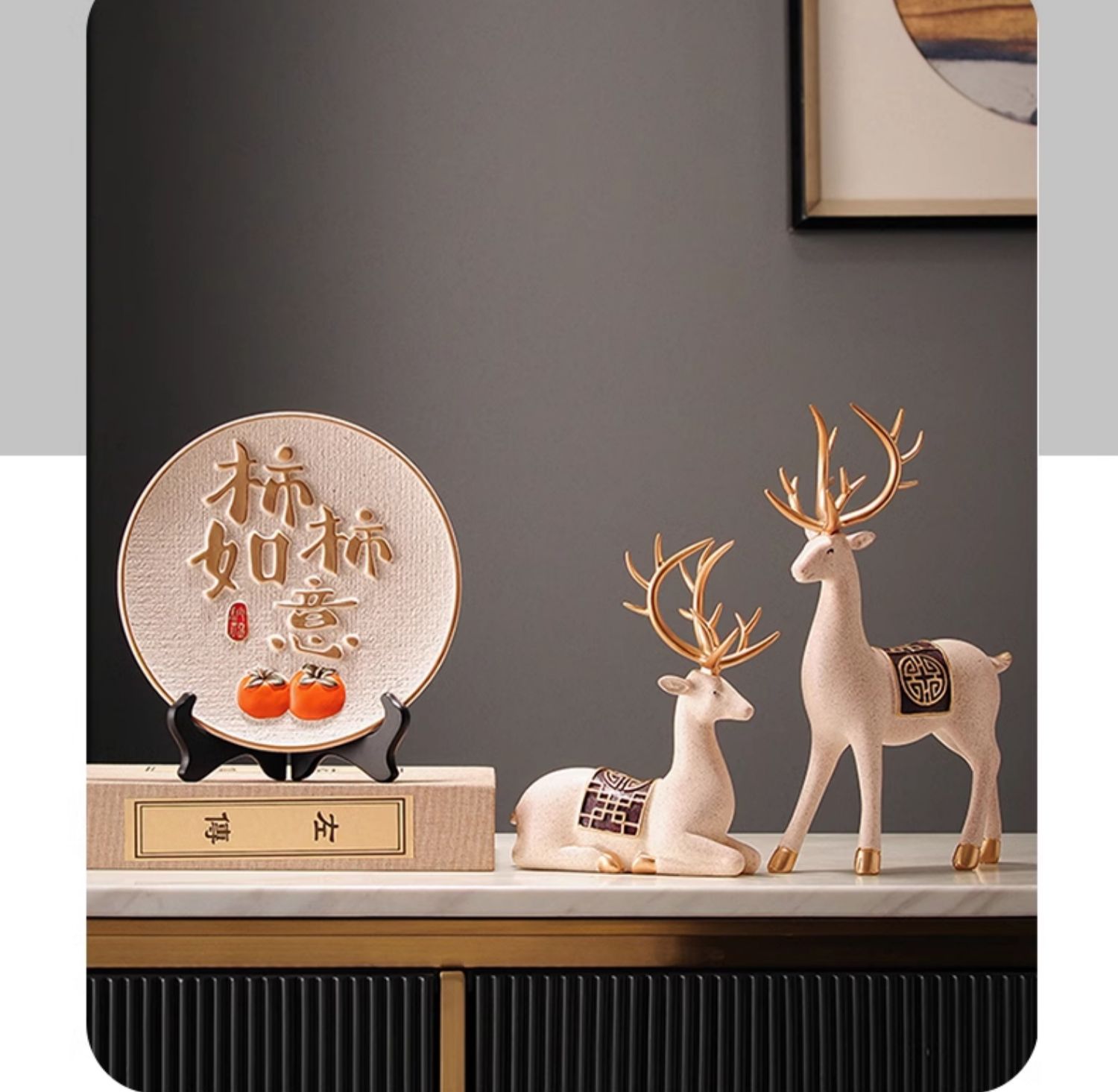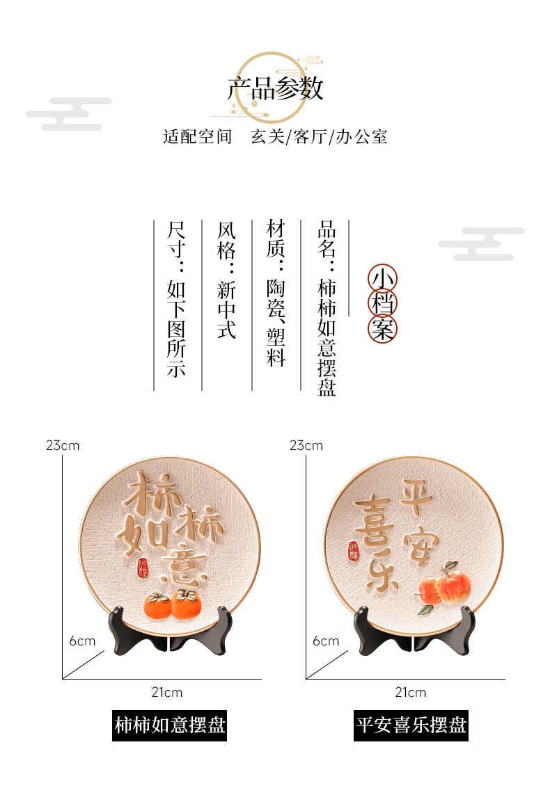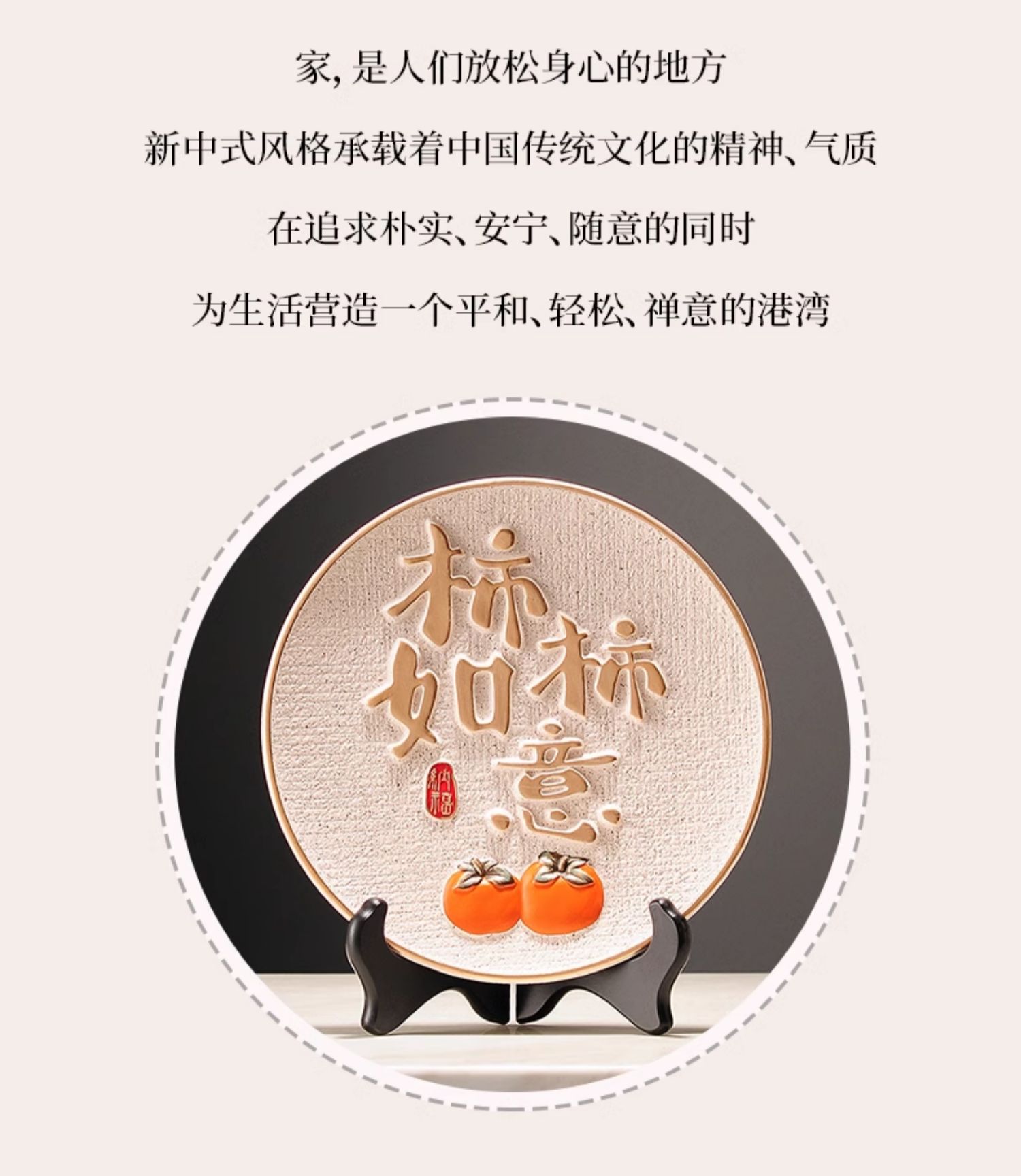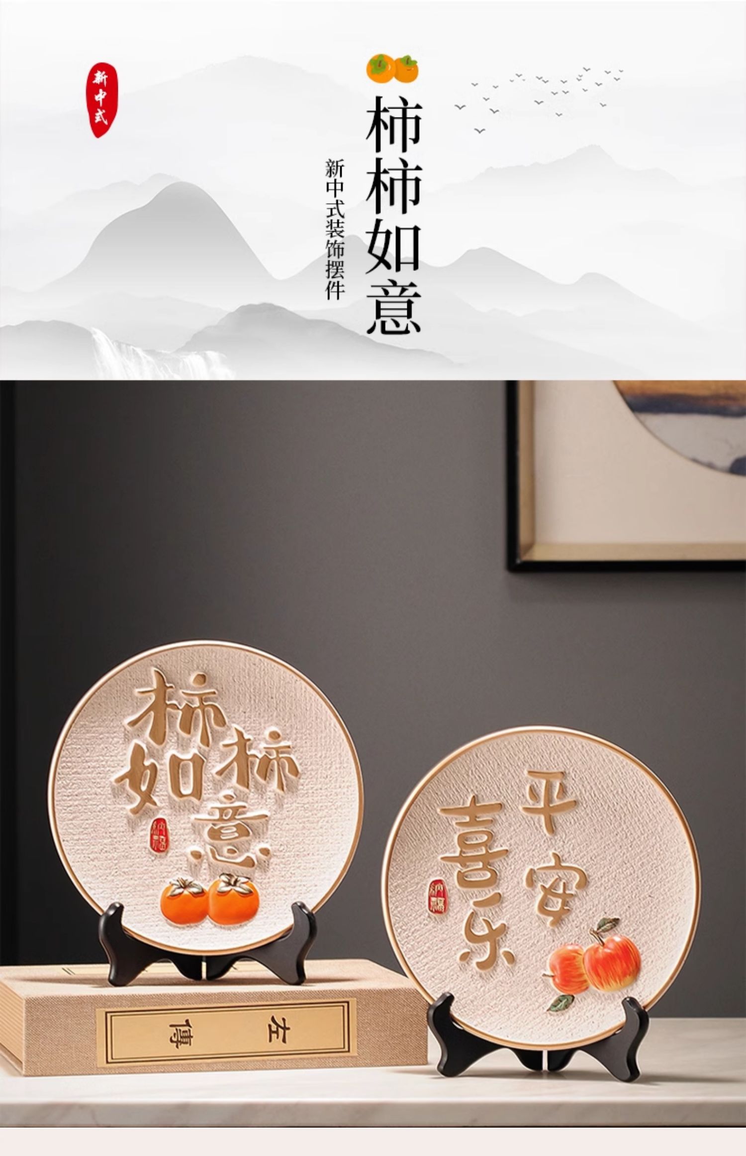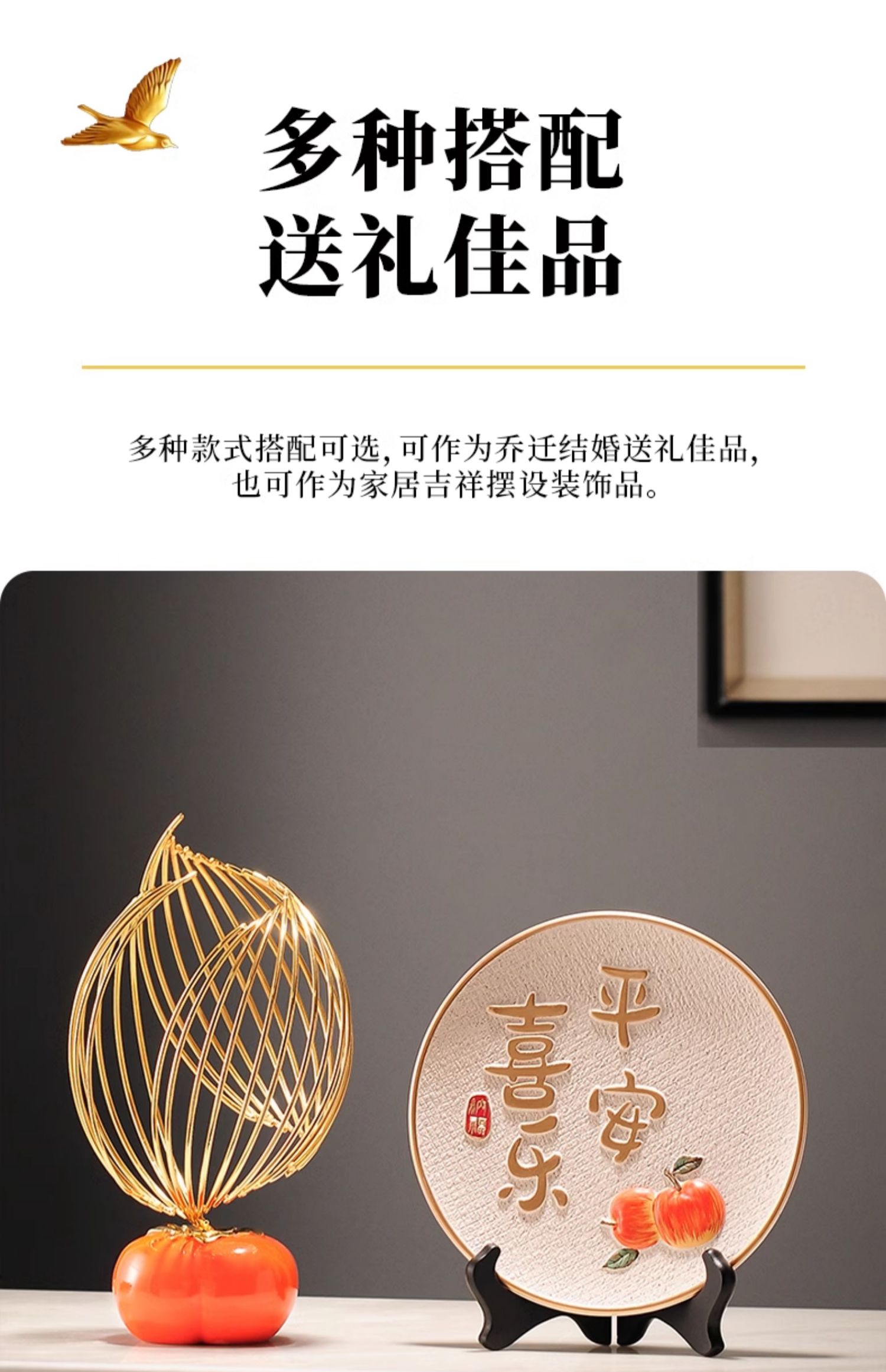 平安喜乐摆件柿柿事事如意客厅玄关电视柜酒柜装饰品乔迁新居礼品