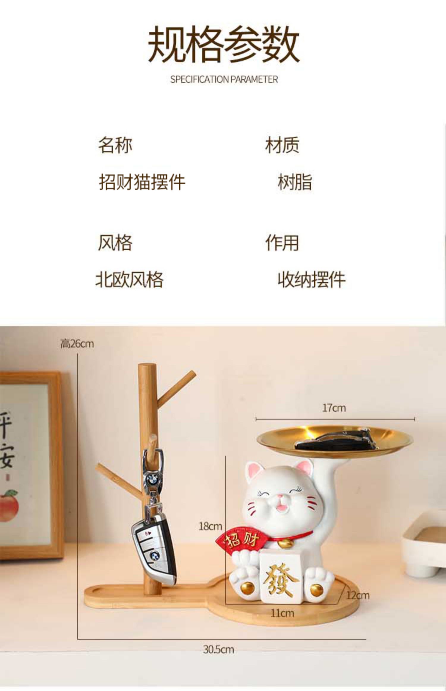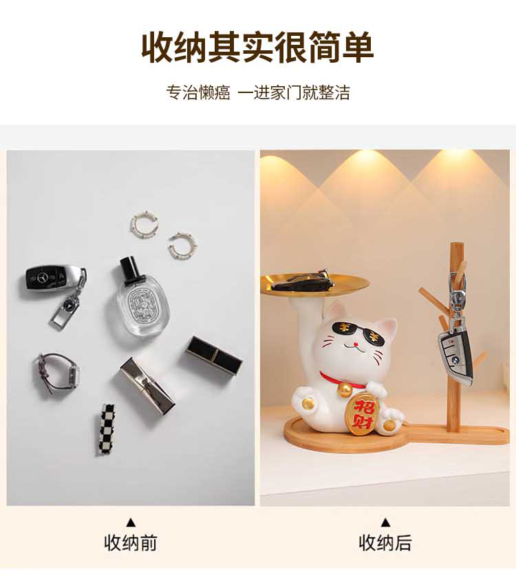 放钥匙收纳摆件招财猫托盘玄关客厅门口进门入户招财家居装饰品