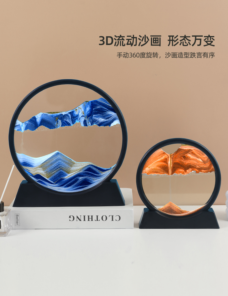 创意3D流沙画摆件电视柜酒柜客厅桌面装饰品艺术沙漏轻奢礼物家居