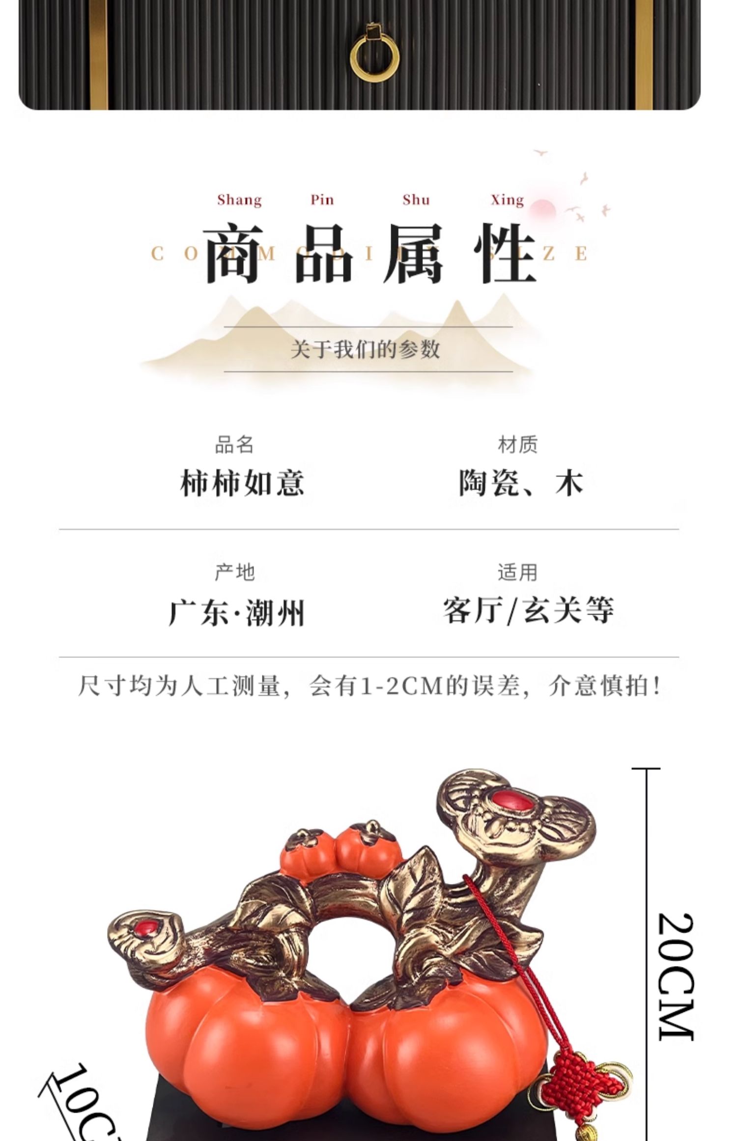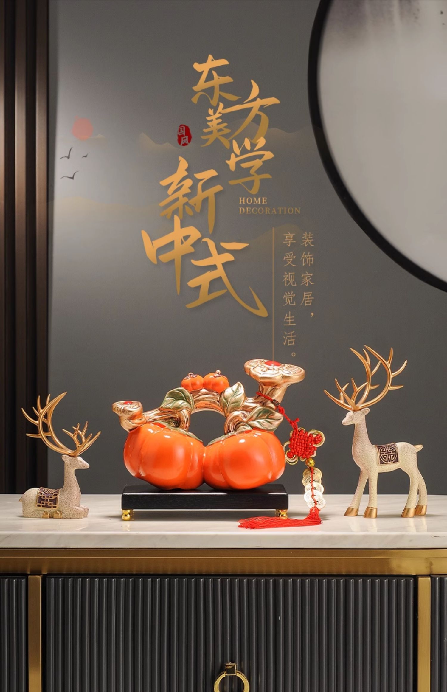 柿柿如意柿子摆件入宅乔迁新居之喜礼物客厅玄关酒柜电视柜装饰品