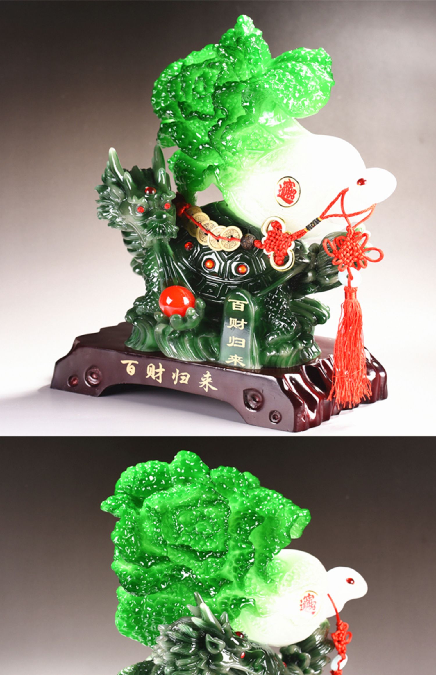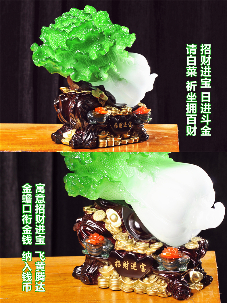 玉白菜摆件招财大号金蟾客厅玄关电视酒柜店铺工艺装饰品开业礼品