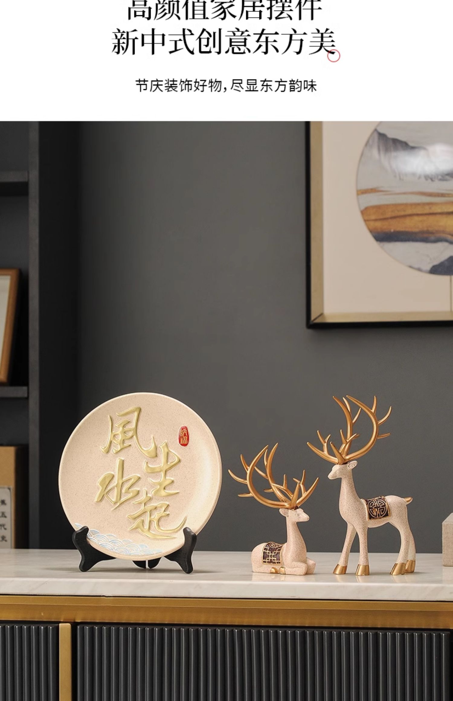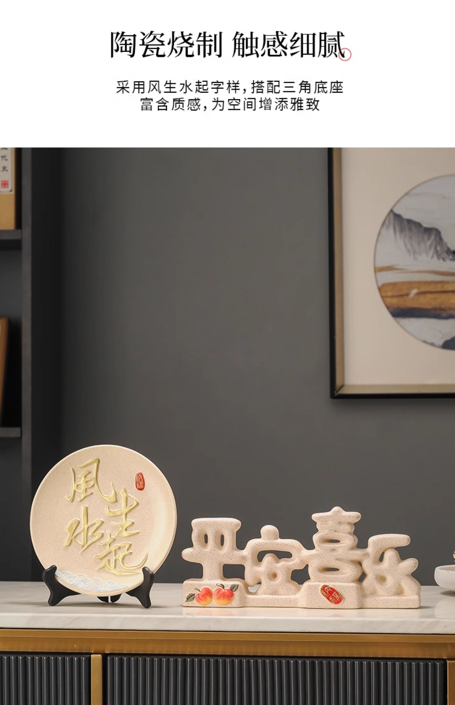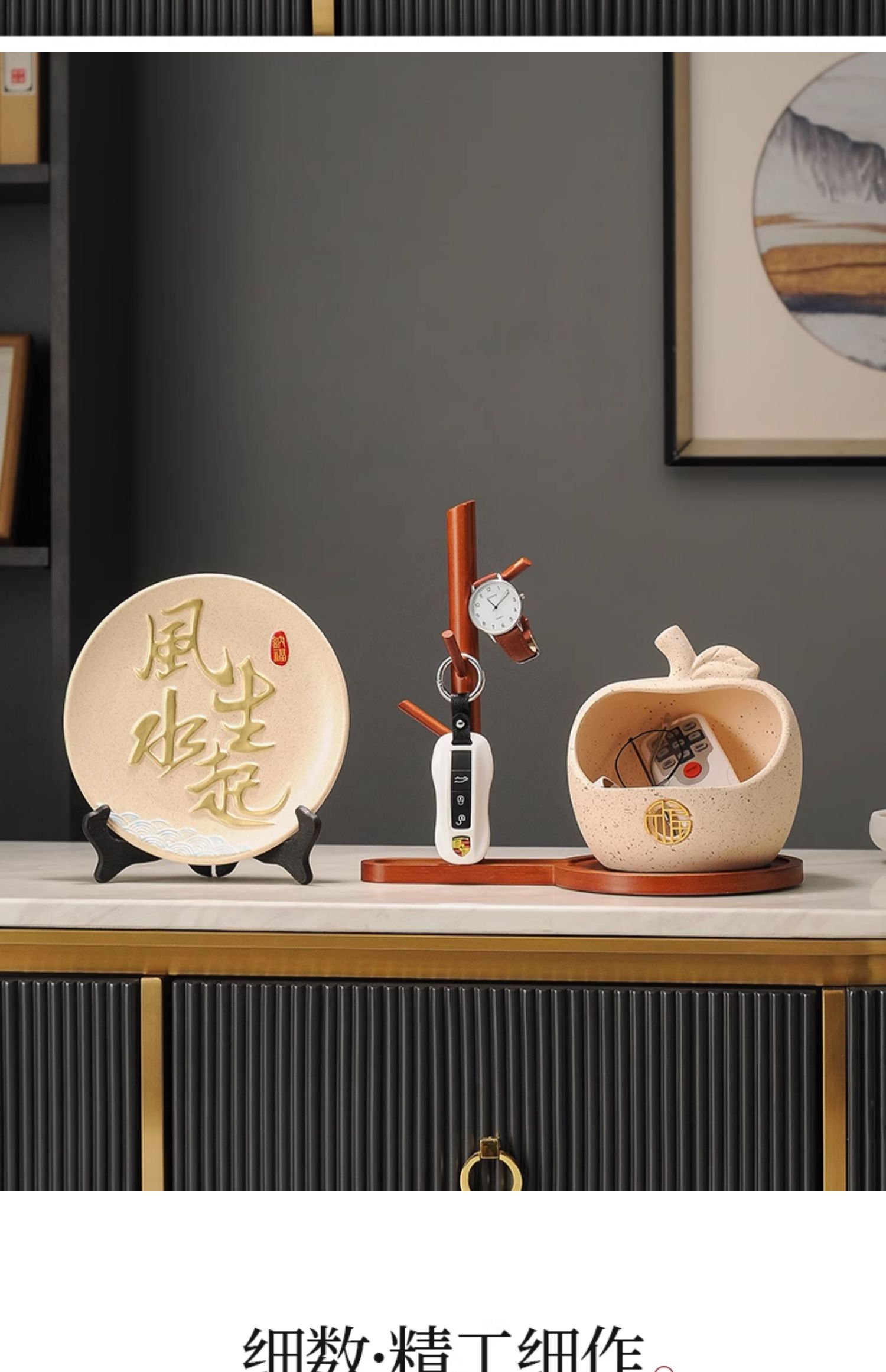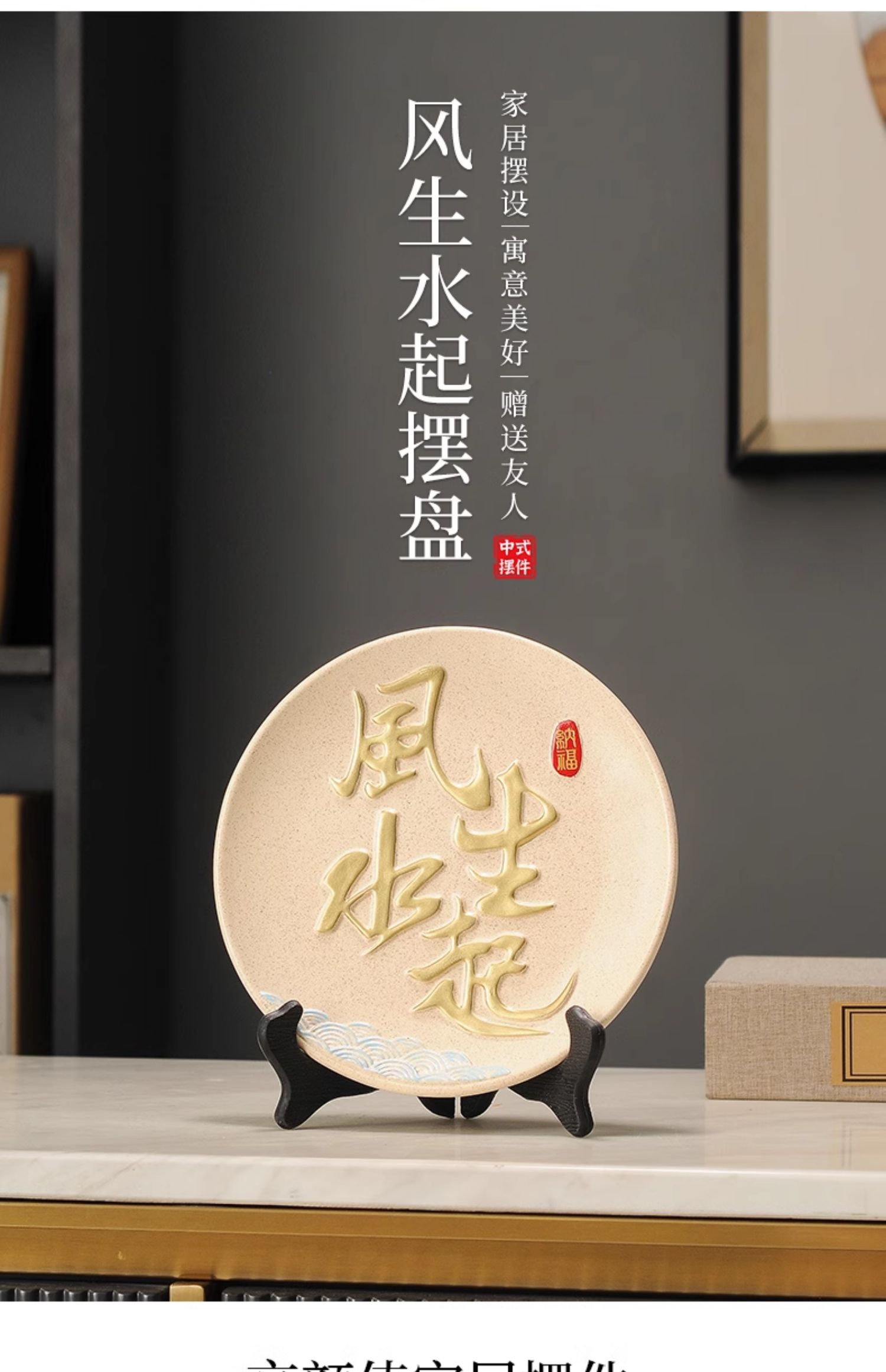 风生水起摆盘挂盘新中式摆件复古客厅酒柜国风禅意玄关桌面装饰品