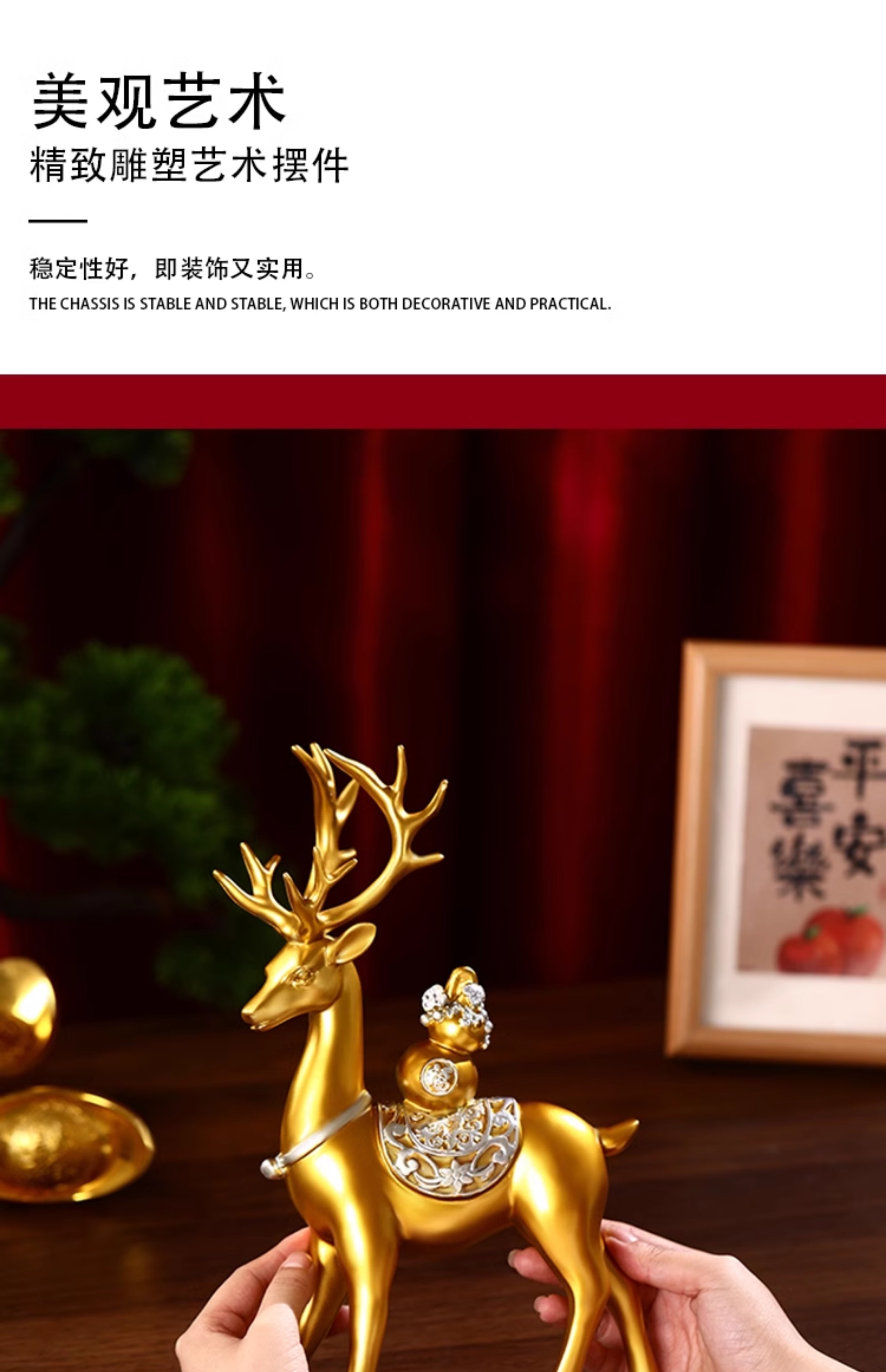 创意招财鹿摆件客厅酒柜玄关家居摆设电视柜福鹿装饰新房乔迁礼物