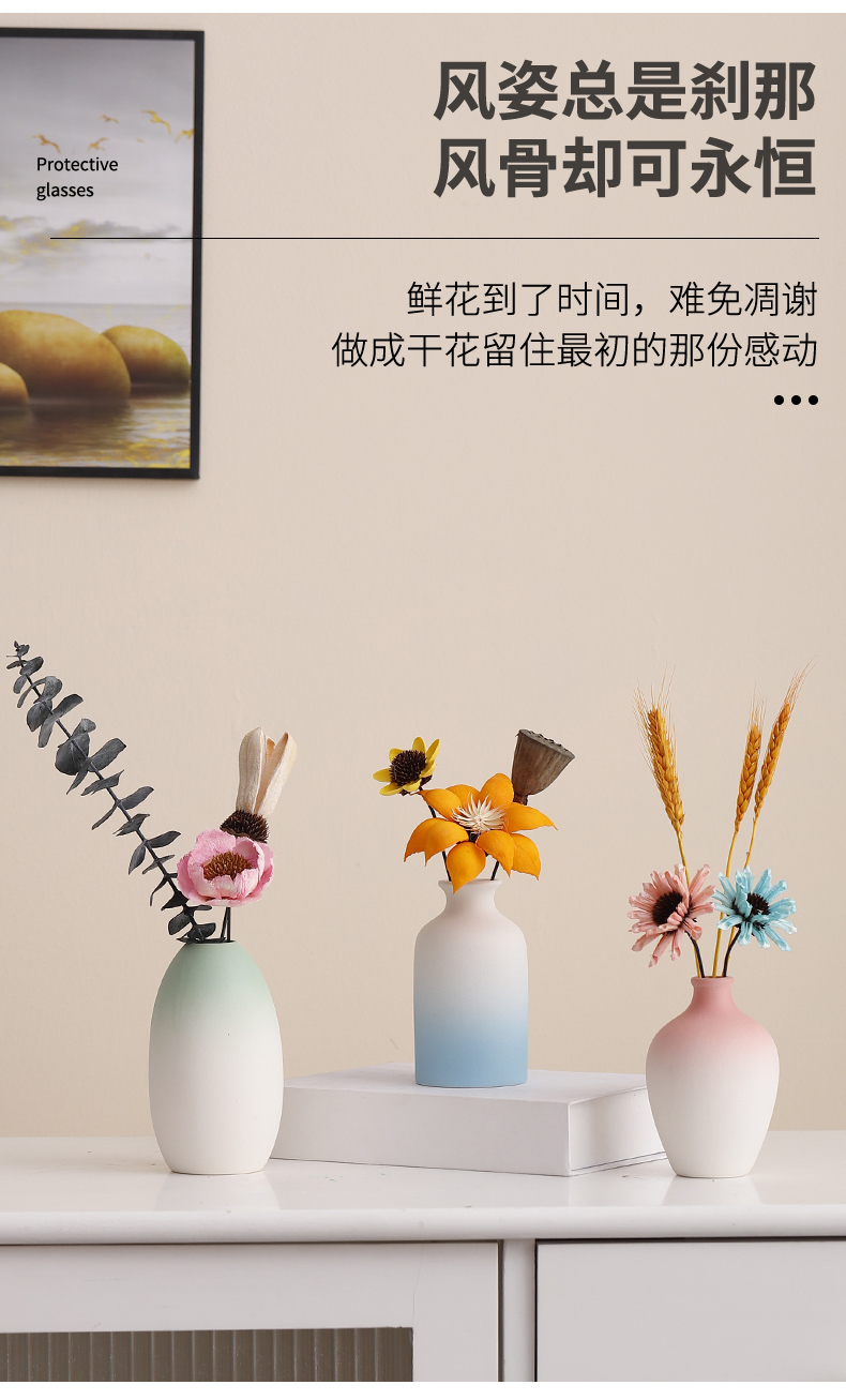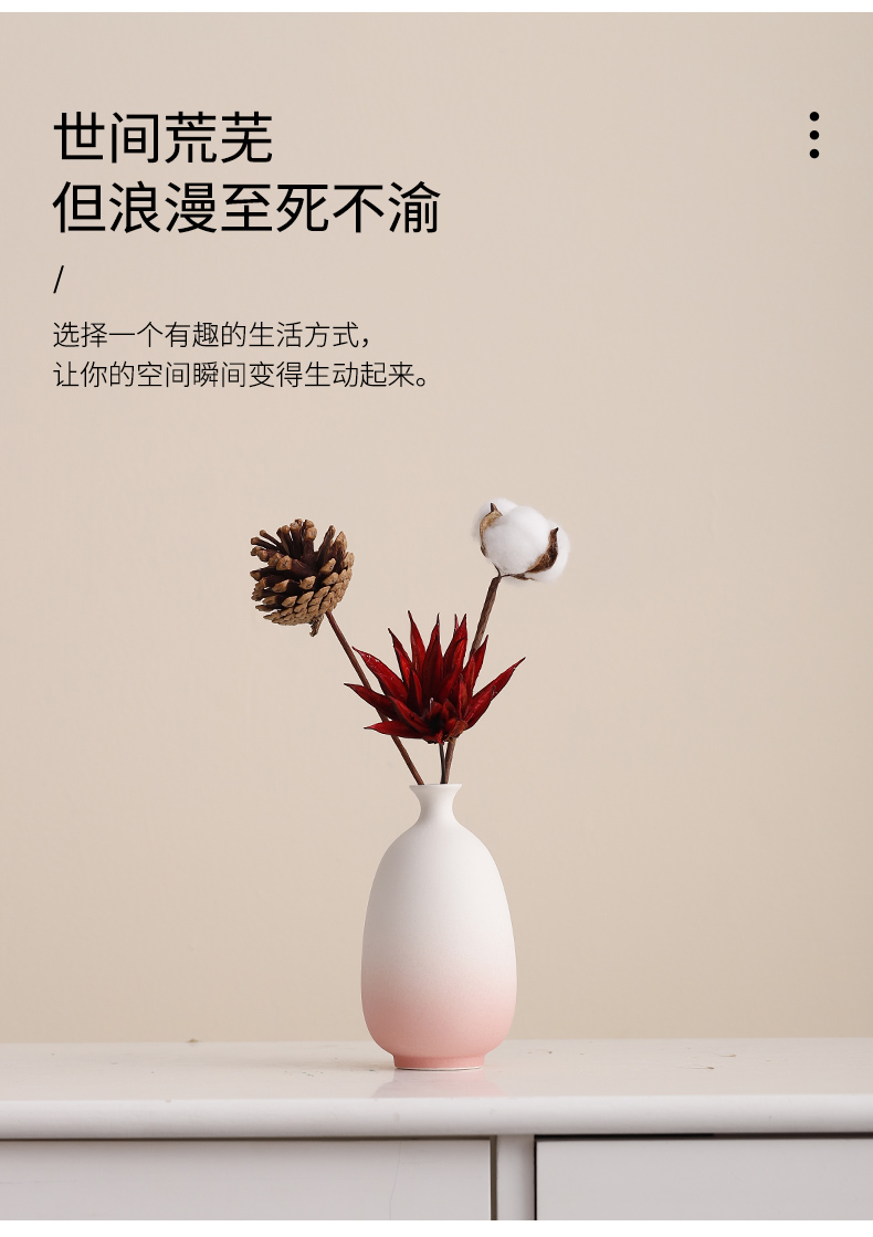 陶瓷小花瓶客厅插花干花摆件高级感小众玄关酒柜装饰品电视柜摆设