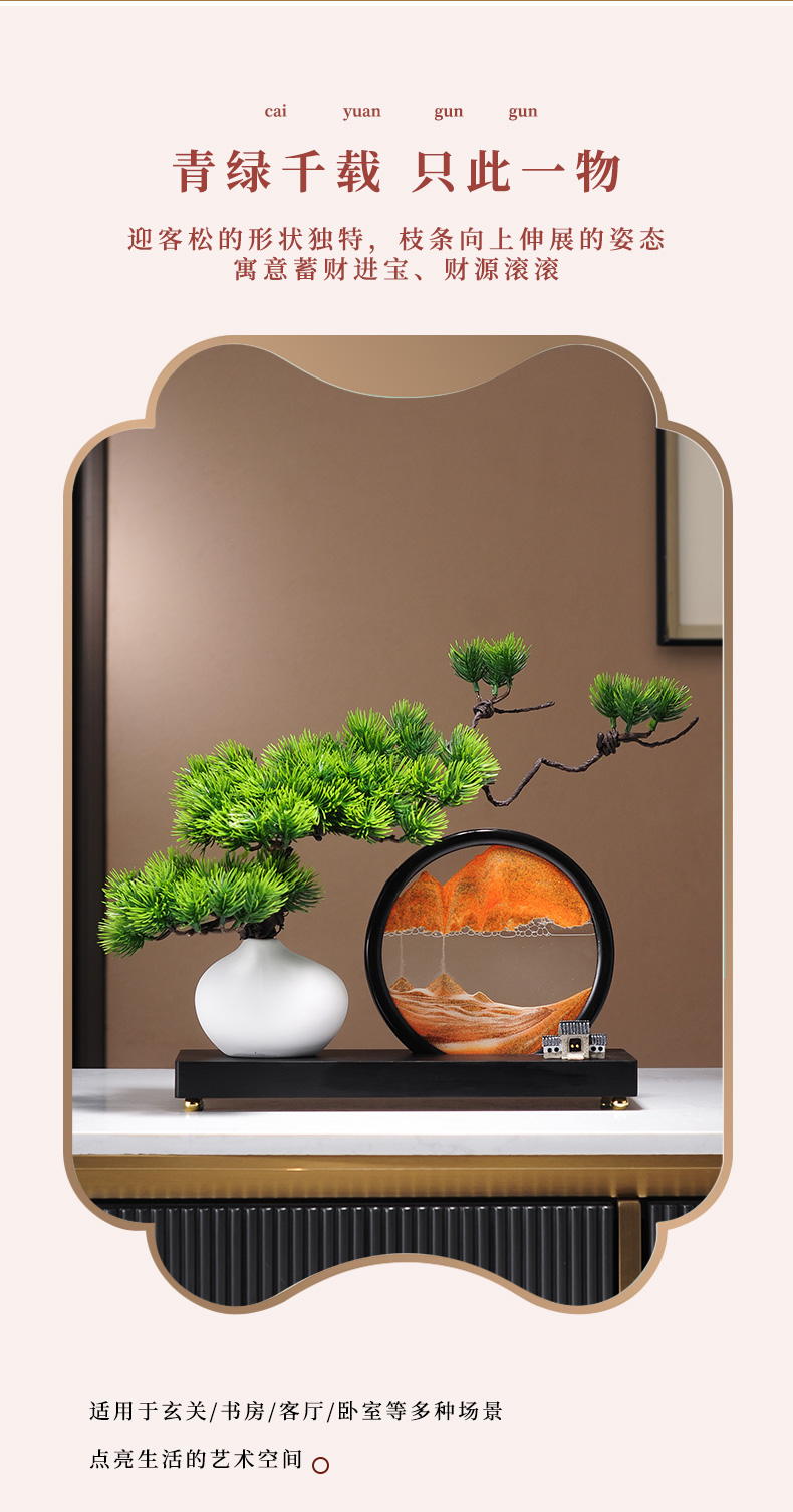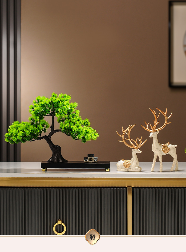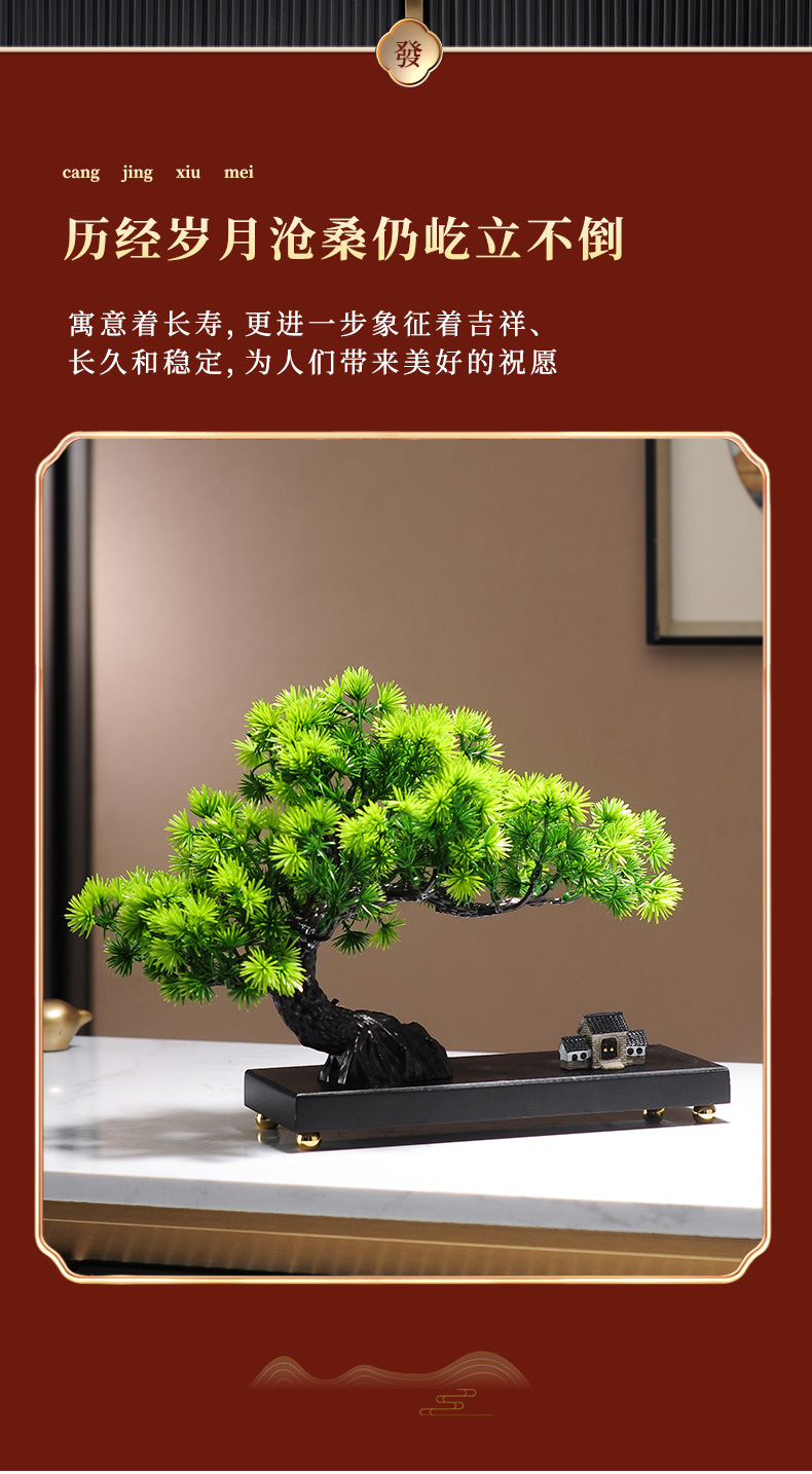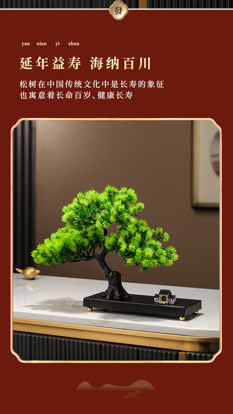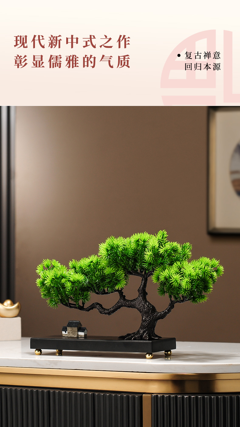 仿真绿植迎客松罗汉松盆景新中式客厅玄关茶几酒柜装饰品禅意摆件