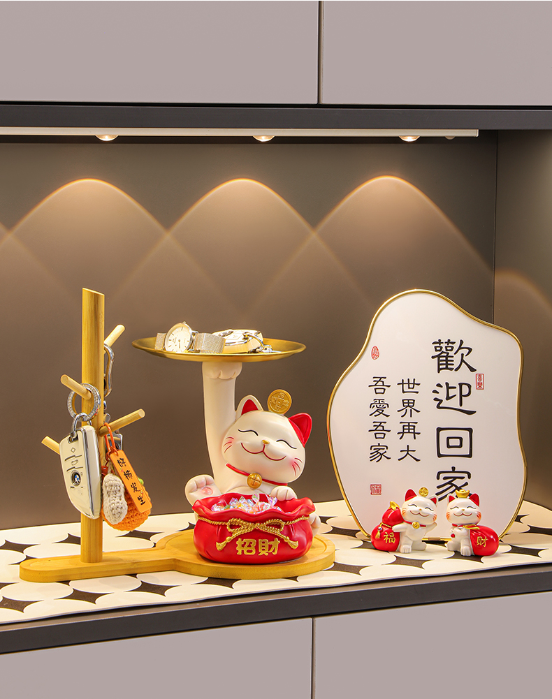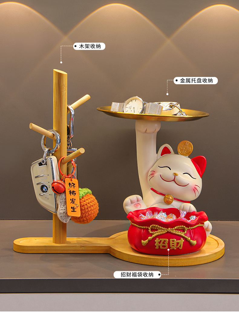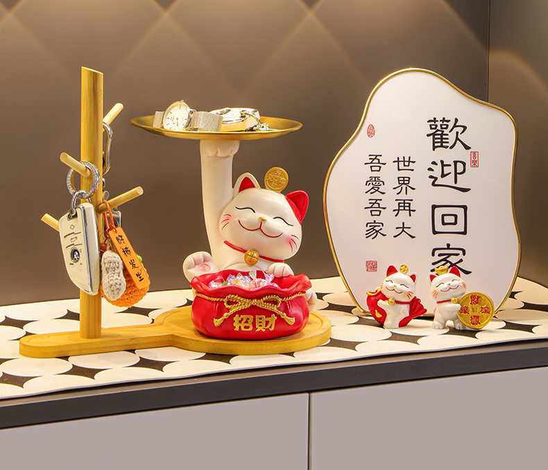 招财猫钥匙收纳玄关装饰品摆件入户门口鞋柜客厅家居乔迁新居礼品