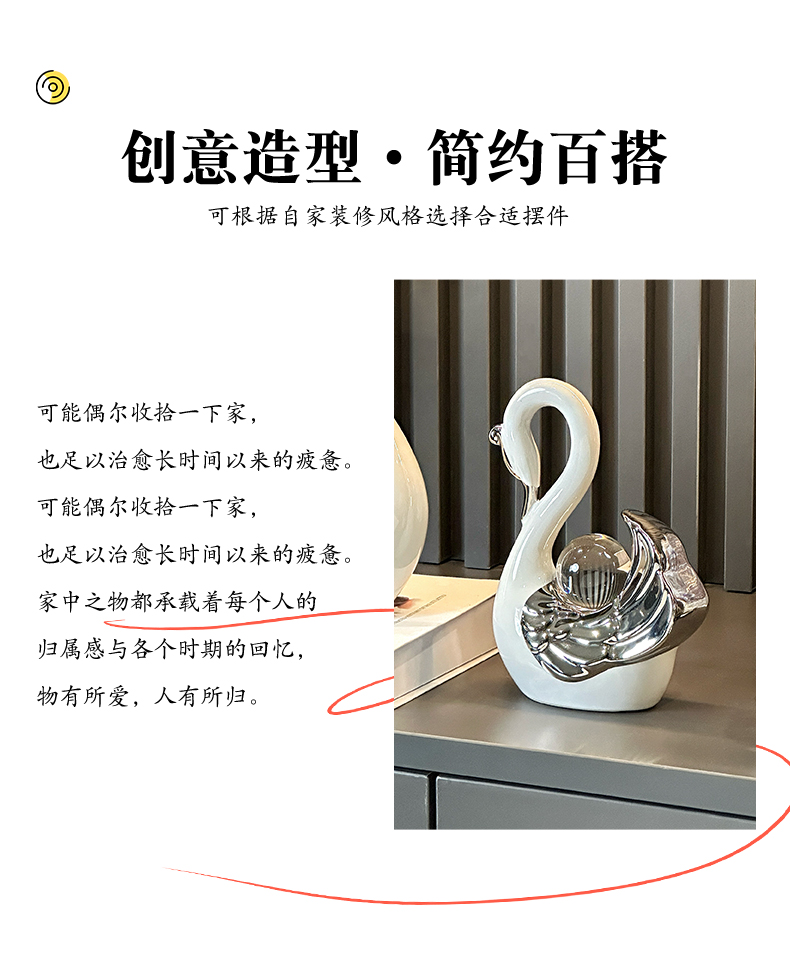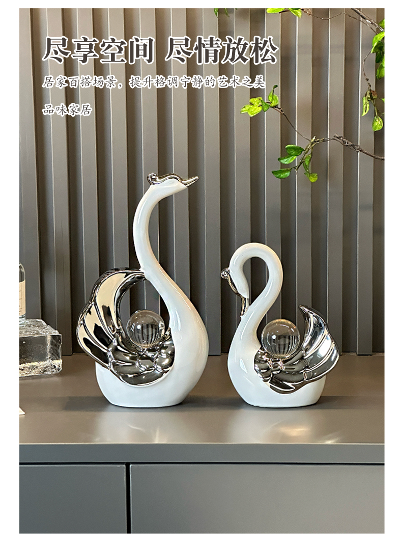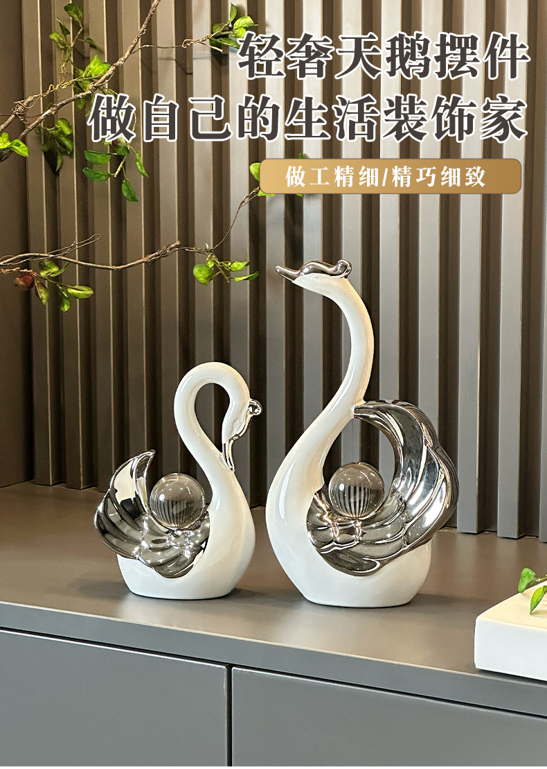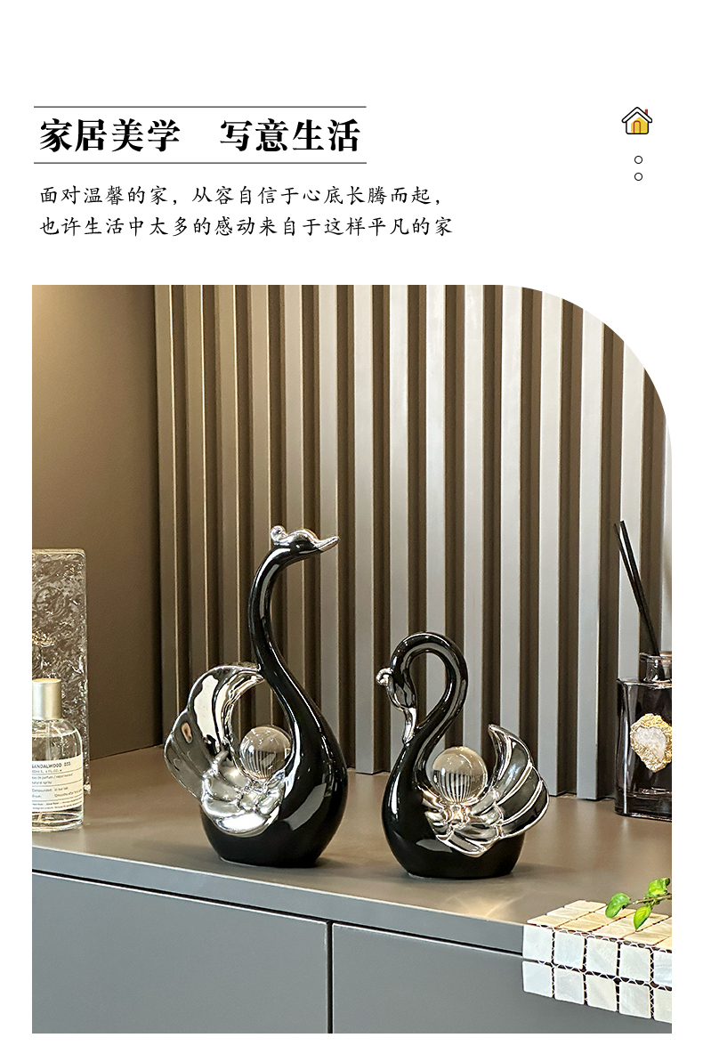 高颜值水晶球情侣天鹅摆件现代轻奢家居玄关客厅酒柜电视柜装饰品
