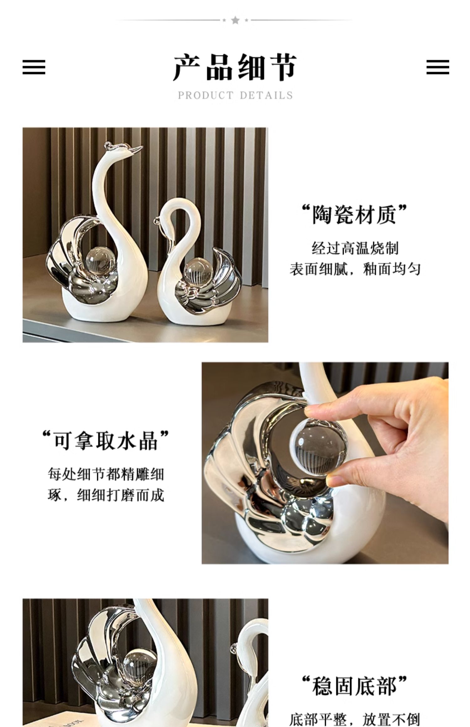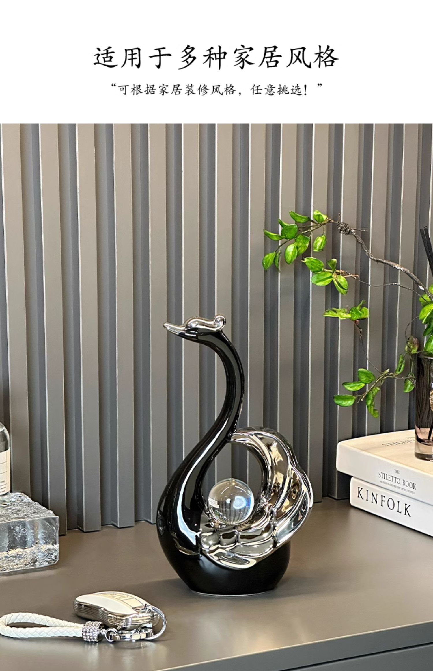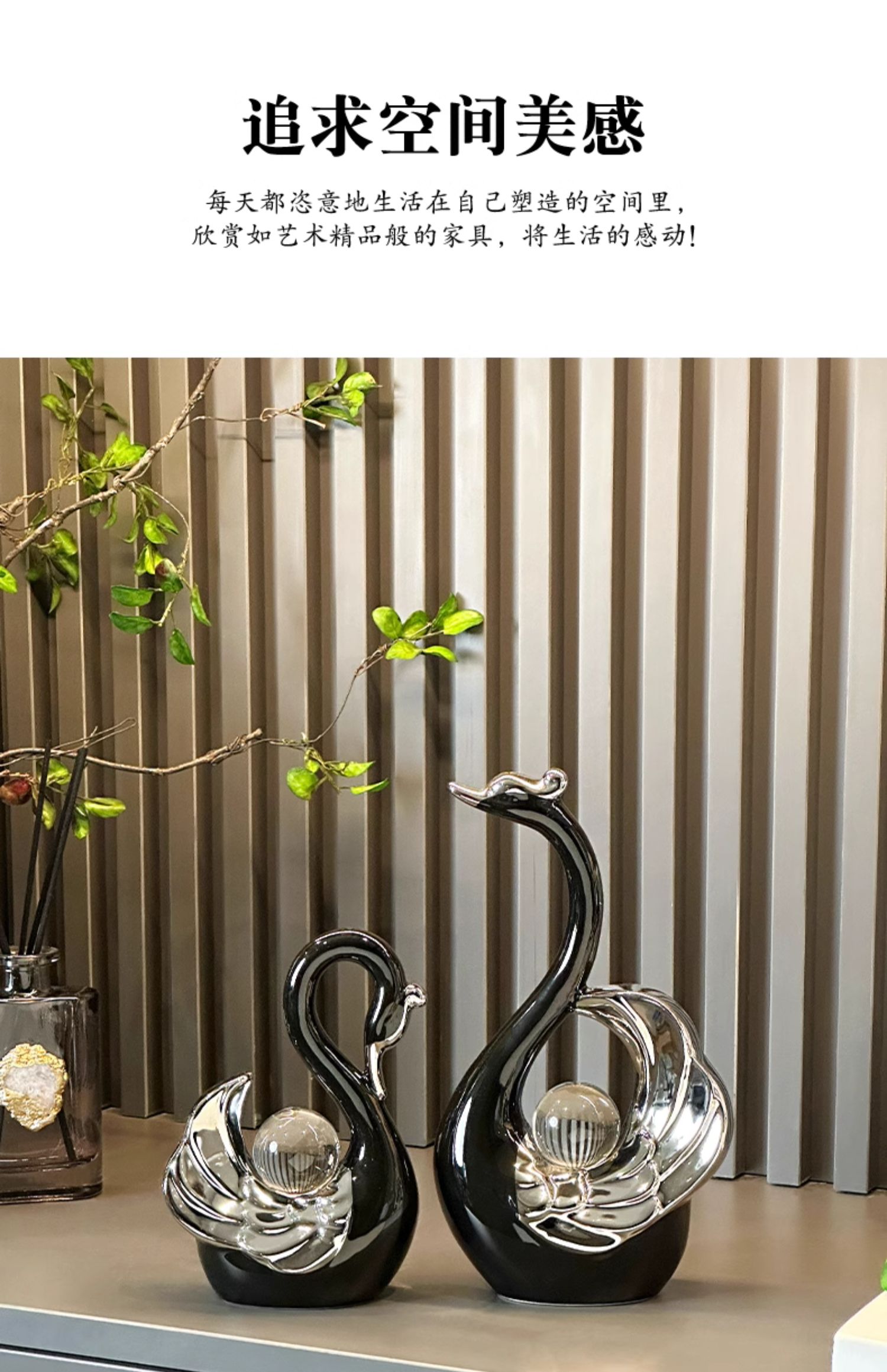 高颜值水晶球情侣天鹅摆件现代轻奢家居玄关客厅酒柜电视柜装饰品