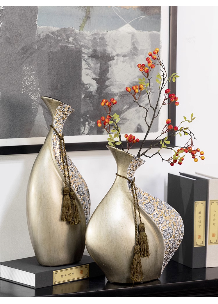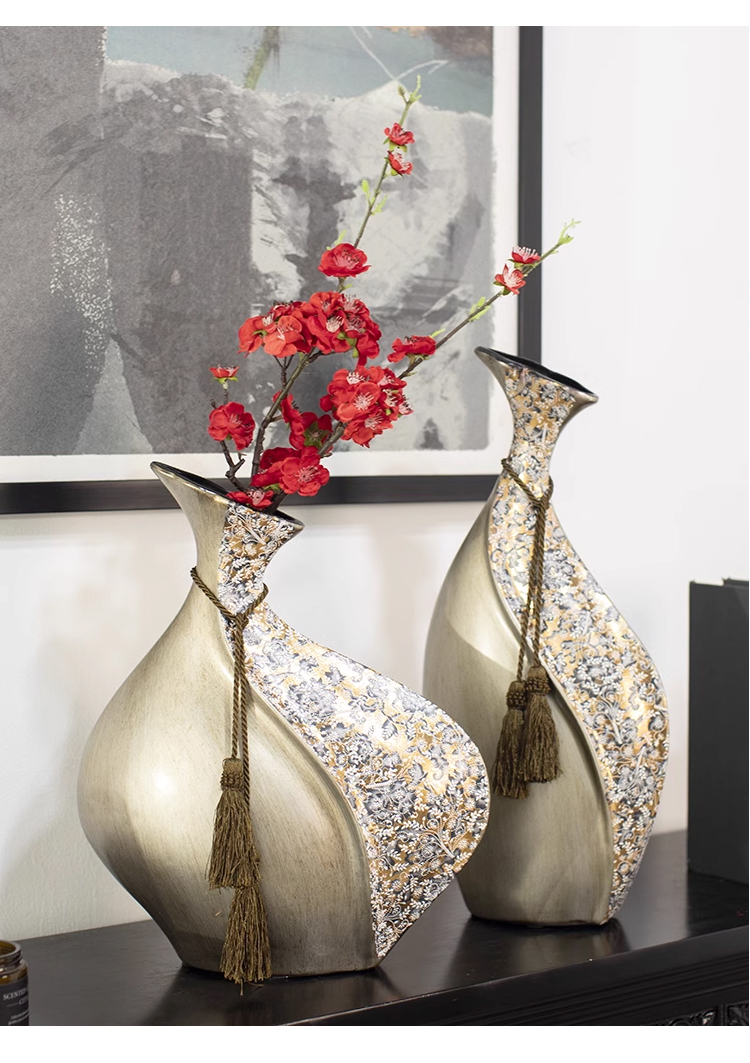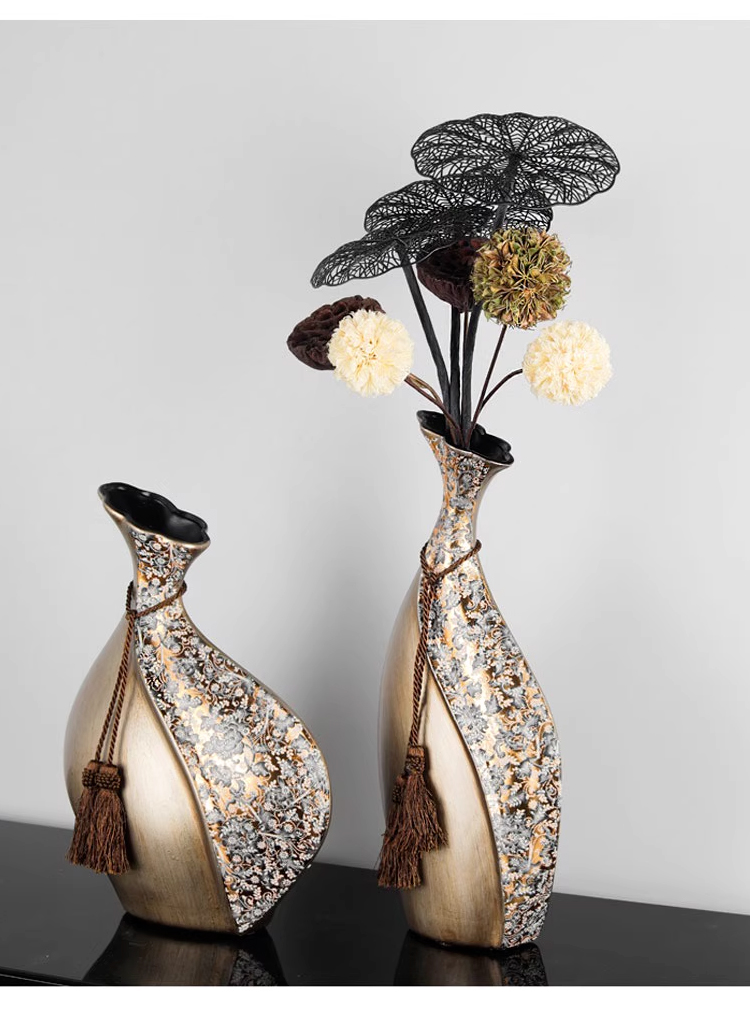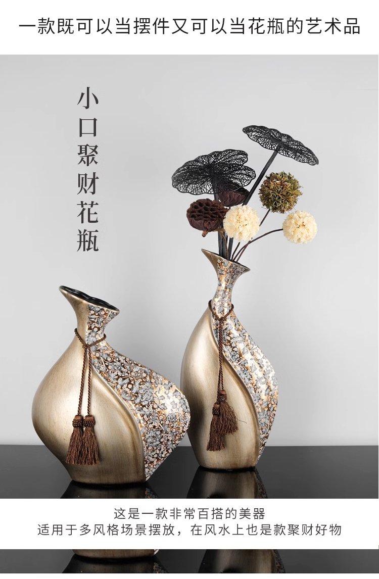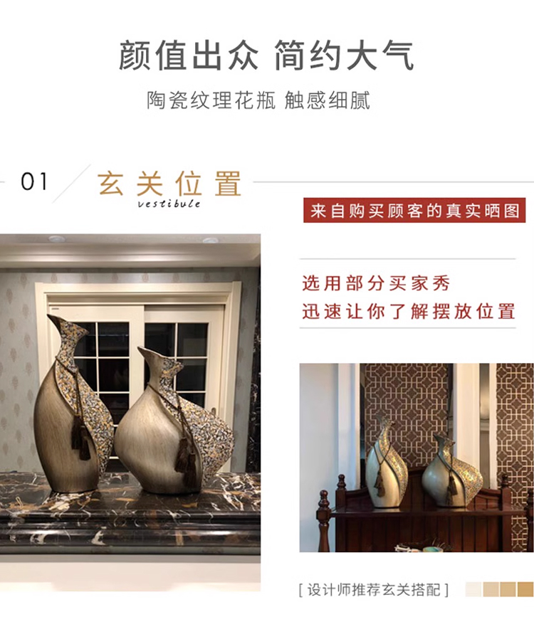 柏梵创意高档陶瓷花瓶摆件客厅电视柜玄关复古干花聚财工艺品摆件