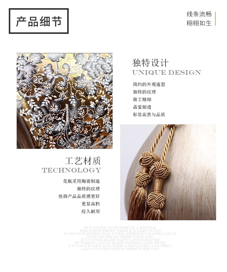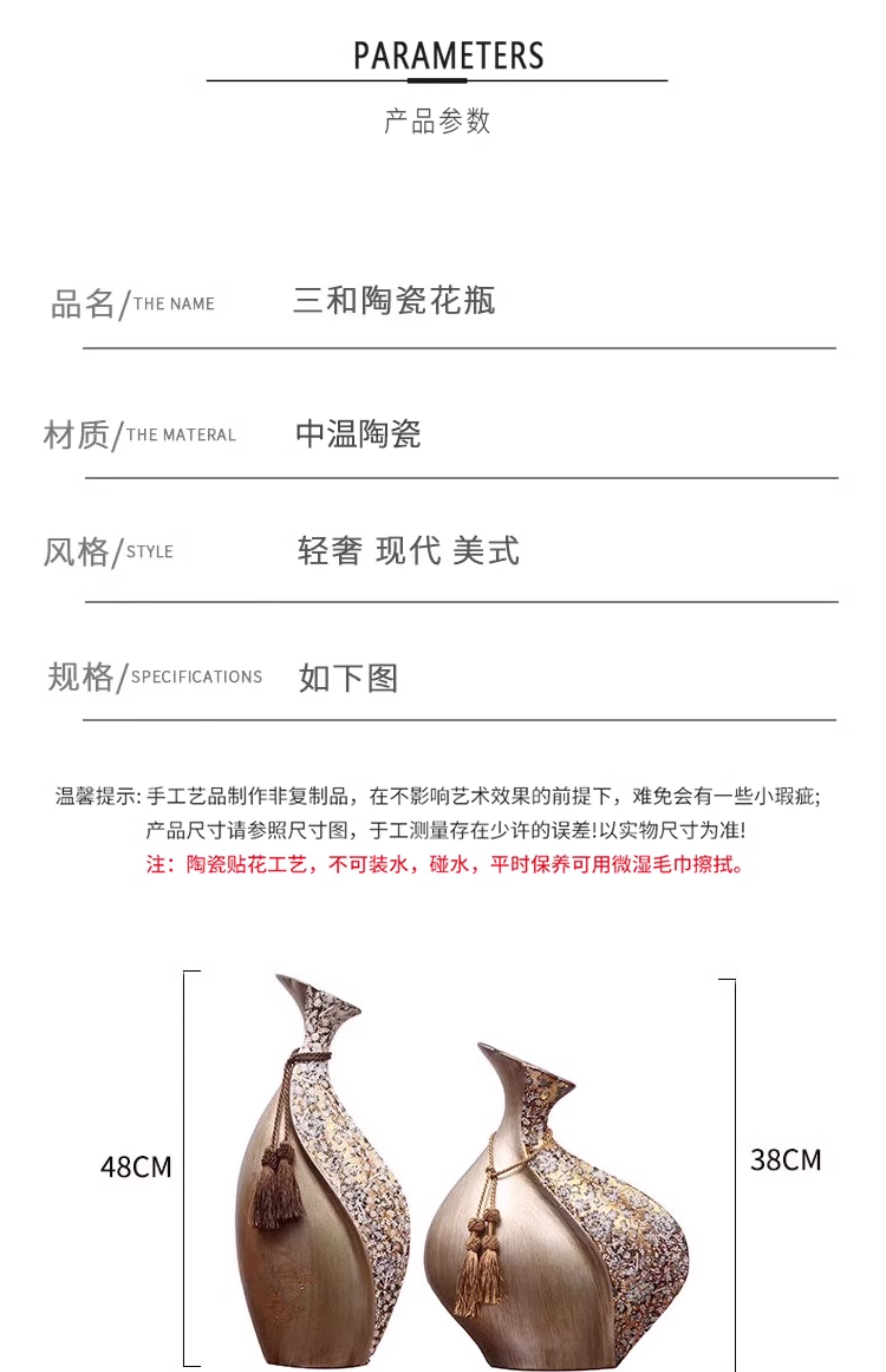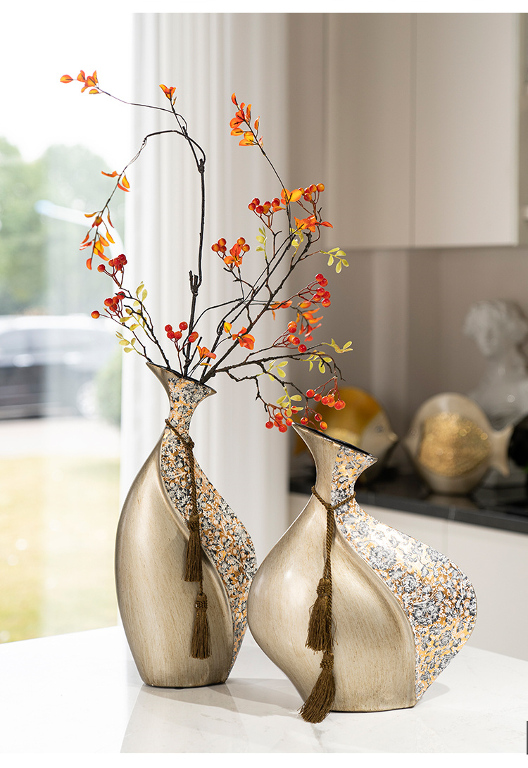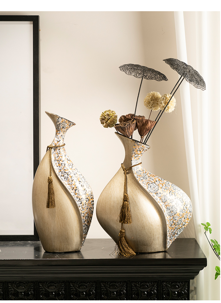 柏梵创意高档陶瓷花瓶摆件客厅电视柜玄关复古干花聚财工艺品摆件