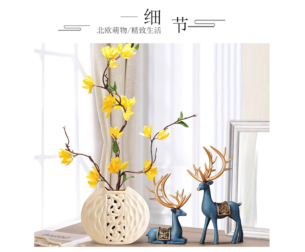 新中式鹿摆件装饰品创意室内花瓶客厅房间卧室工艺品乔迁送礼物品