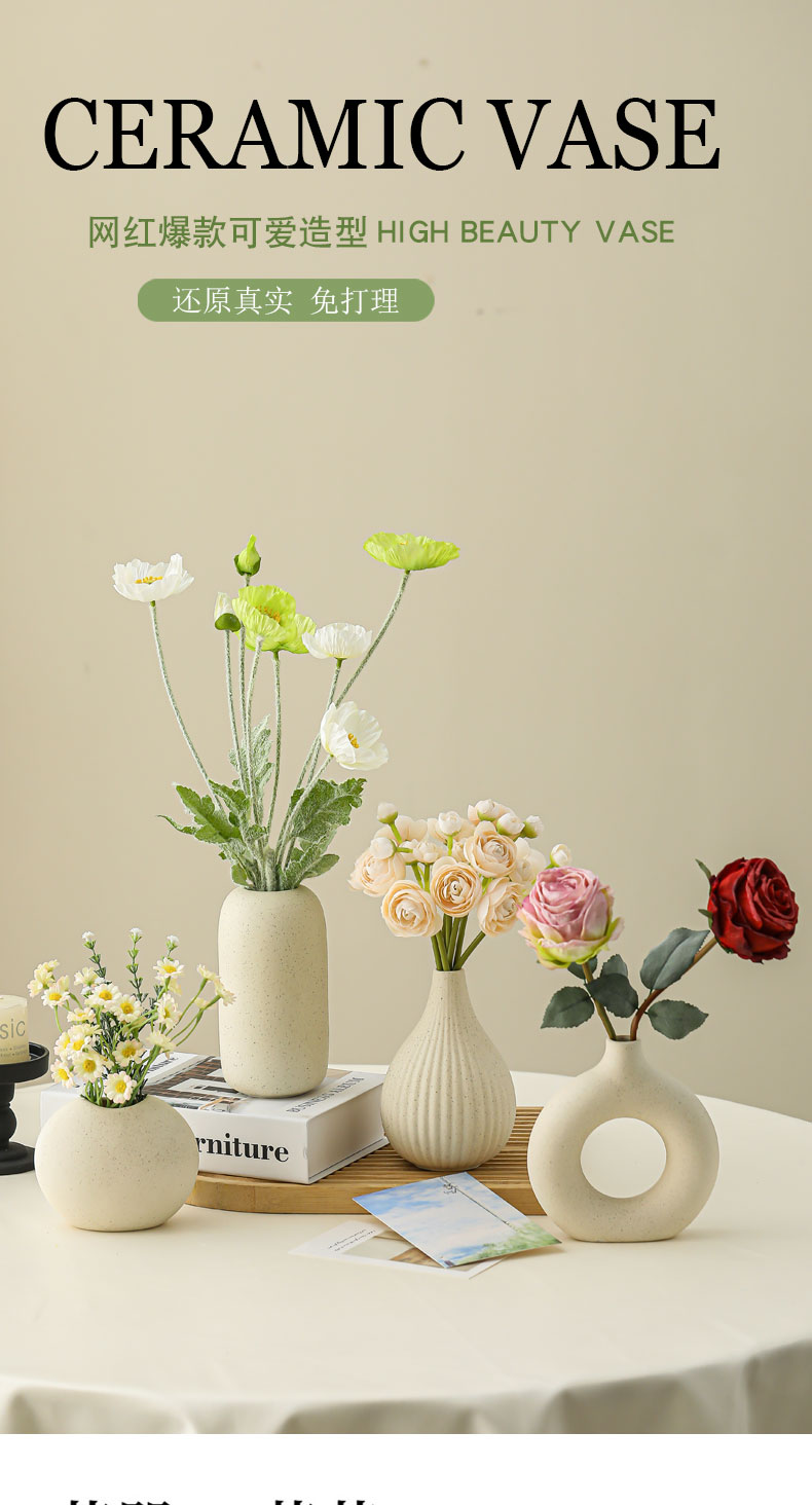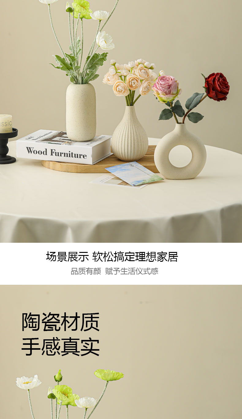 陶瓷花瓶摆件仿真洋牡丹桌面装饰假花客厅餐桌插花花束小众高级感