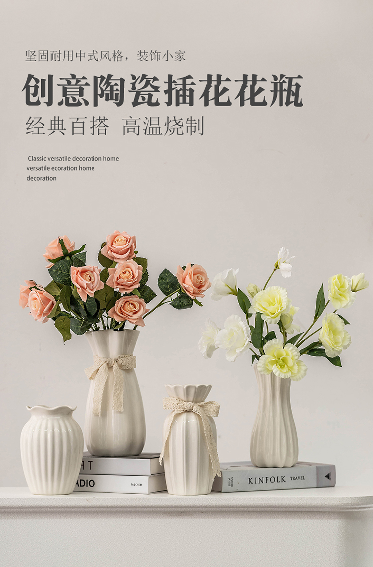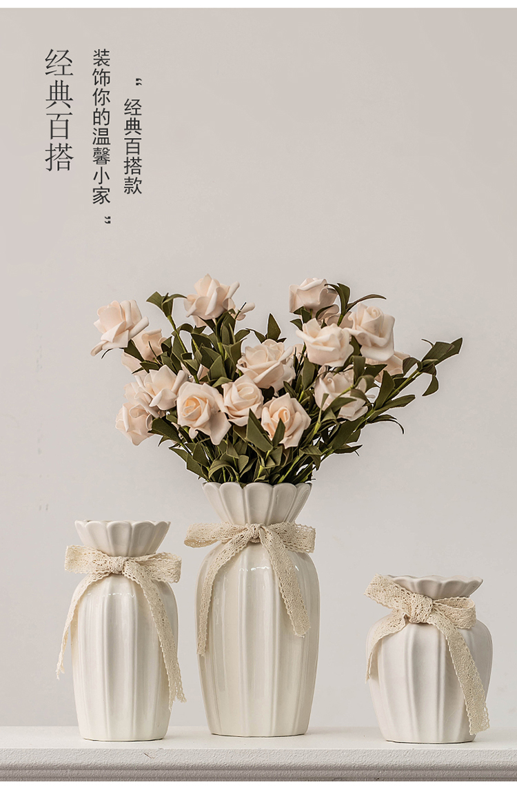 欧式玫瑰插花花瓶白色简约陶瓷花器客厅餐桌干花鲜花水培装饰摆件
