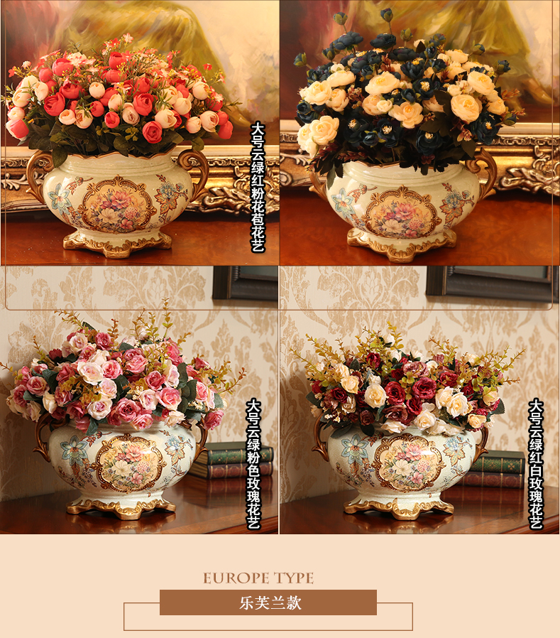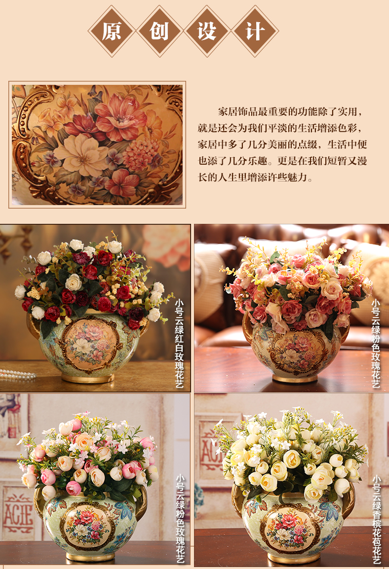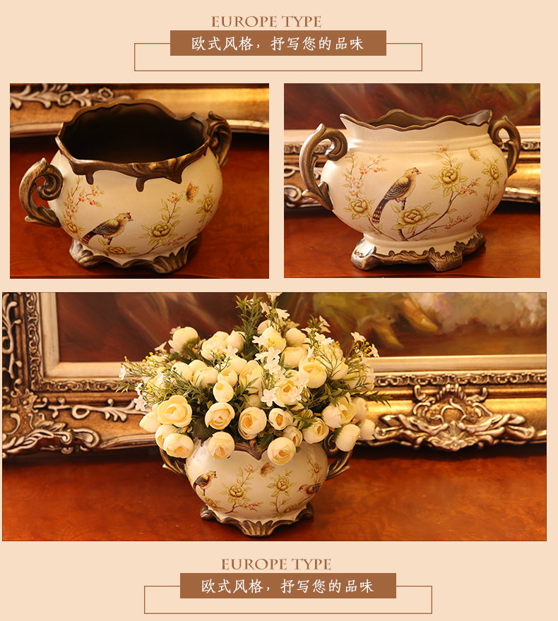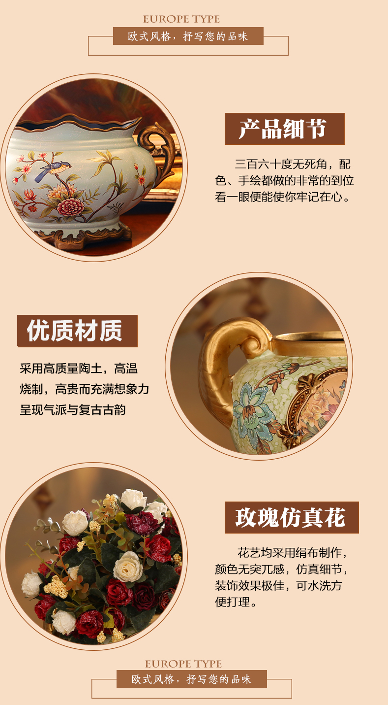 欧式装饰品陶瓷花盆复古花瓶餐桌摆件客厅插花花艺摆设创意工艺品