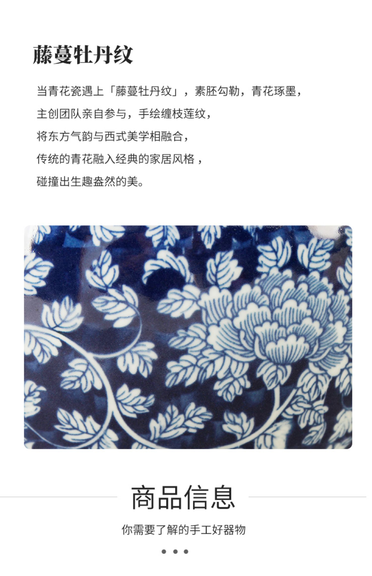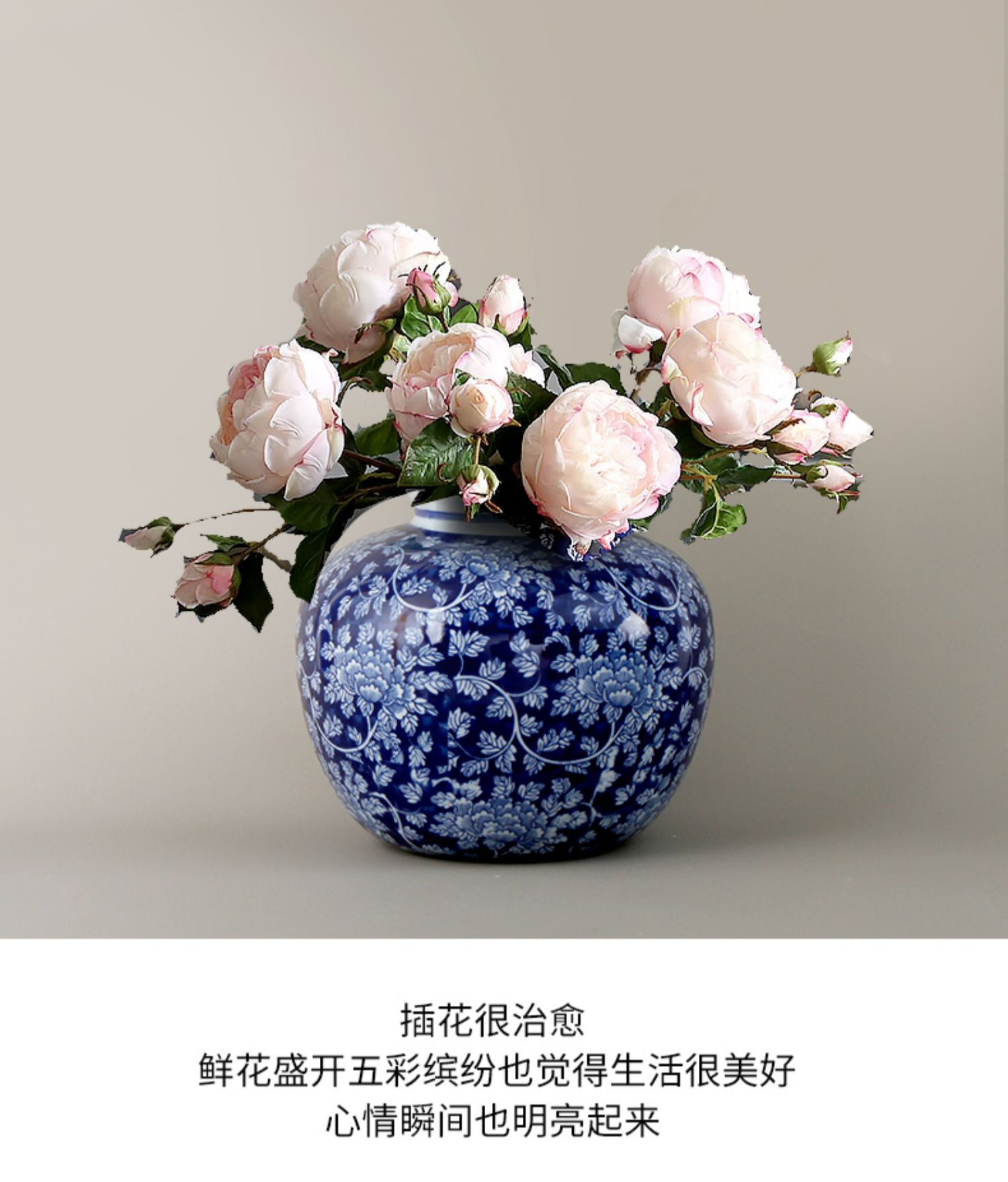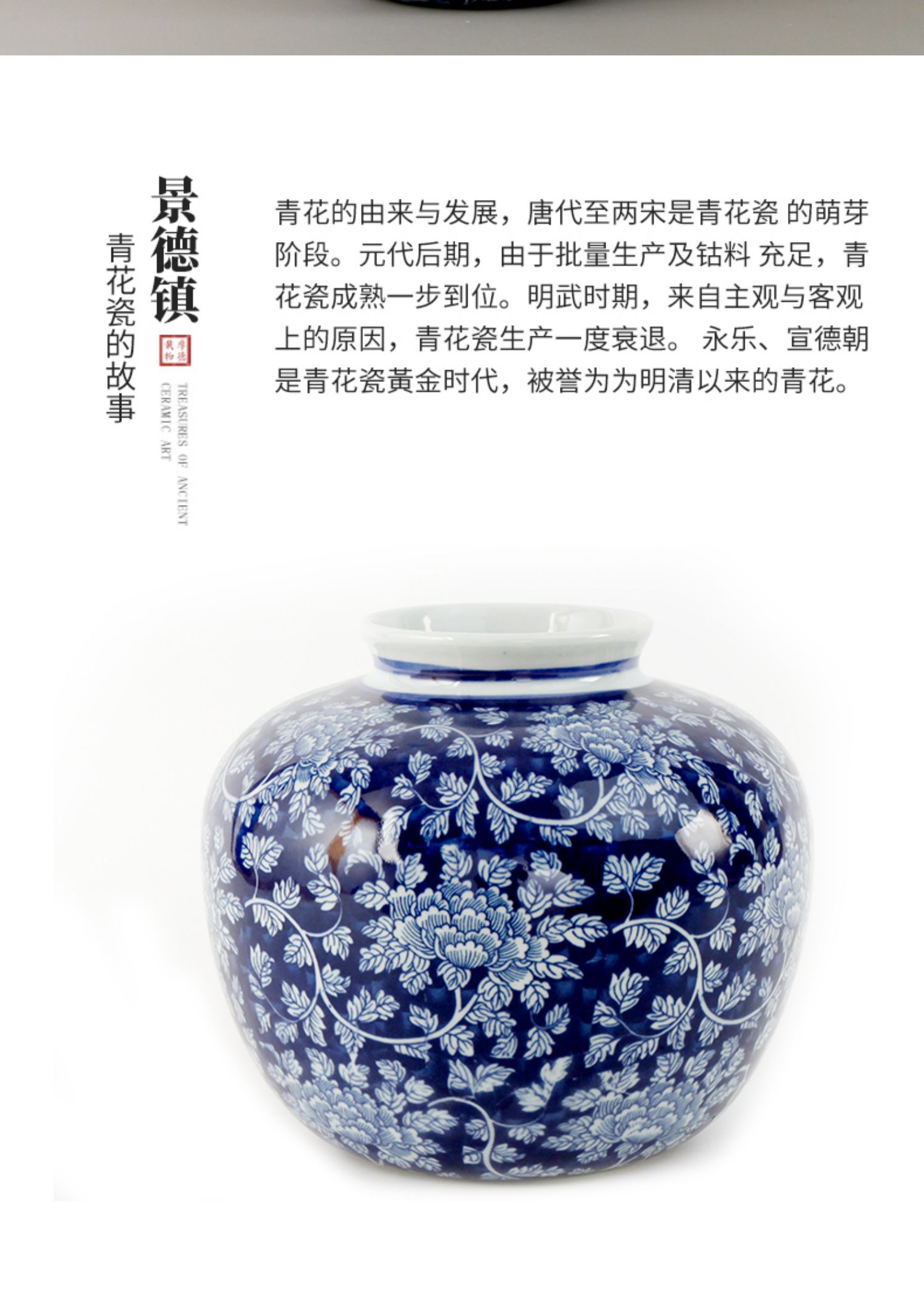 中式陶瓷花瓶摆件装饰品景德镇青花瓷将军罐客厅玄关插花轻奢花器