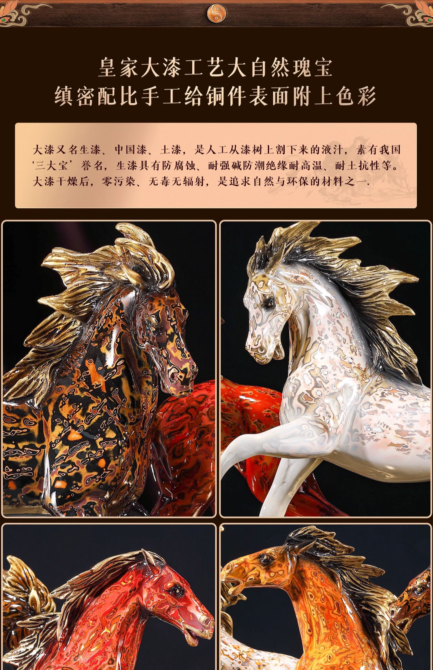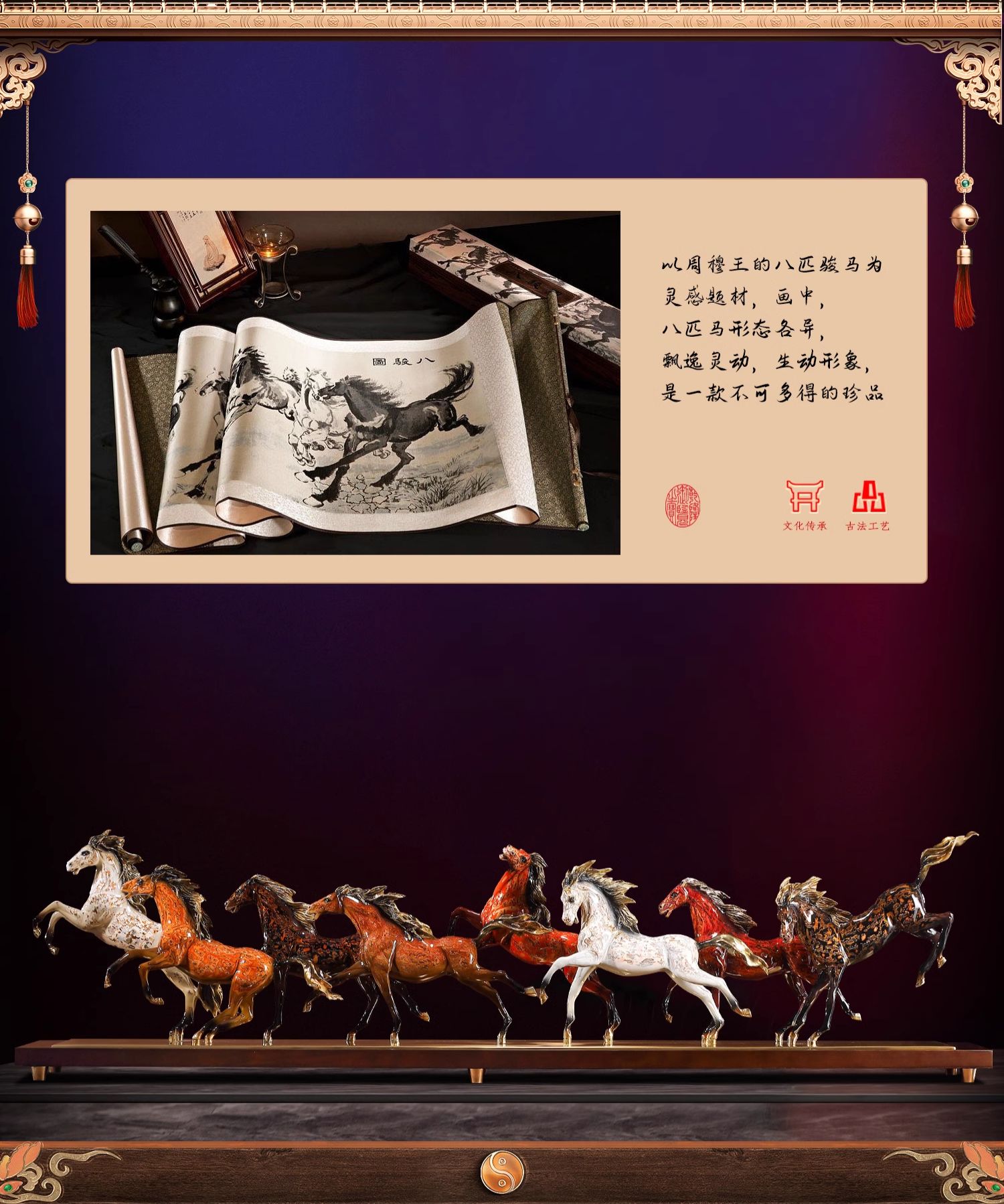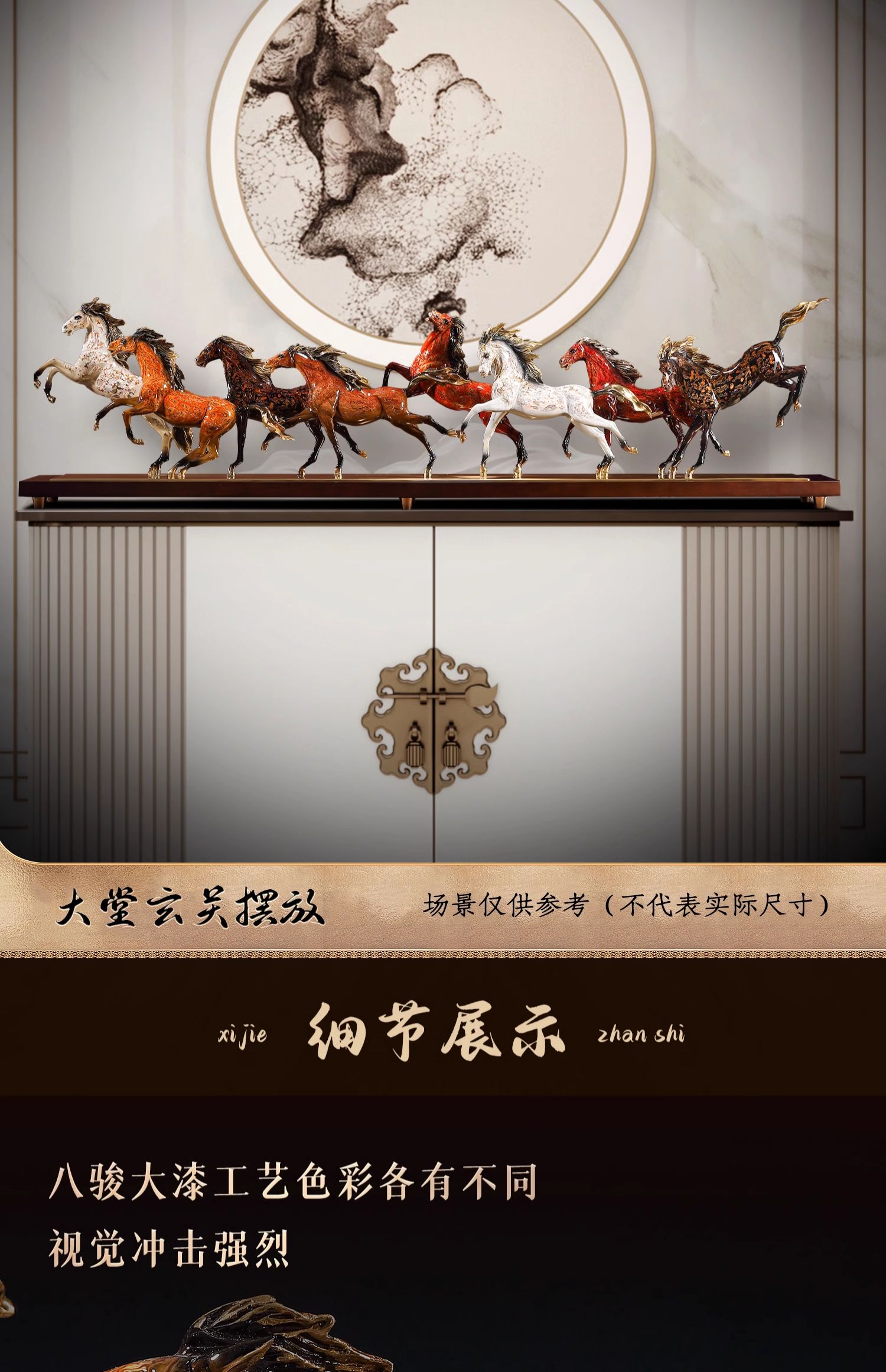 大铜小艺黄铜大漆工艺八骏奔腾马摆件玄关装饰商务办公摆设乔迁礼