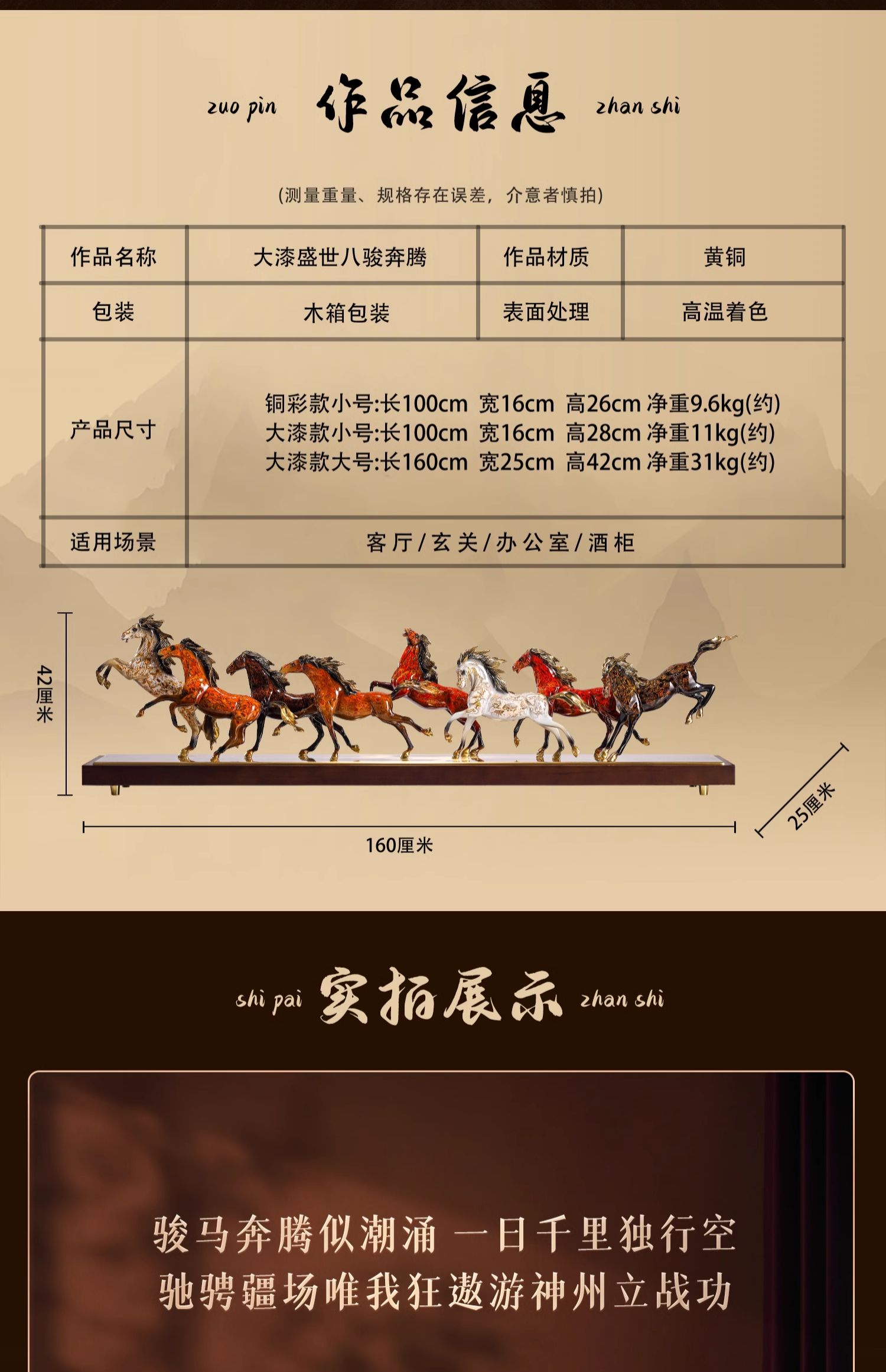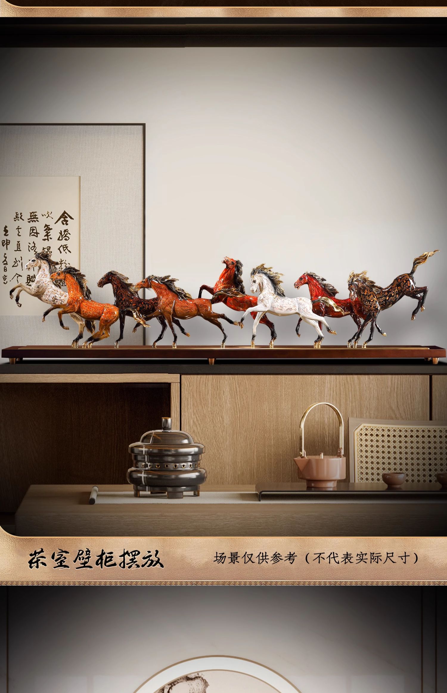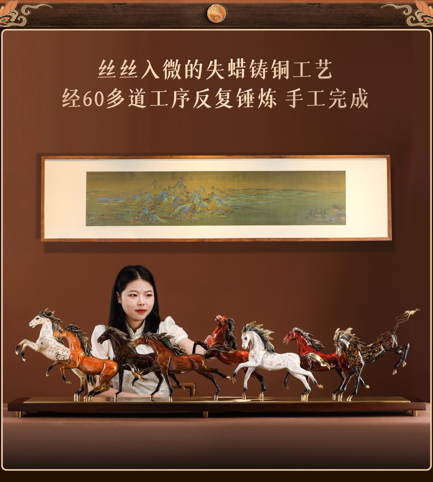 大铜小艺黄铜大漆工艺八骏奔腾马摆件玄关装饰商务办公摆设乔迁礼