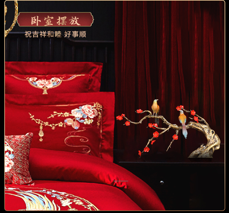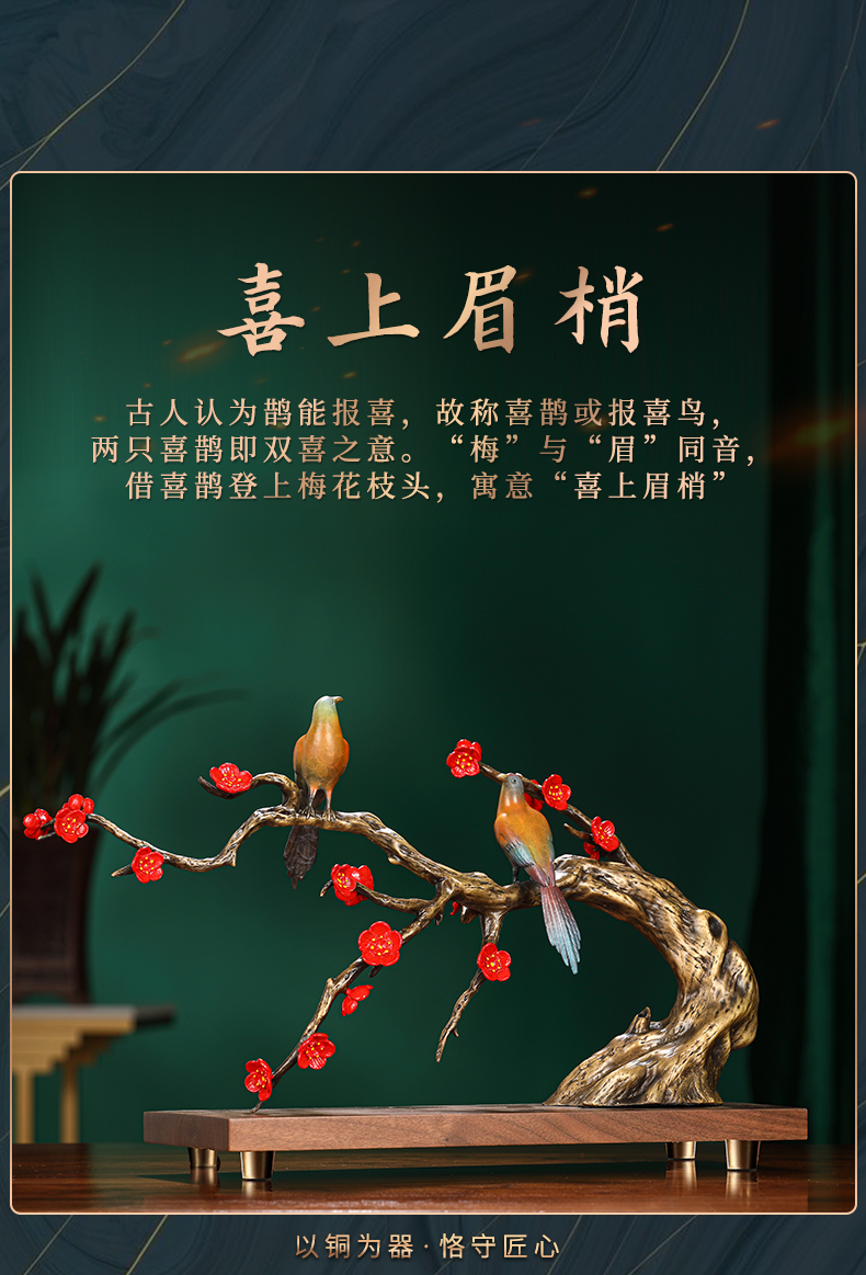 大铜世家喜上眉梢黄铜工艺品摆件中式婚房客厅装饰结婚礼物送新人