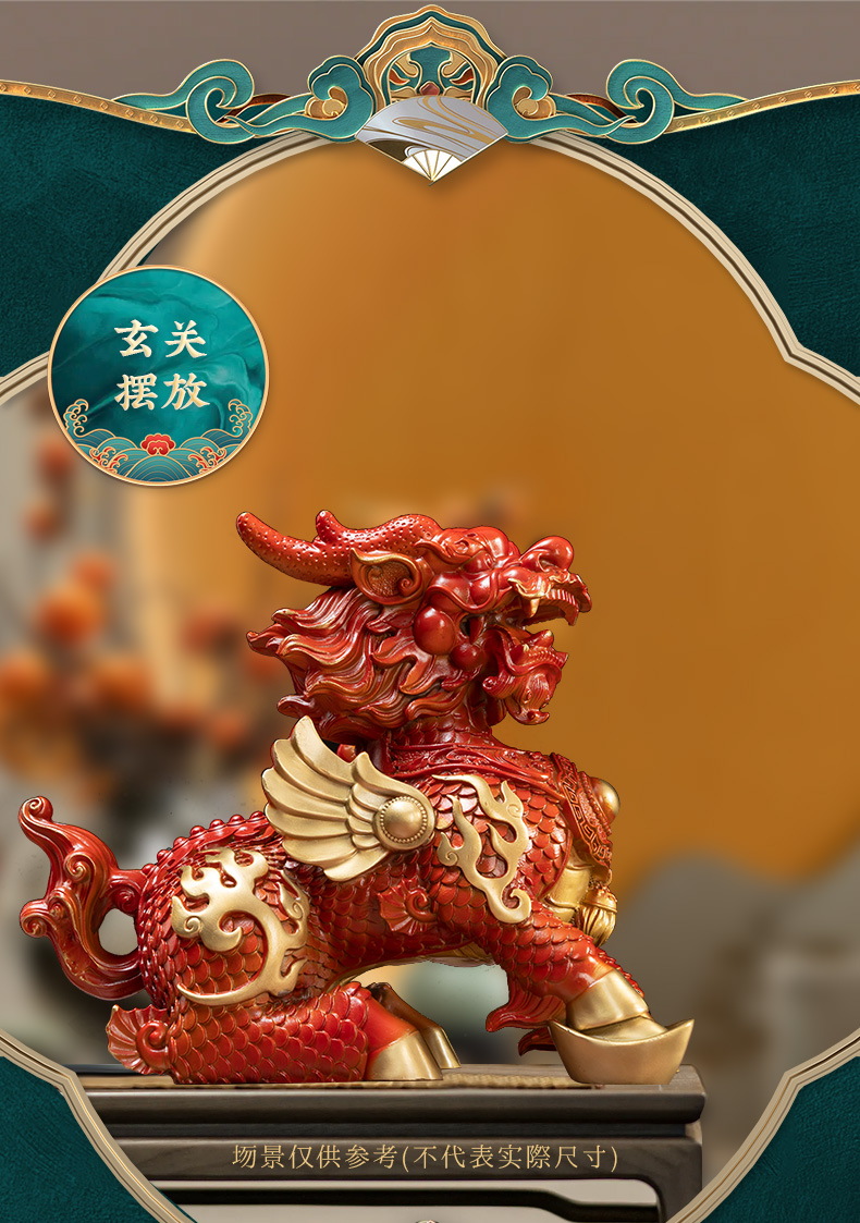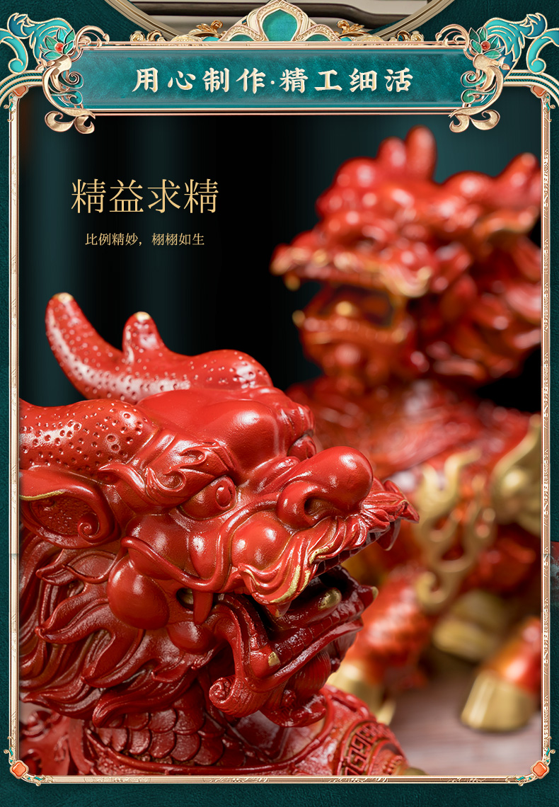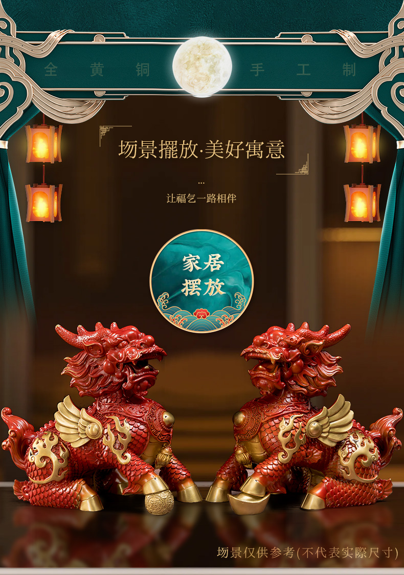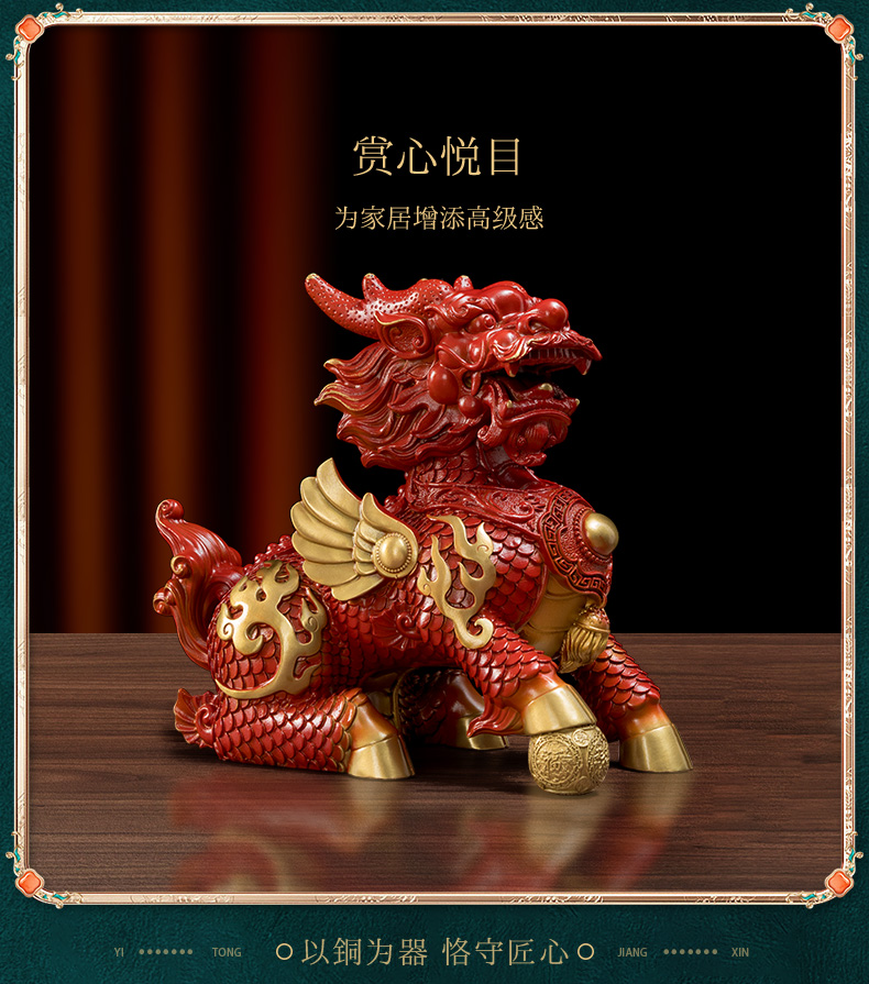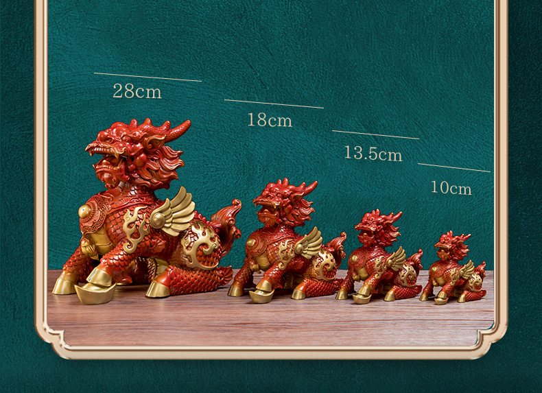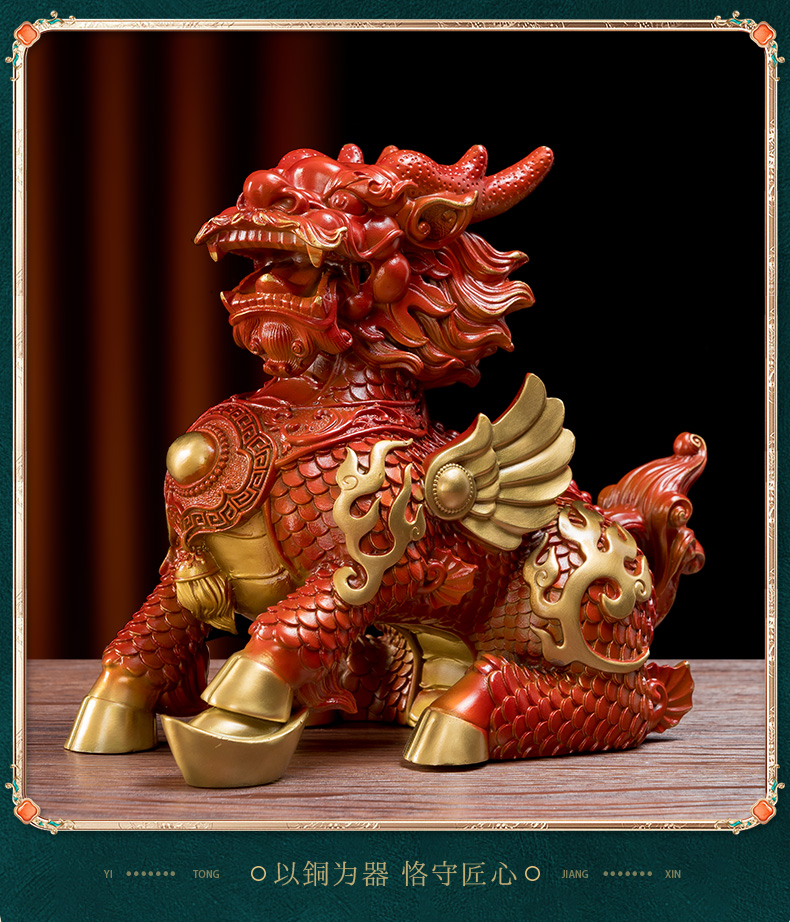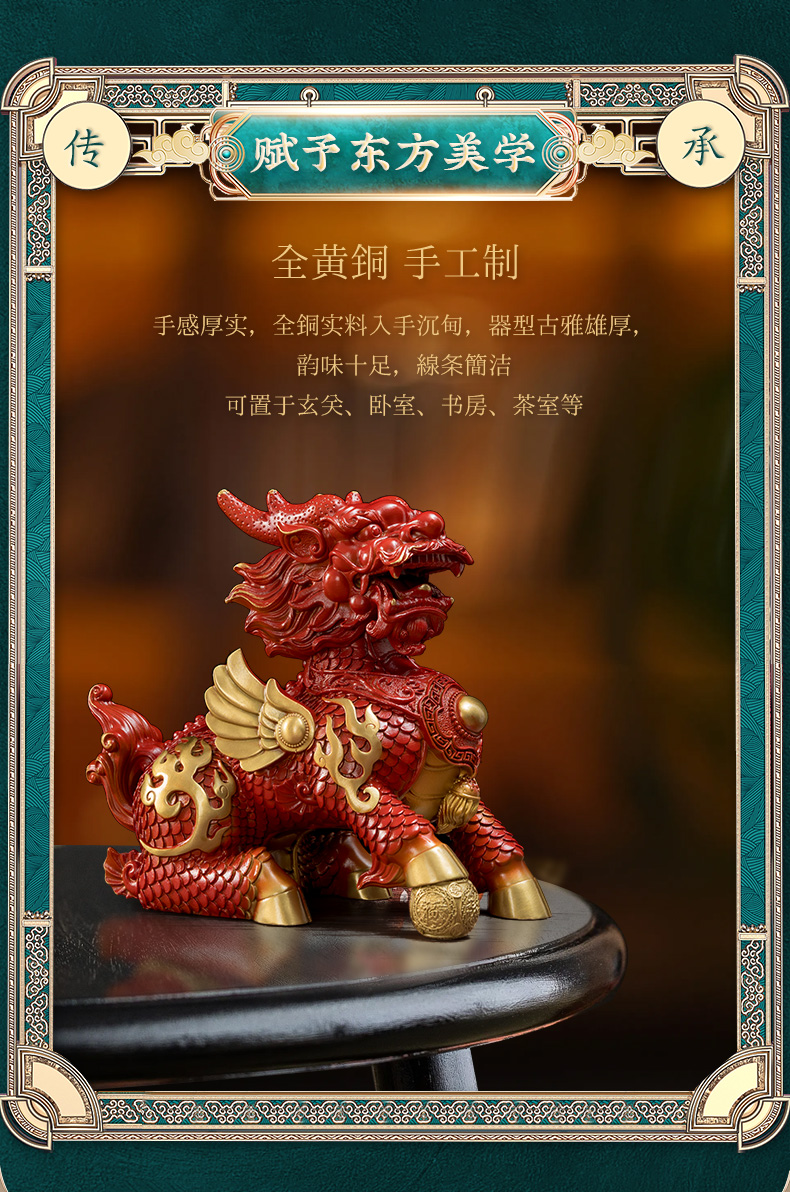 全铜火麒麟摆件公母一对红色公母纯铜黄铜家居办公室客厅玄关装饰