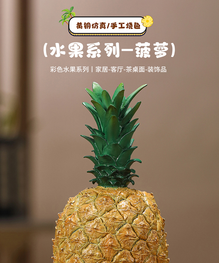 黄铜彩绘仿真水果菠萝凤梨旺来摆件创意家居客厅茶桌面装饰摆设品