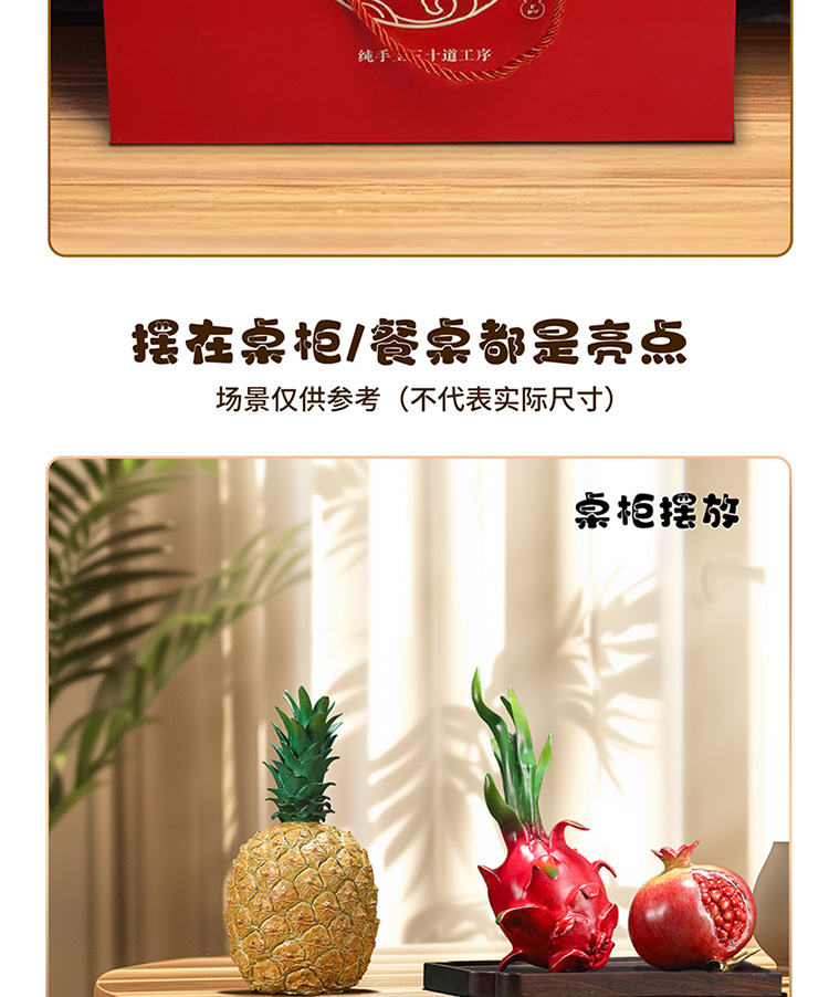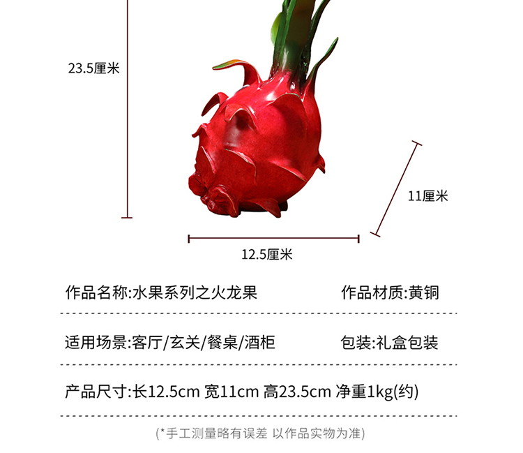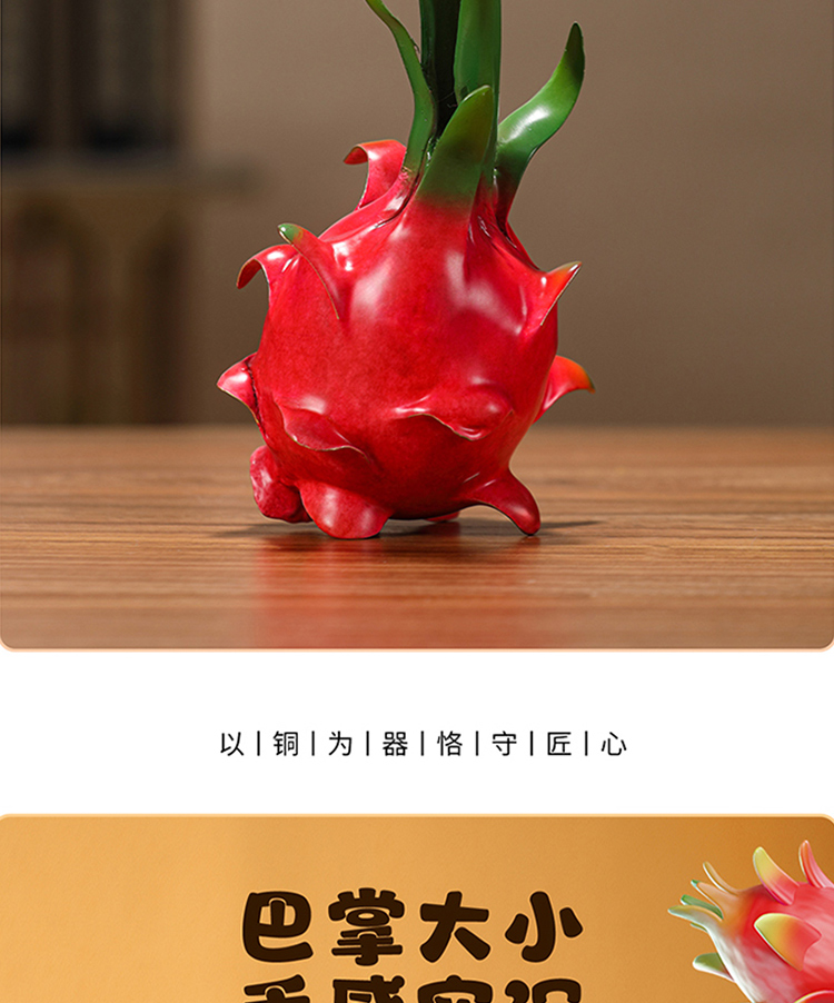 黄铜彩色水果系列仿真火龙果摆件家居客厅茶桌面装饰品暖居摆设品