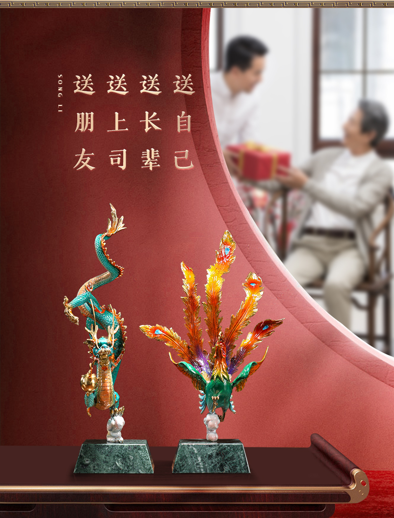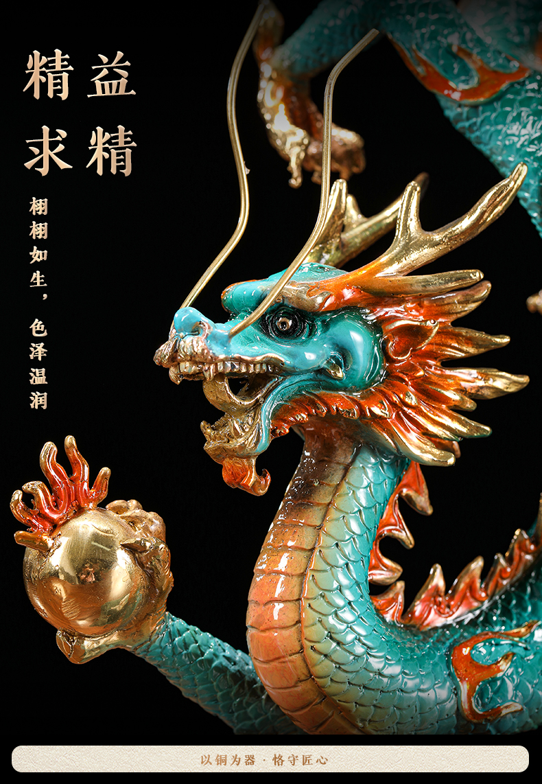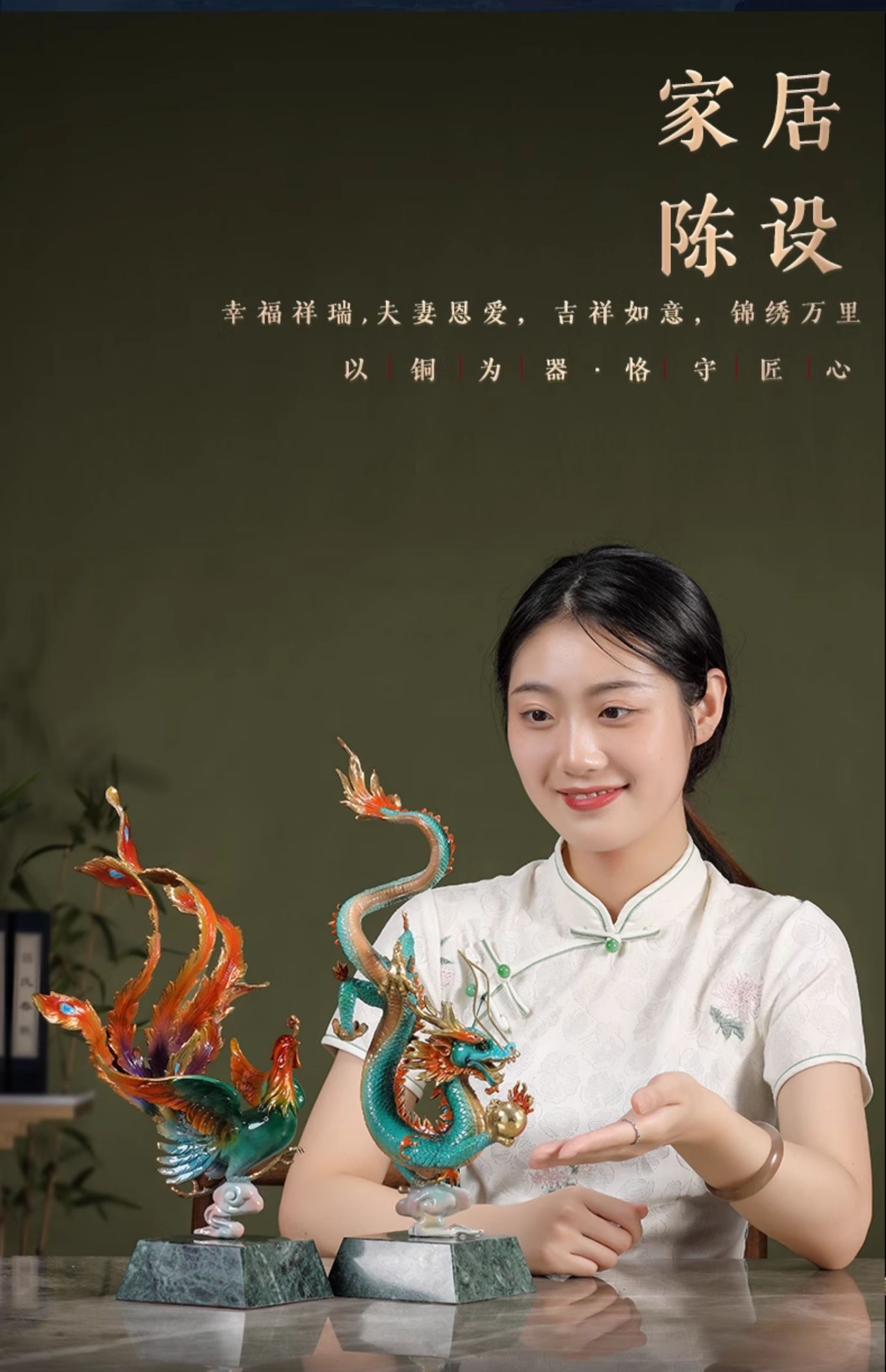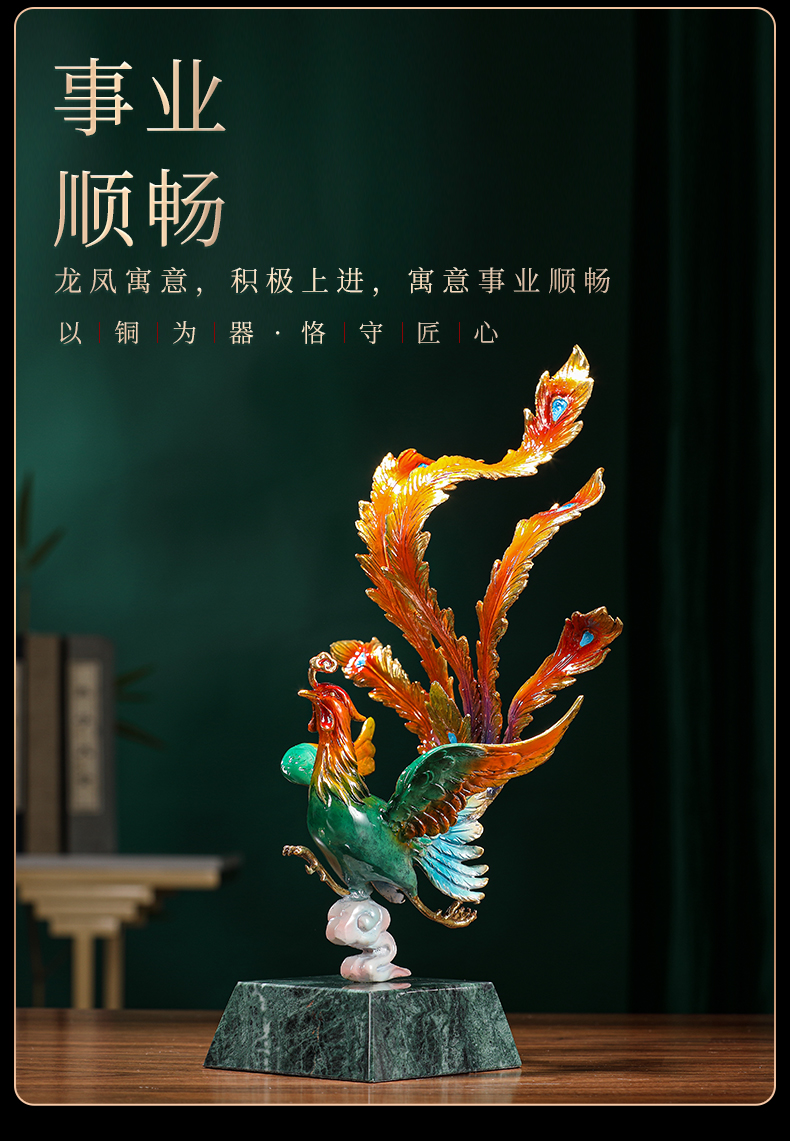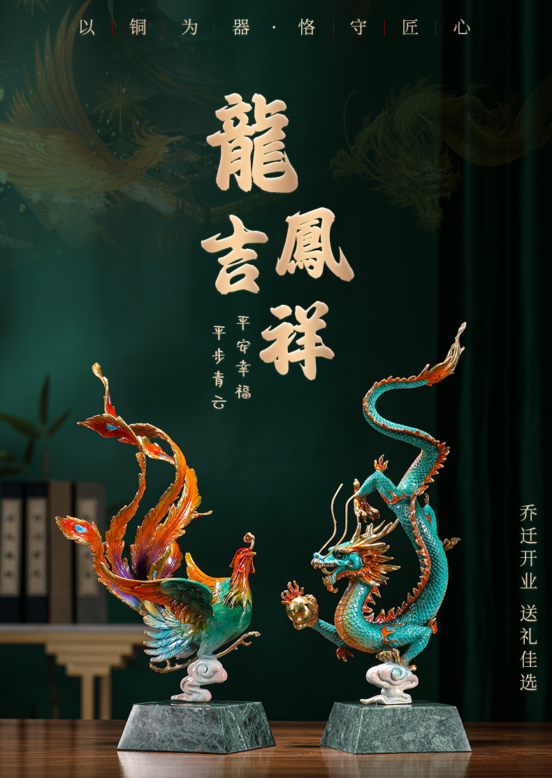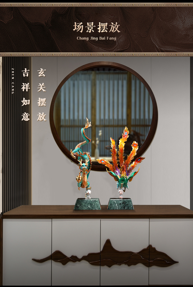 大铜世家黄铜龙凤摆件青龙凤凰装饰品客厅酒柜电视柜开业乔迁礼品