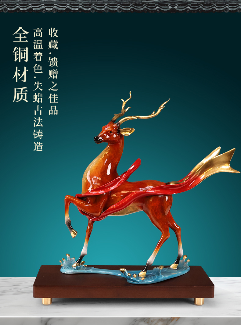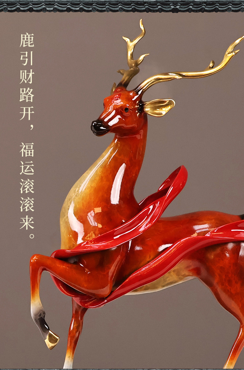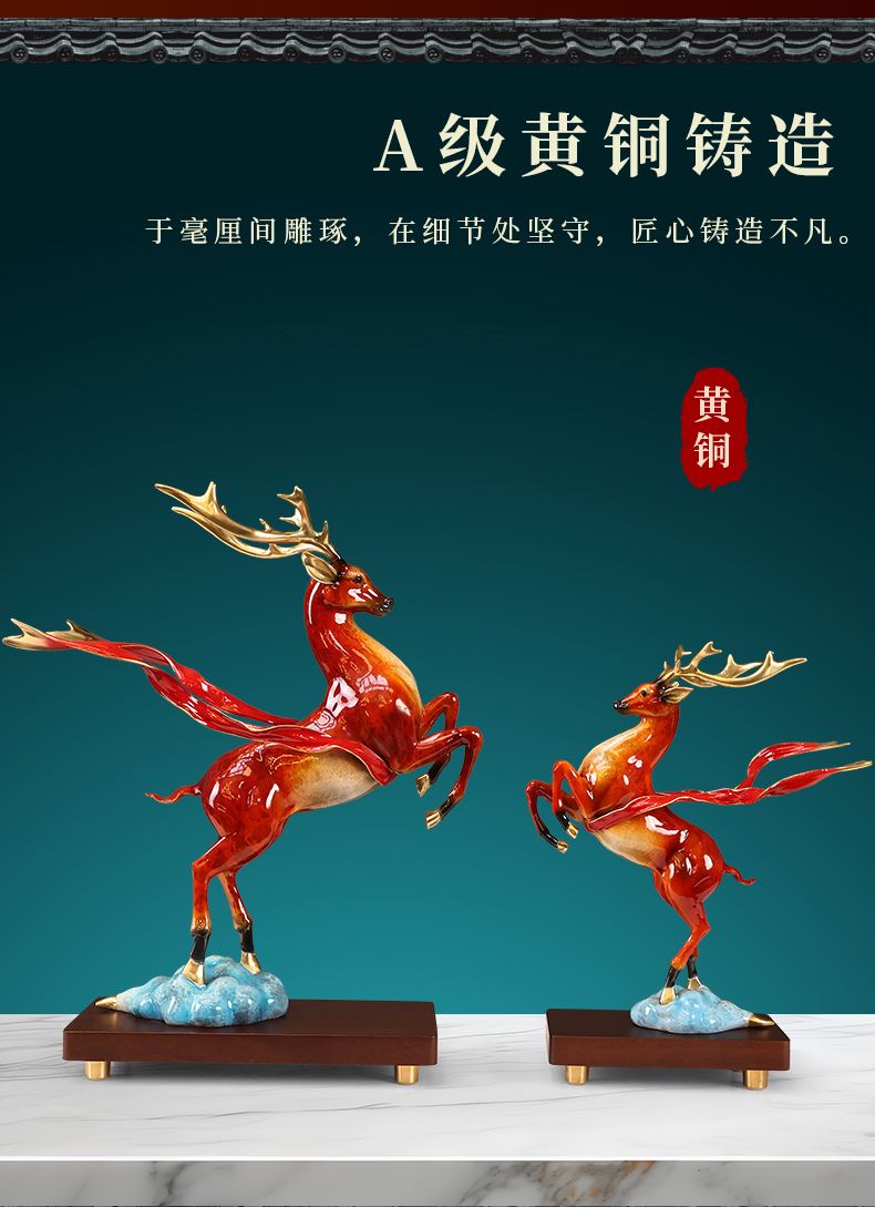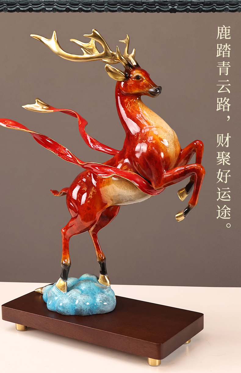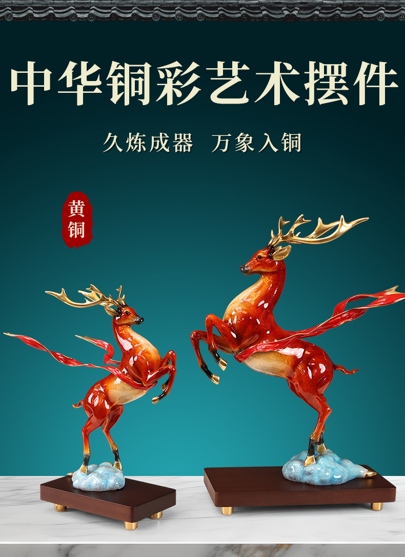 招财缘梅花鹿铜摆件全铜彩绘鹿家居客厅玄关办公室装饰品乔迁礼品