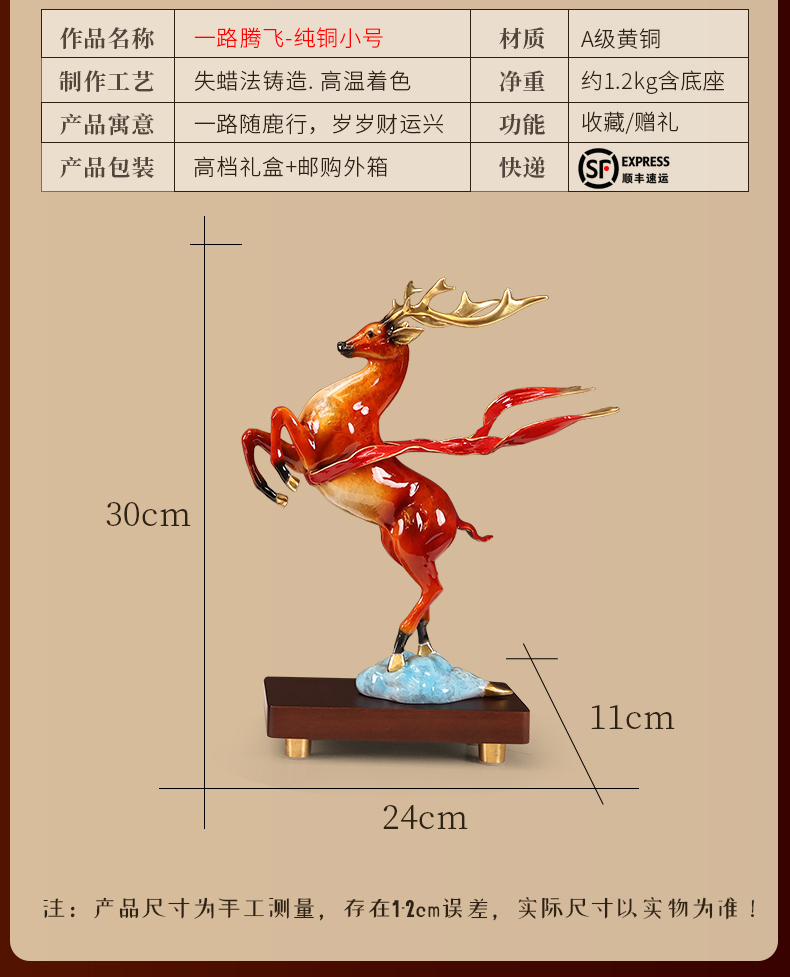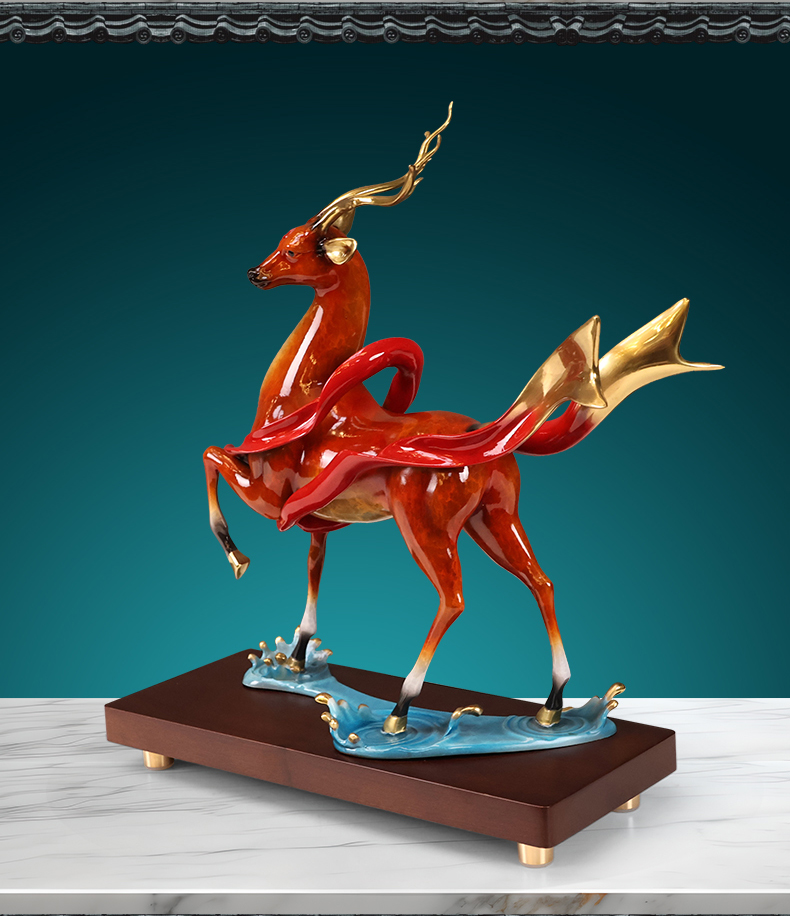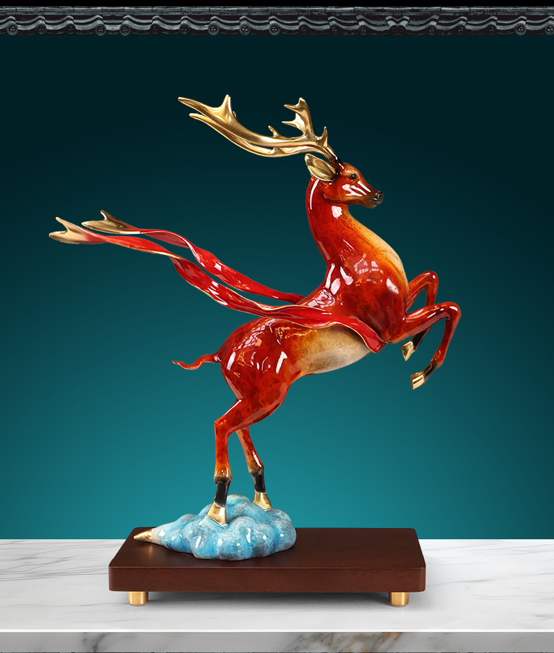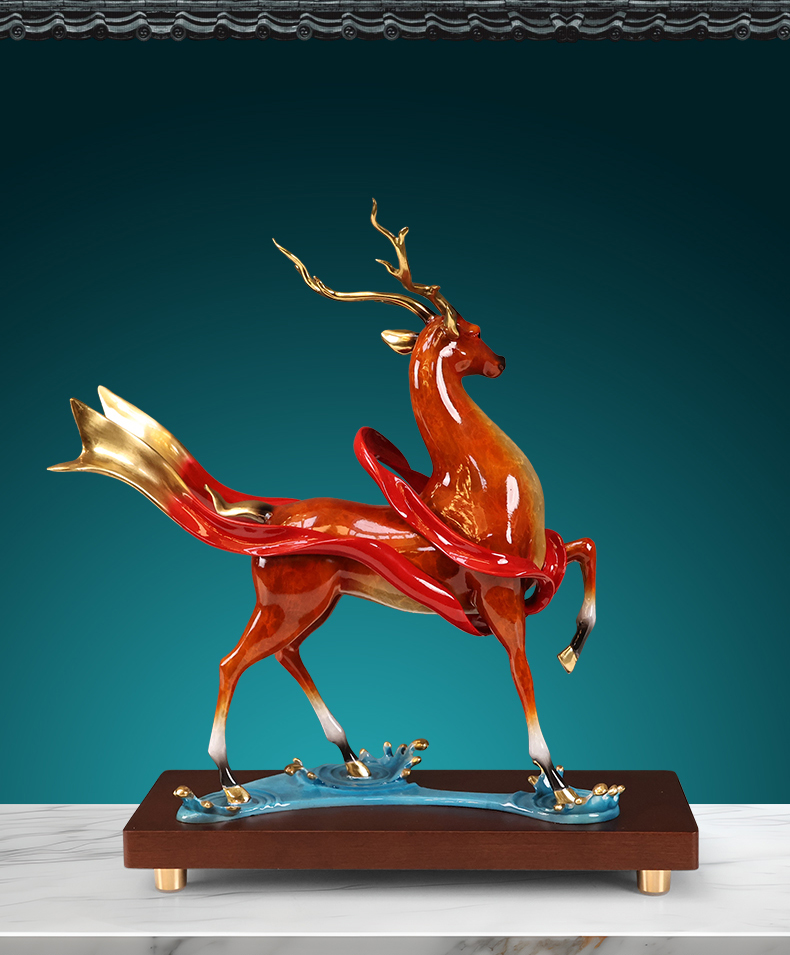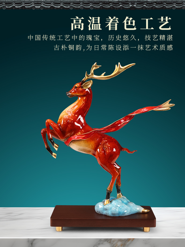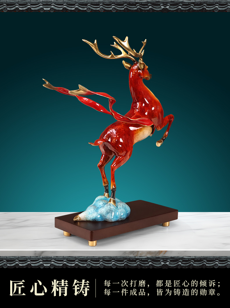 招财缘梅花鹿铜摆件全铜彩绘鹿家居客厅玄关办公室装饰品乔迁礼品