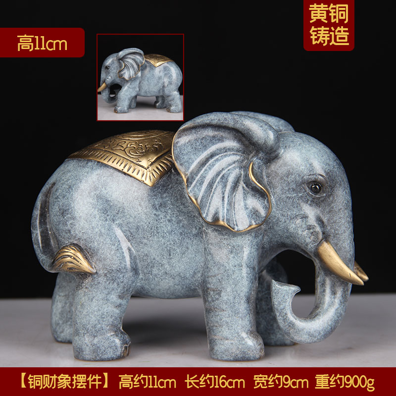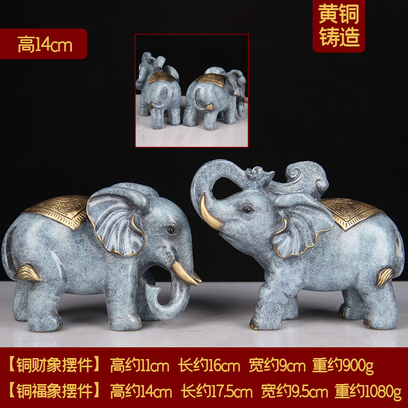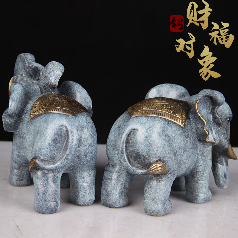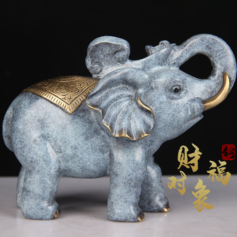 铜大小摆件 彩绘蓝白色铜财福象摆件 铜吸水象