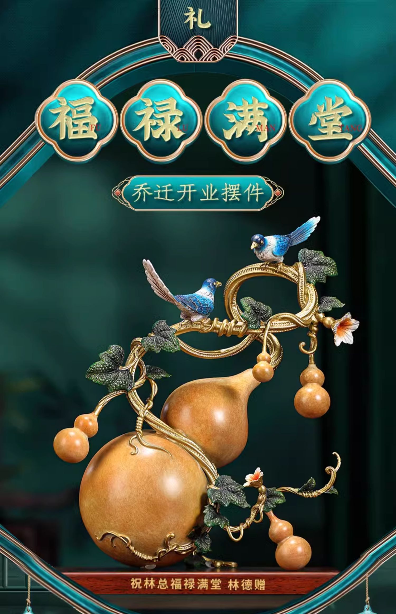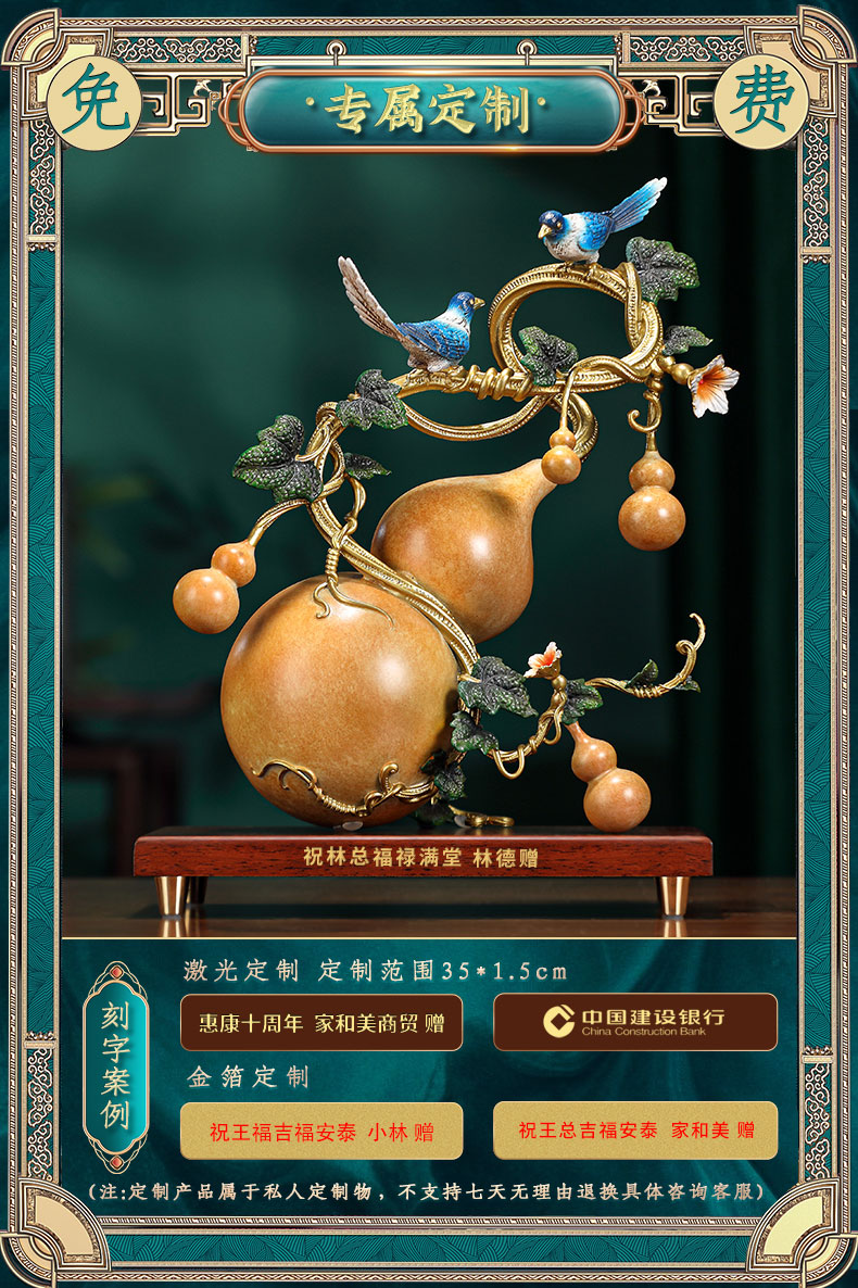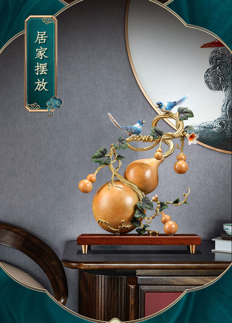 福禄满堂黄铜葫芦摆件中式家居客厅办公室收藏装饰品乔迁新居礼品