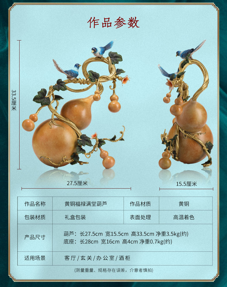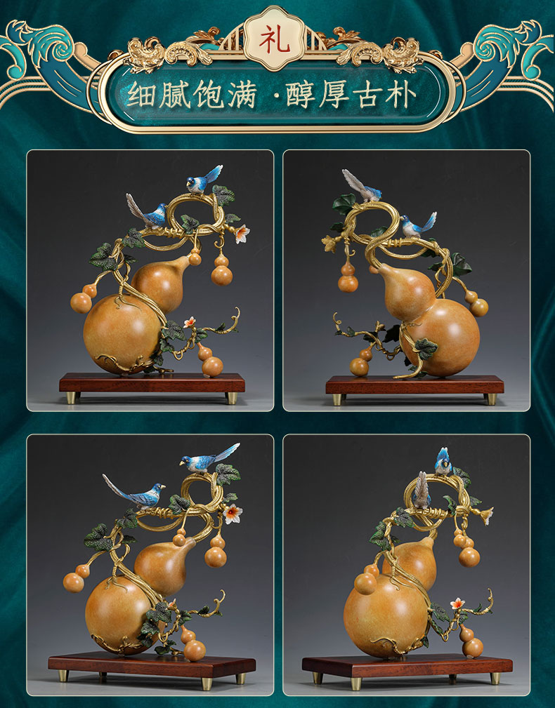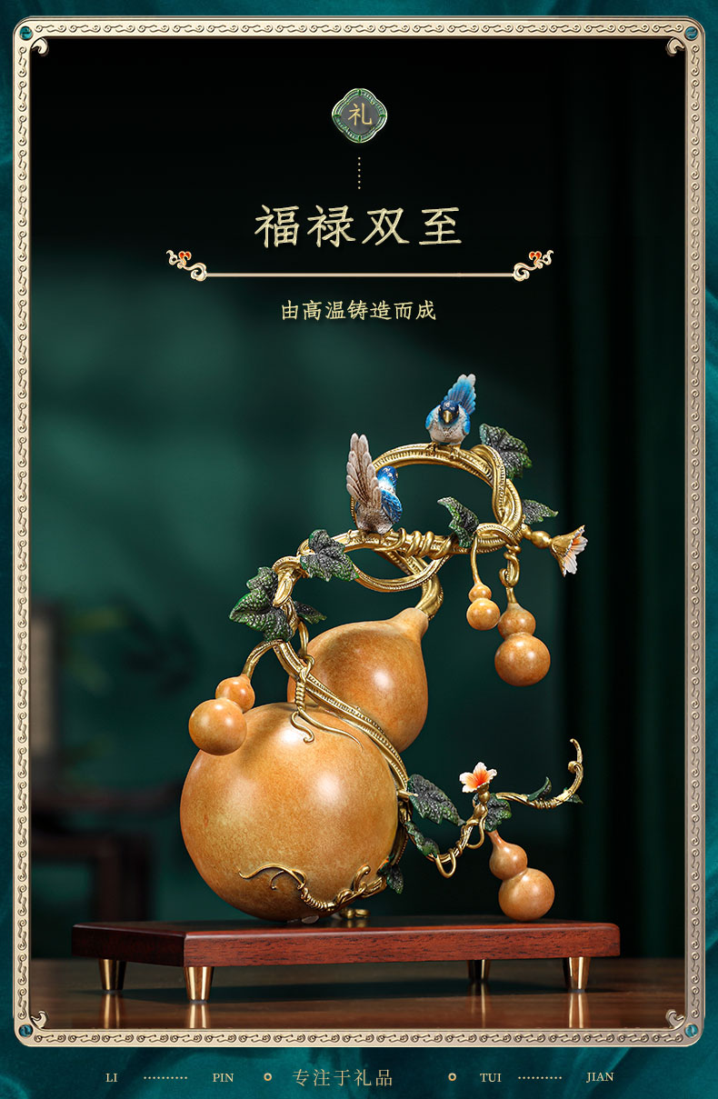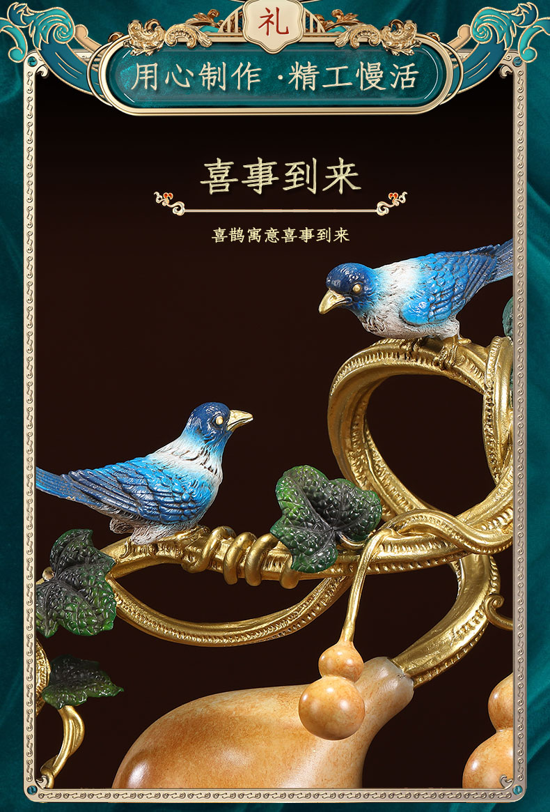福禄满堂黄铜葫芦摆件中式家居客厅办公室收藏装饰品乔迁新居礼品
