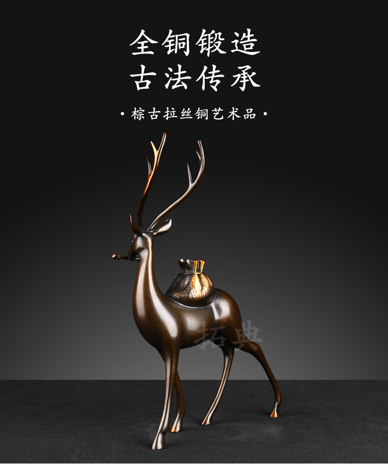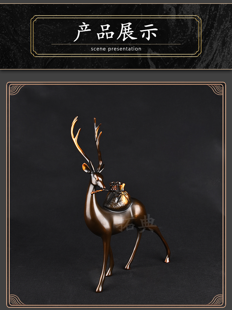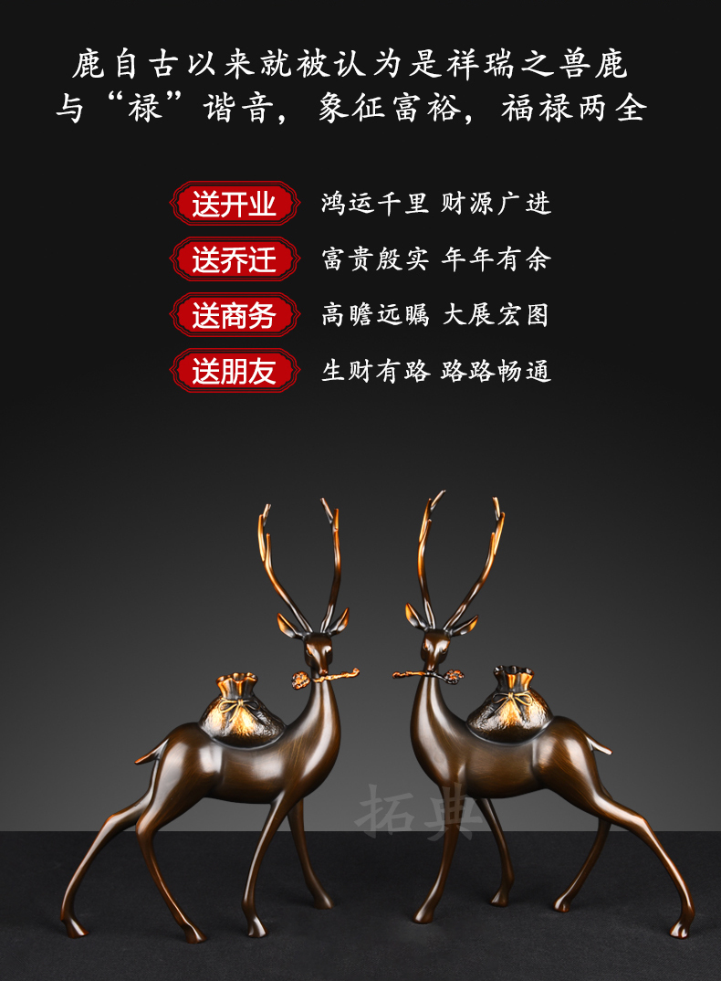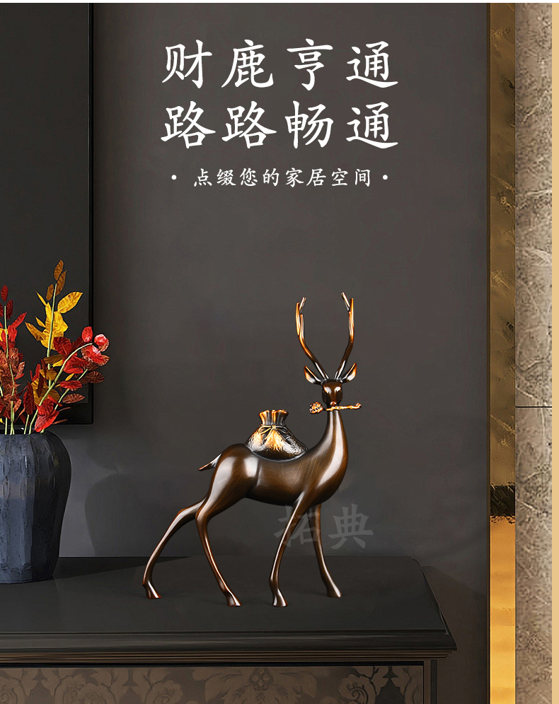 财鹿亨通招财铜鹿摆件电视柜客厅书房玄关装饰办公室礼物桌面摆设