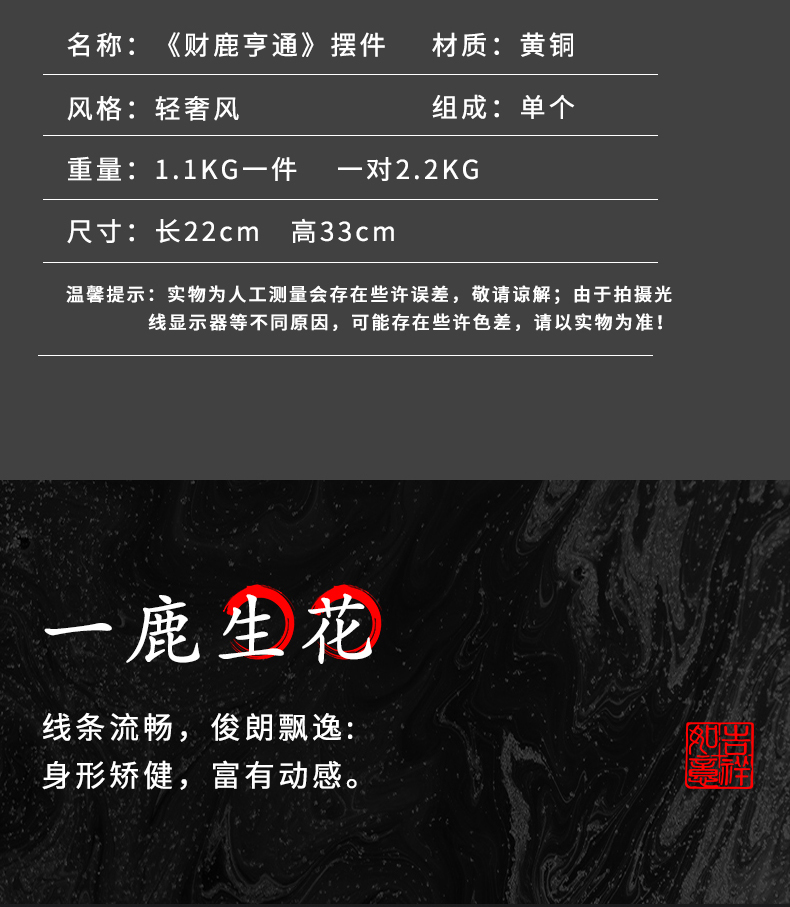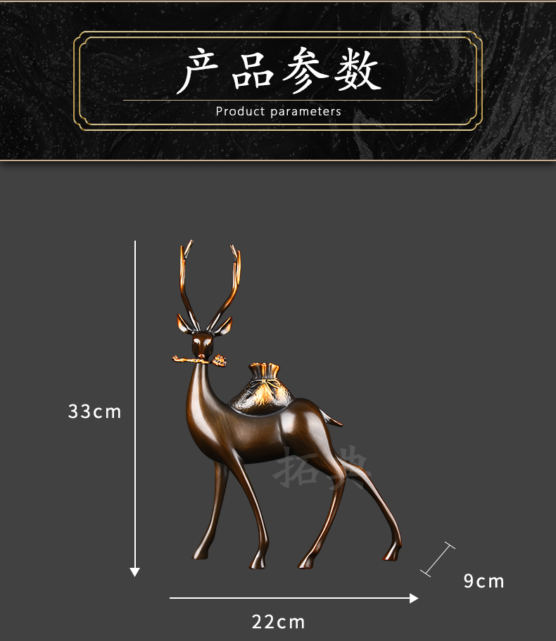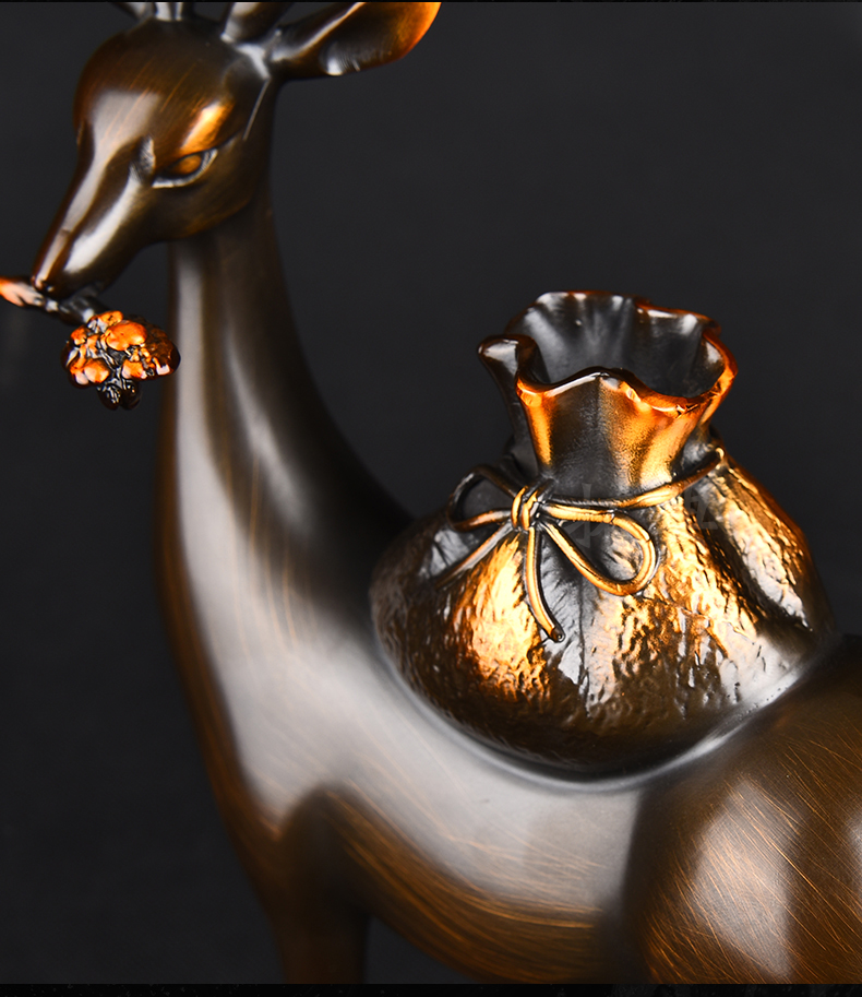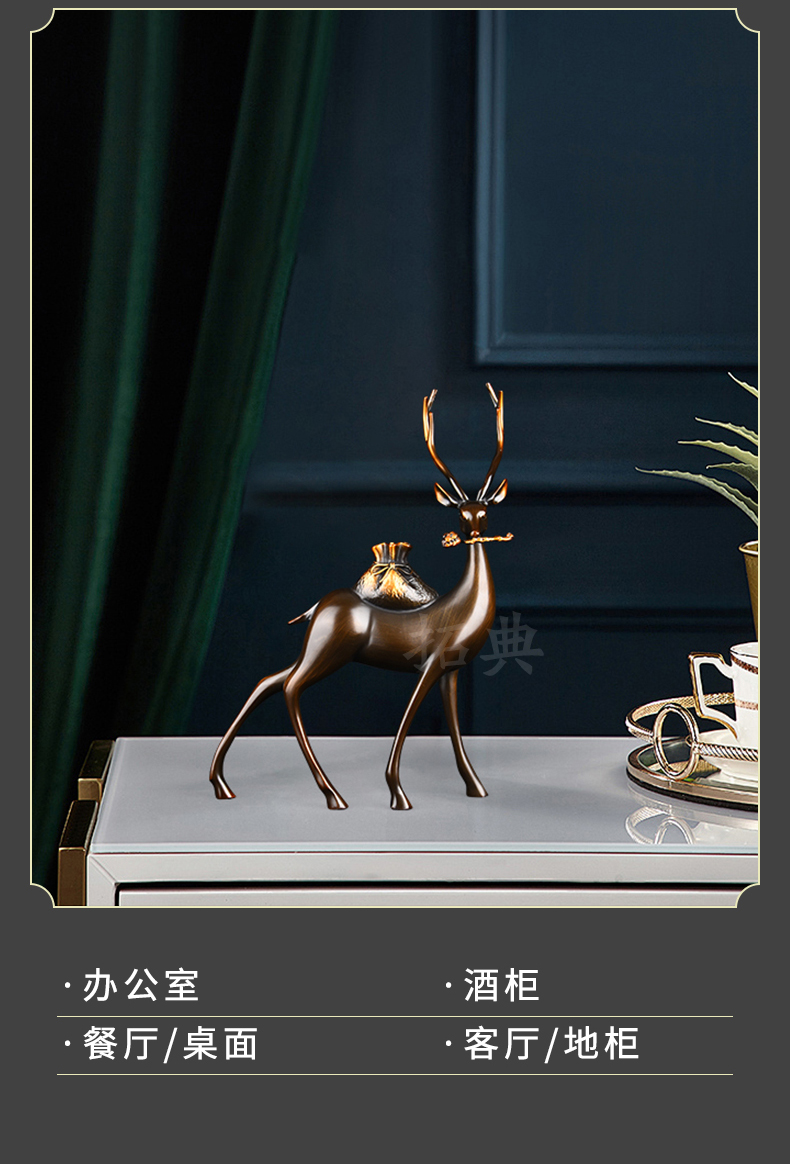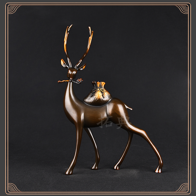 财鹿亨通招财铜鹿摆件电视柜客厅书房玄关装饰办公室礼物桌面摆设