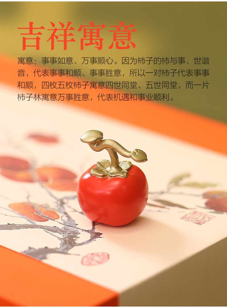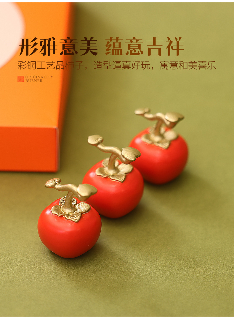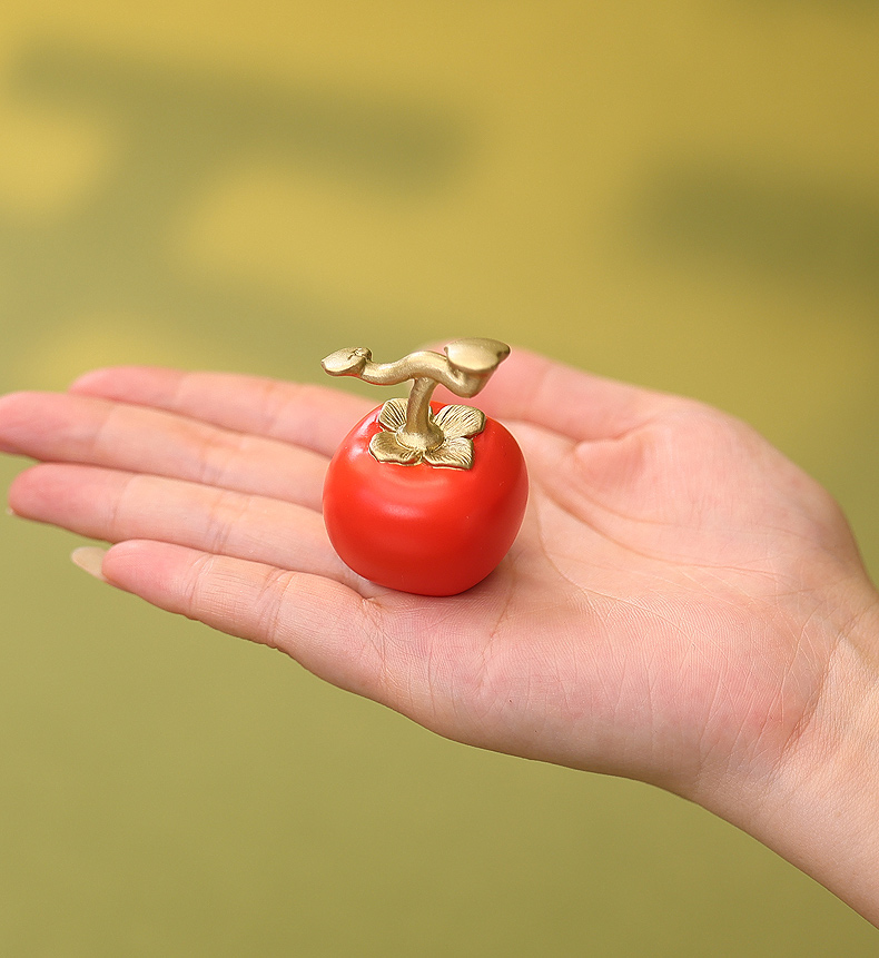 铜柿子小摆件家居装饰乔迁搬家开业送礼工艺品彩铜失蜡法创意礼品