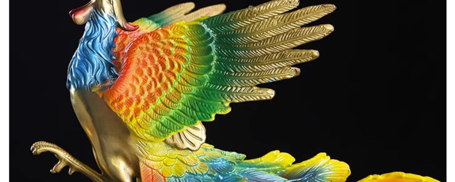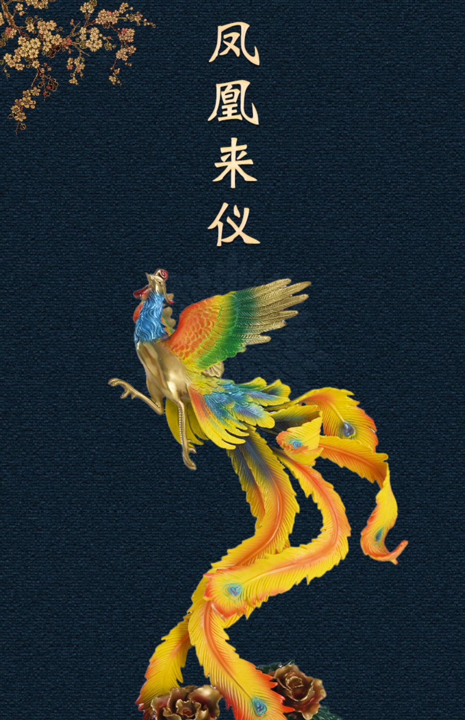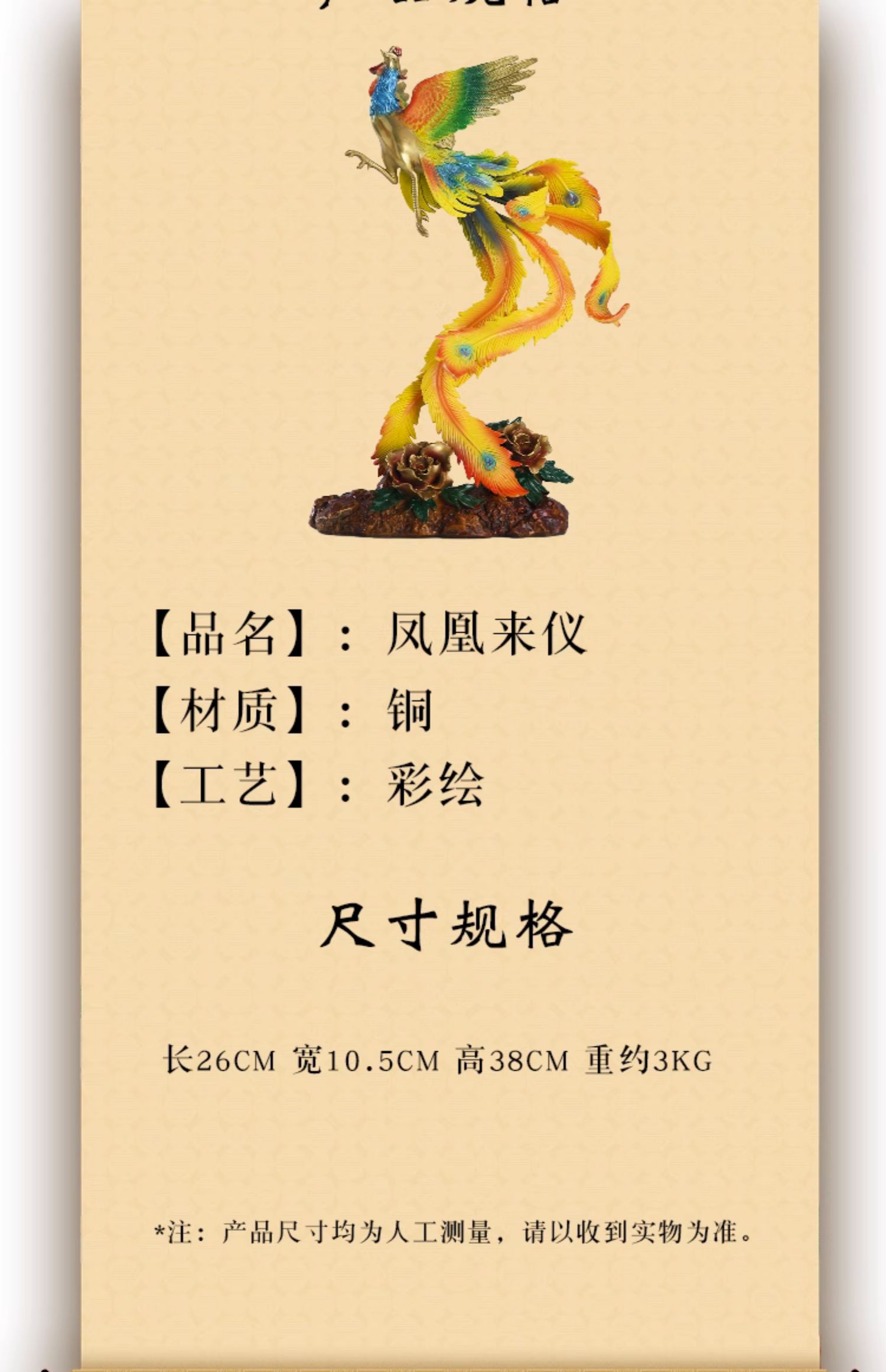 《凤凰来仪》黄铜彩绘凤凰摆件居家装饰品前台酒柜开业礼品工艺品