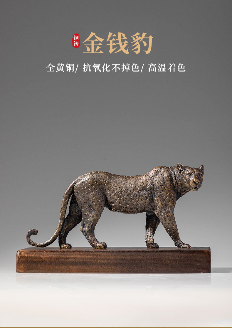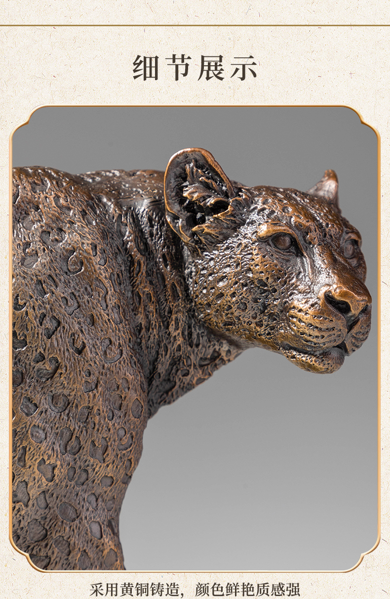 《金钱豹》全黄铜豹子摆件工艺品铜器办公室书房客厅过道桌面装饰