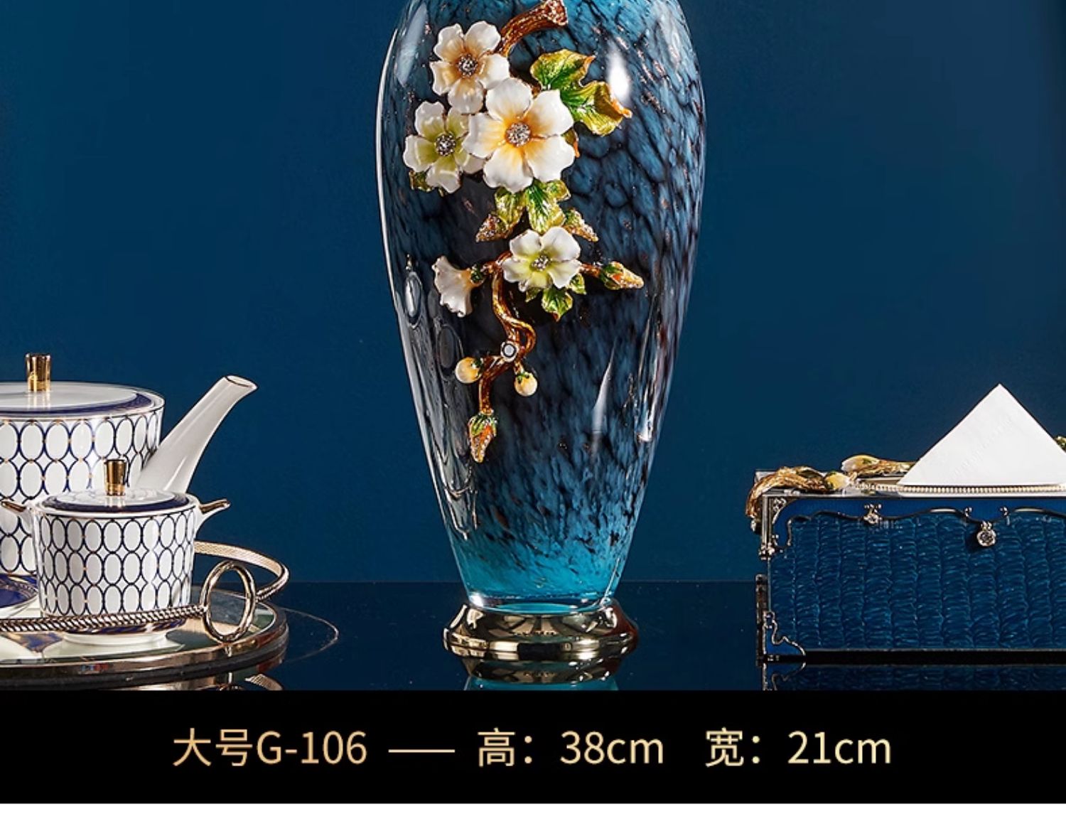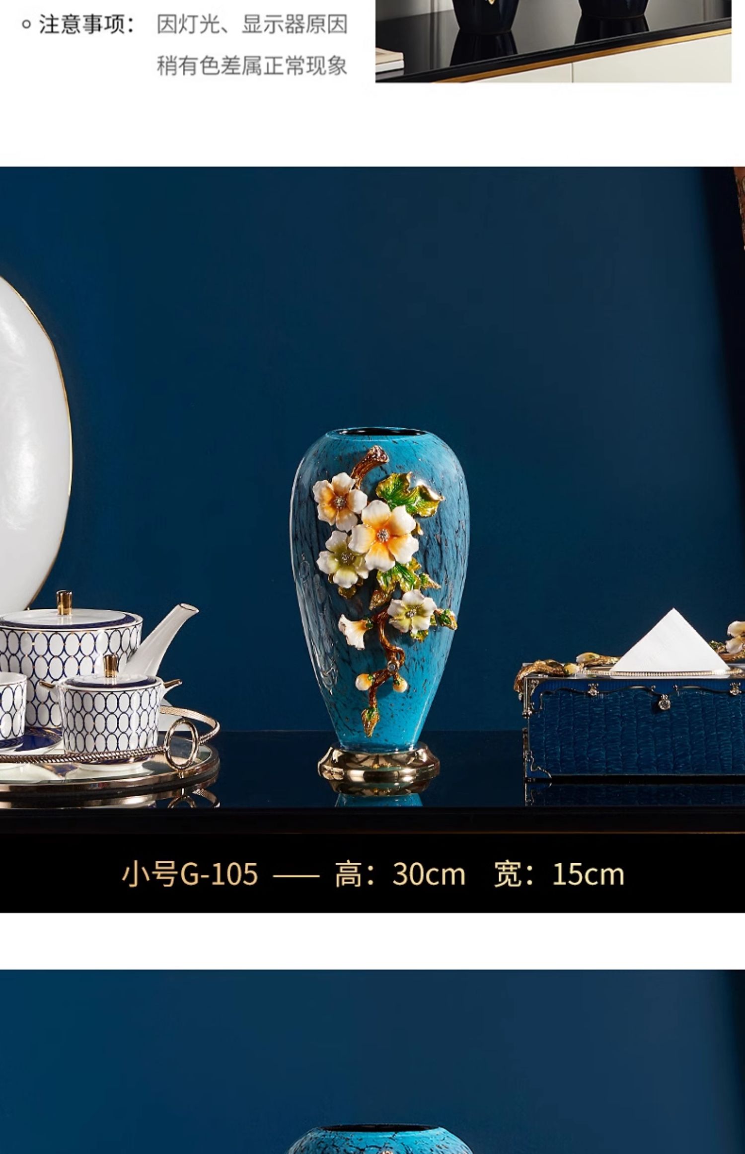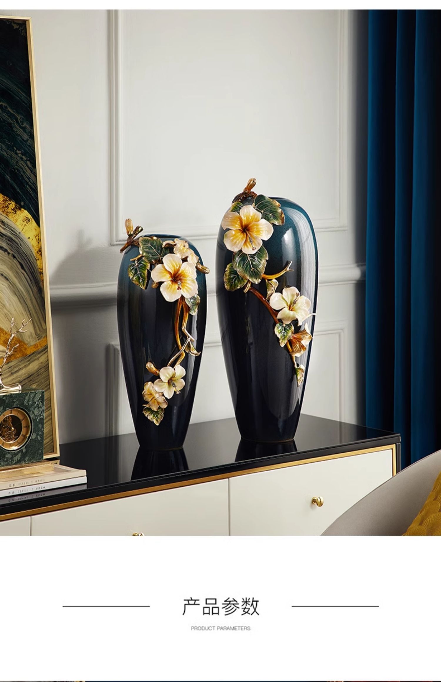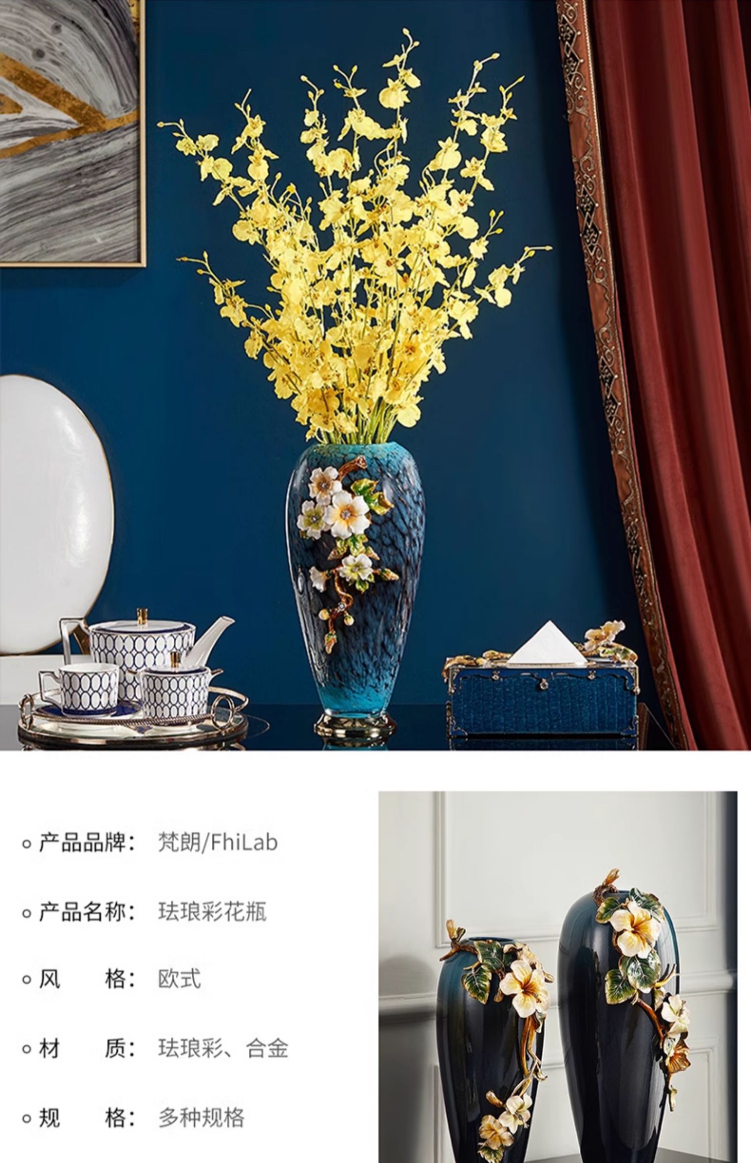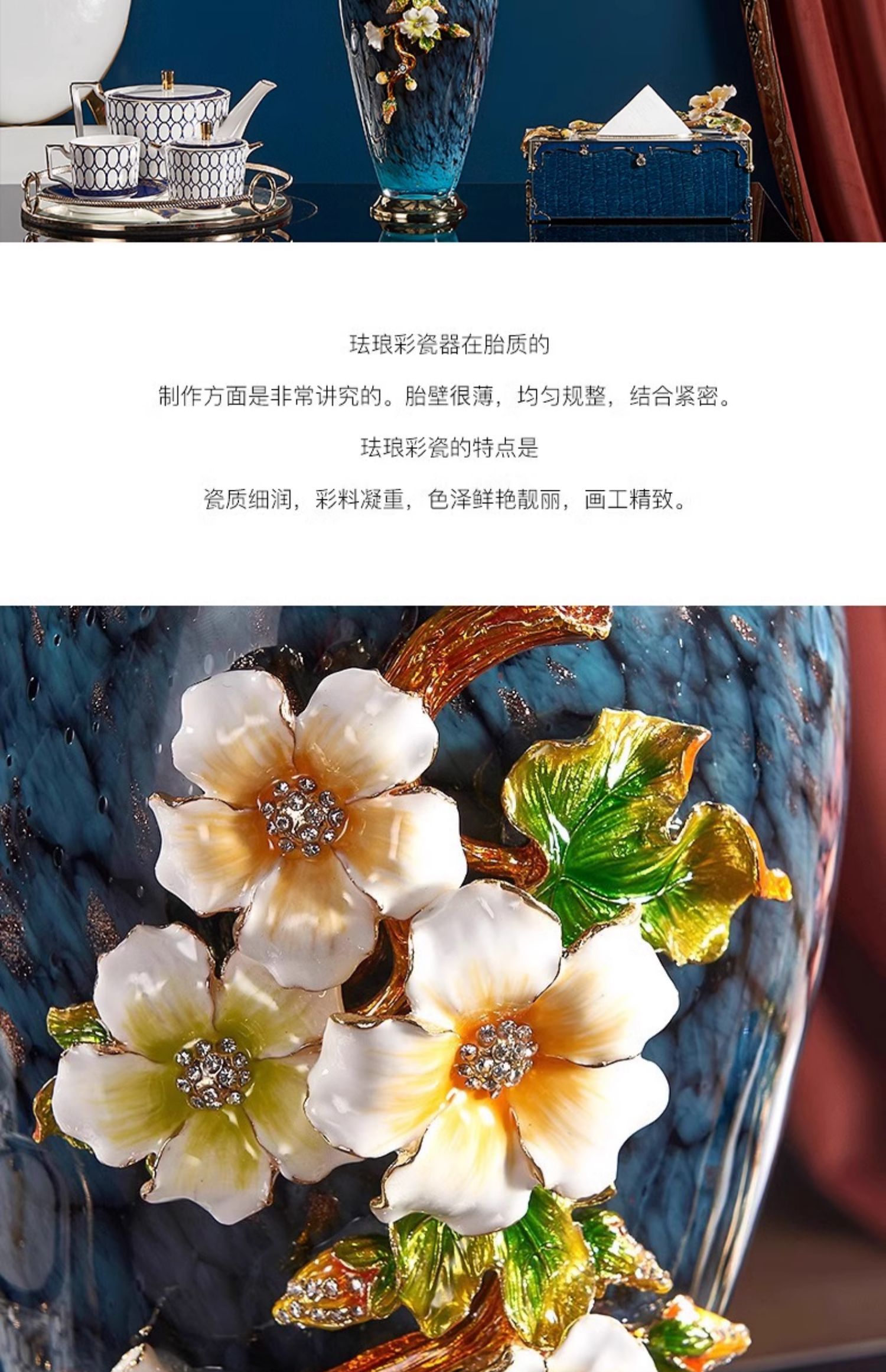 轻奢高端珐琅彩玻璃花瓶摆件客厅玄关欧式家居插花美式家居装饰品